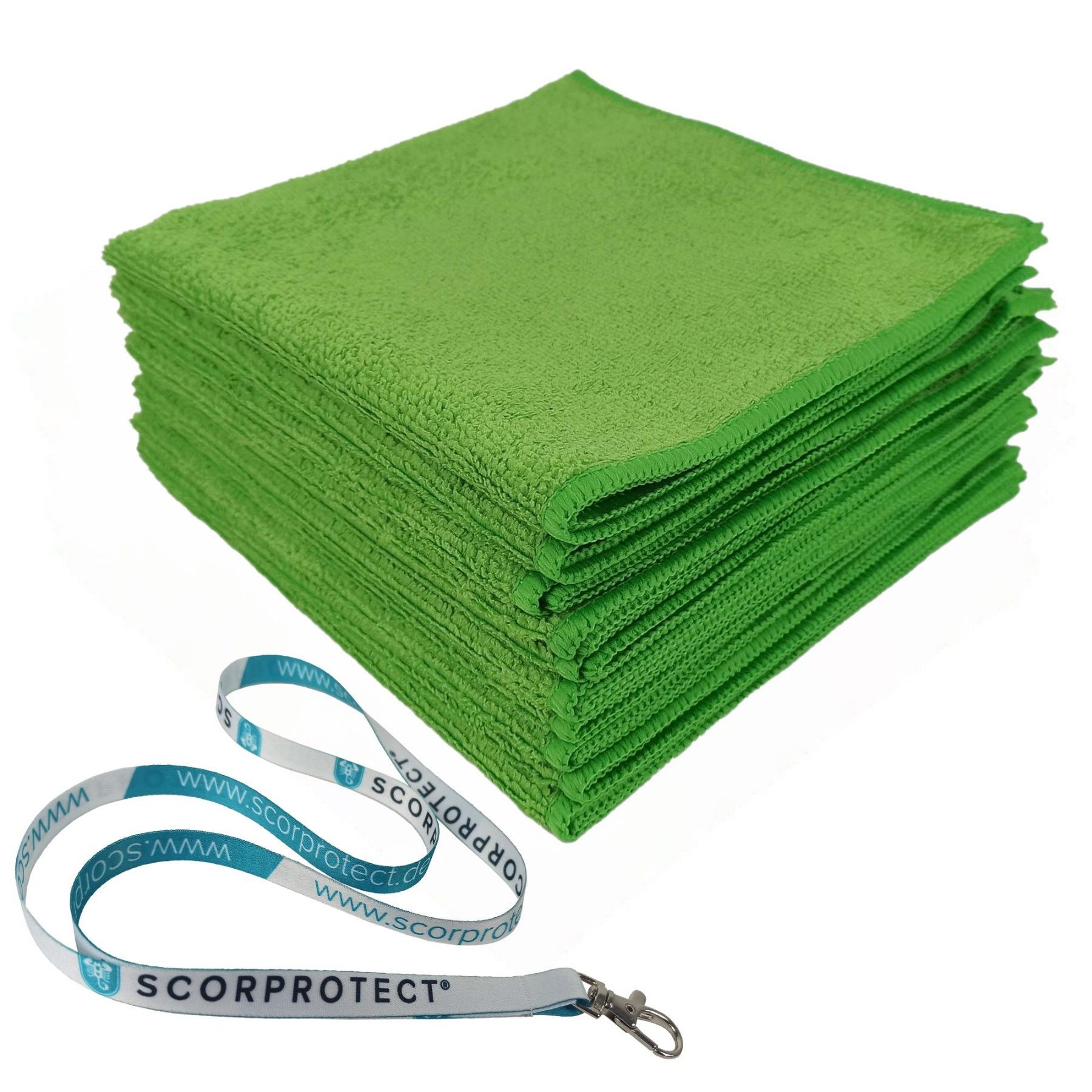 Scorprotect 10x Mikrofasertuch 40x40 cm 300 GSM Grün + Schlüsselband