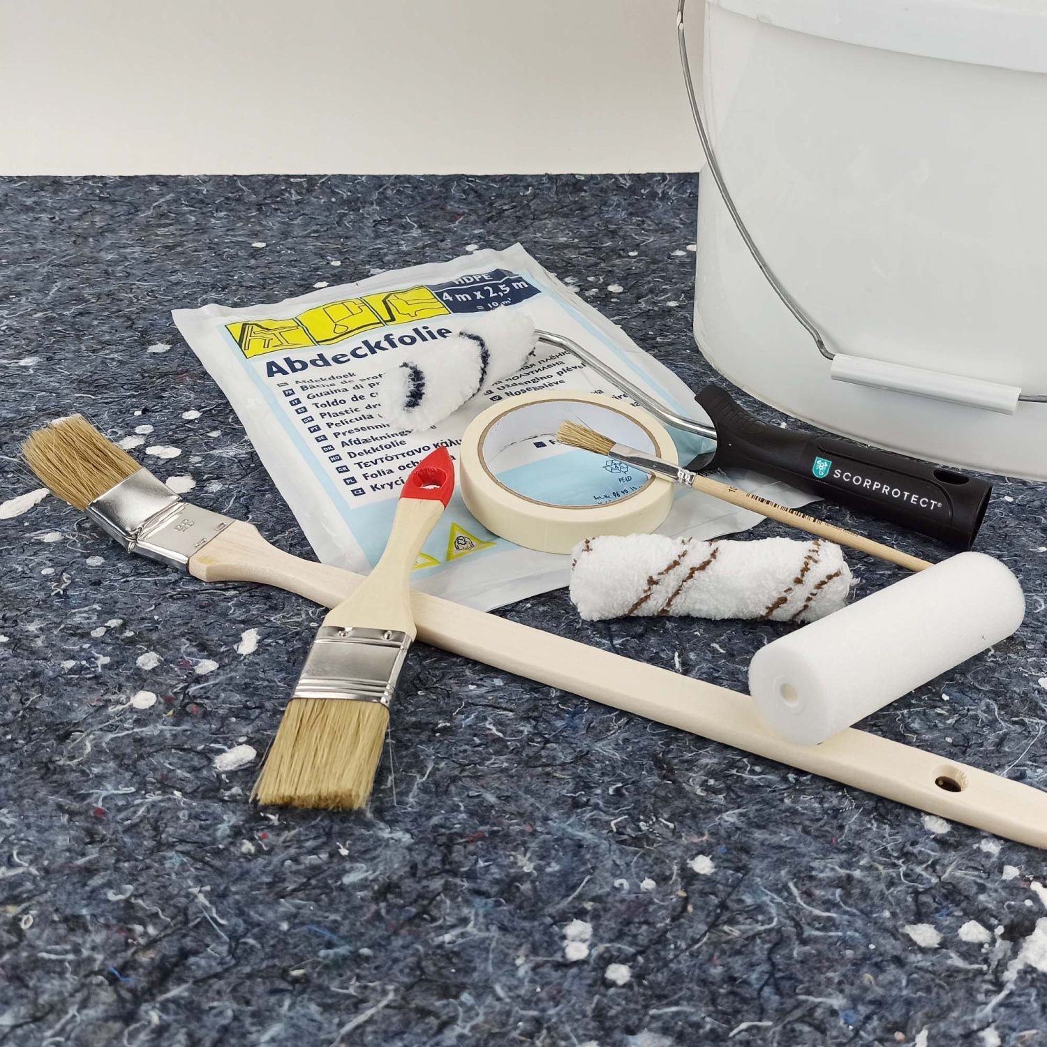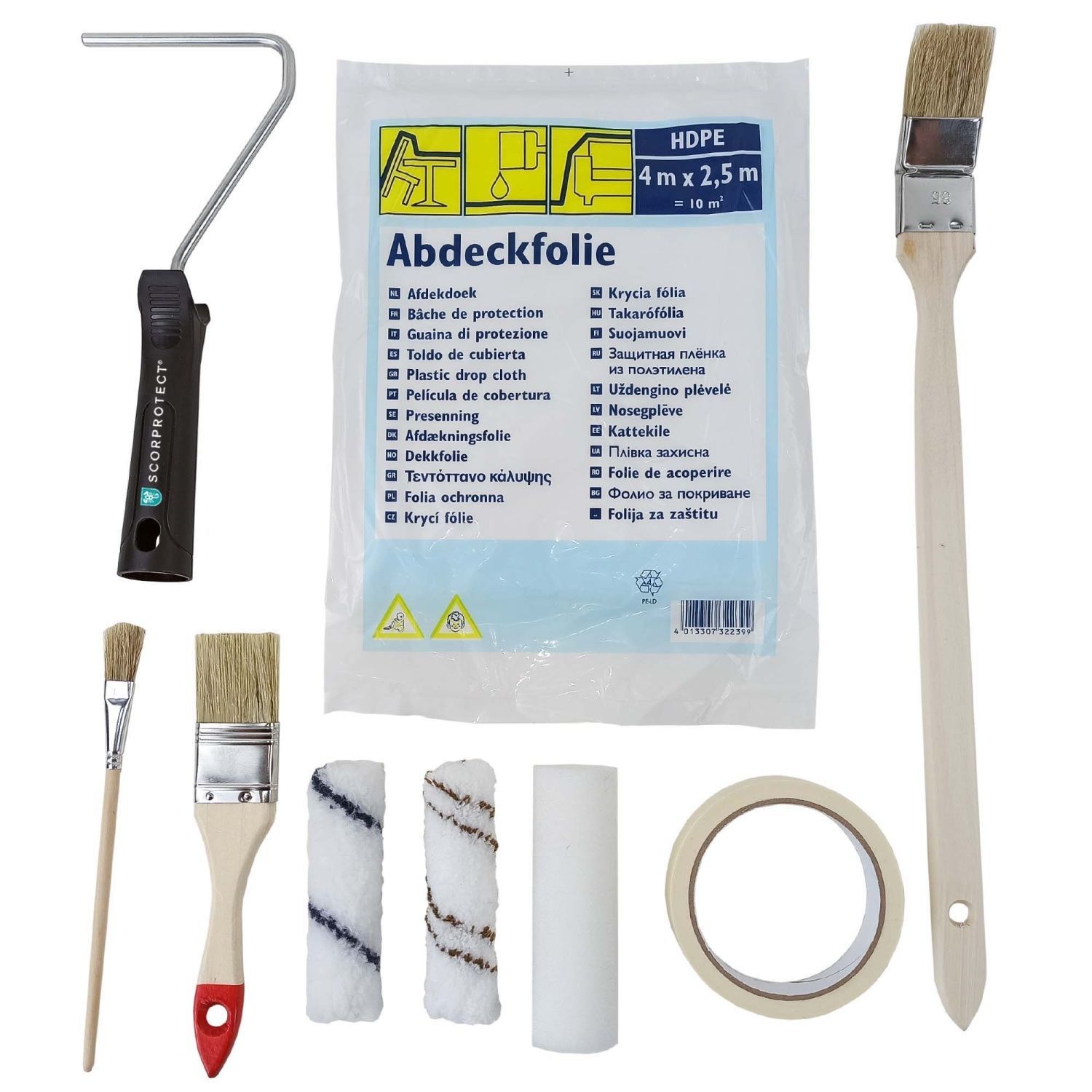 Scorprotect® Profi-Renovier-Set 9-teilig für Malerarbeiten mit Farbroller, Walzen, Pi