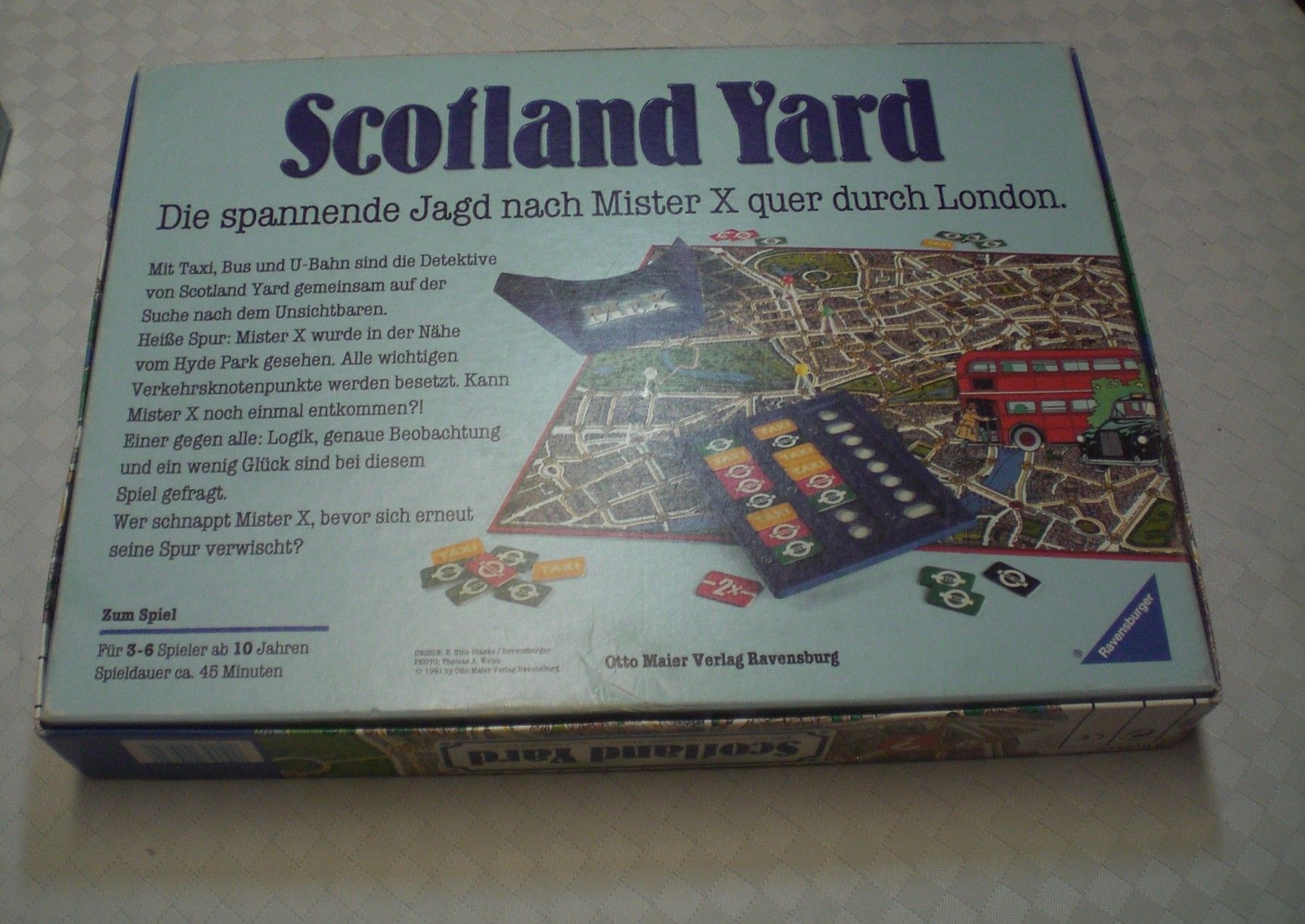 Jagd auf Mister X Mit Taxi, Bus und U-Bahn geht die Jagd kreuz und quer durch London. Die Detektive sind auf einer heißen Spur: der Unsichtbare wurde in der Nähe von Big Ben gesehen. Da - jetzt haben sie ihn eingekreist - oder kann Mister X doch noch einmal entkommenEuro Spiel des Jahres 1983. gebra... Mehr