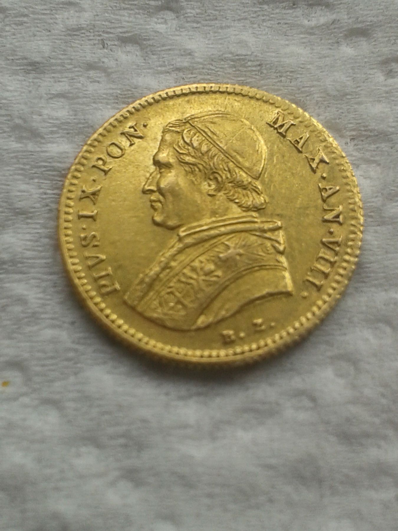 Original Münze, sehr gut erhalten, Gold Vatikan Papst Pius IX. - RAR - Lit.: Pag. 378; Muntoni 109, Gold bei Fragen: