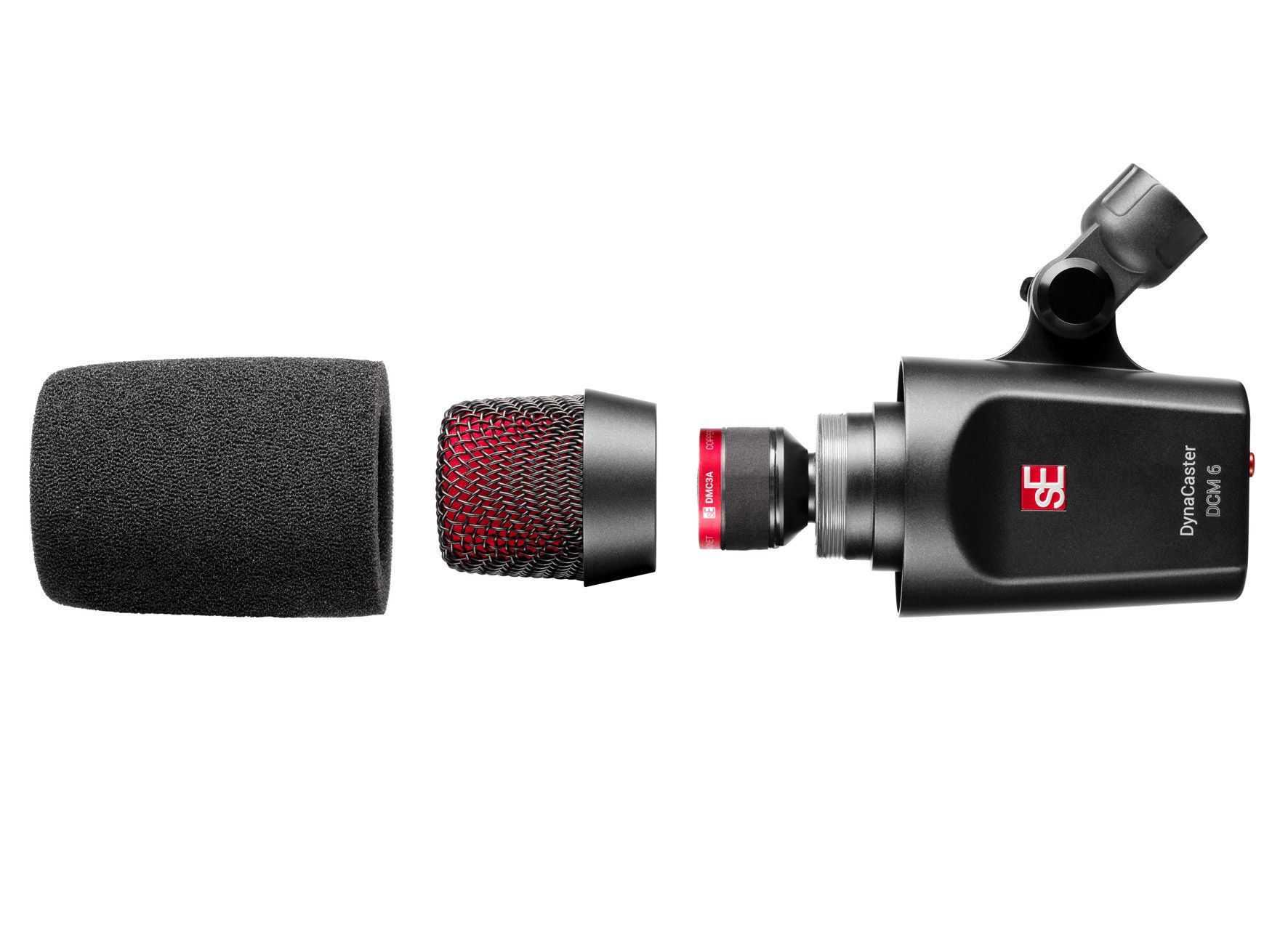 sE Electronics Dynacaster DCM 6 Dynamisches Studio Mikrofon ideal für Sprache und Gesang integrierter Preamp hebt bei Bedarf den Pegel um 30 dB (benötigt 48 V Phantomspeisung) integrierter Pop-Filter Richtcharakteristik: Niere Frequenzgang: 40 - 18.000 Hz Empfindlichkeit ohne Preamp: 2.5 mV Pa (-52