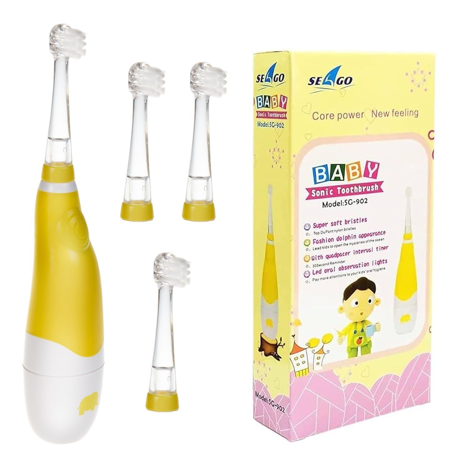 SEAGO Kinder-Schallzahnbürste 1xAA 1,5V (nicht enthalten), 4 Aufsätze, SG-902