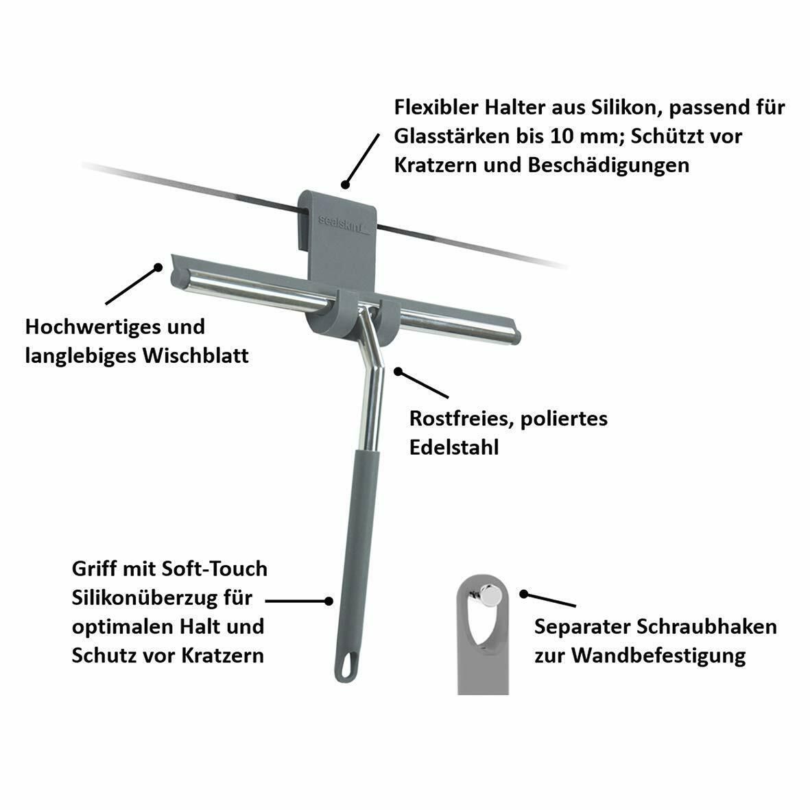 Sealskin Duschabzieher Urban Glaswischer flexibler Halter Edelstahl poliert