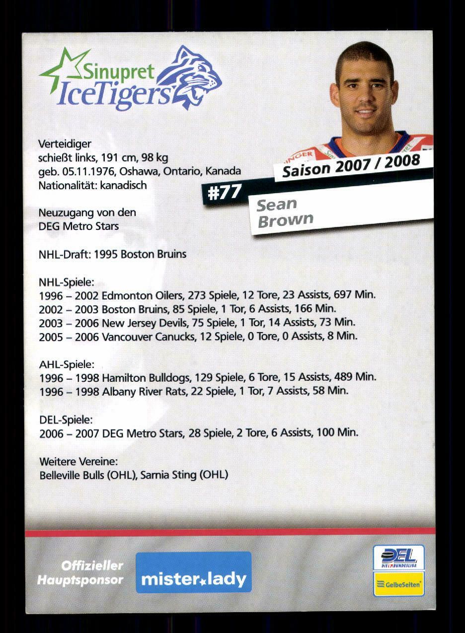Sean Brown Nürnberger Ice Tigers 2007-08 Original Signiert + A 221963