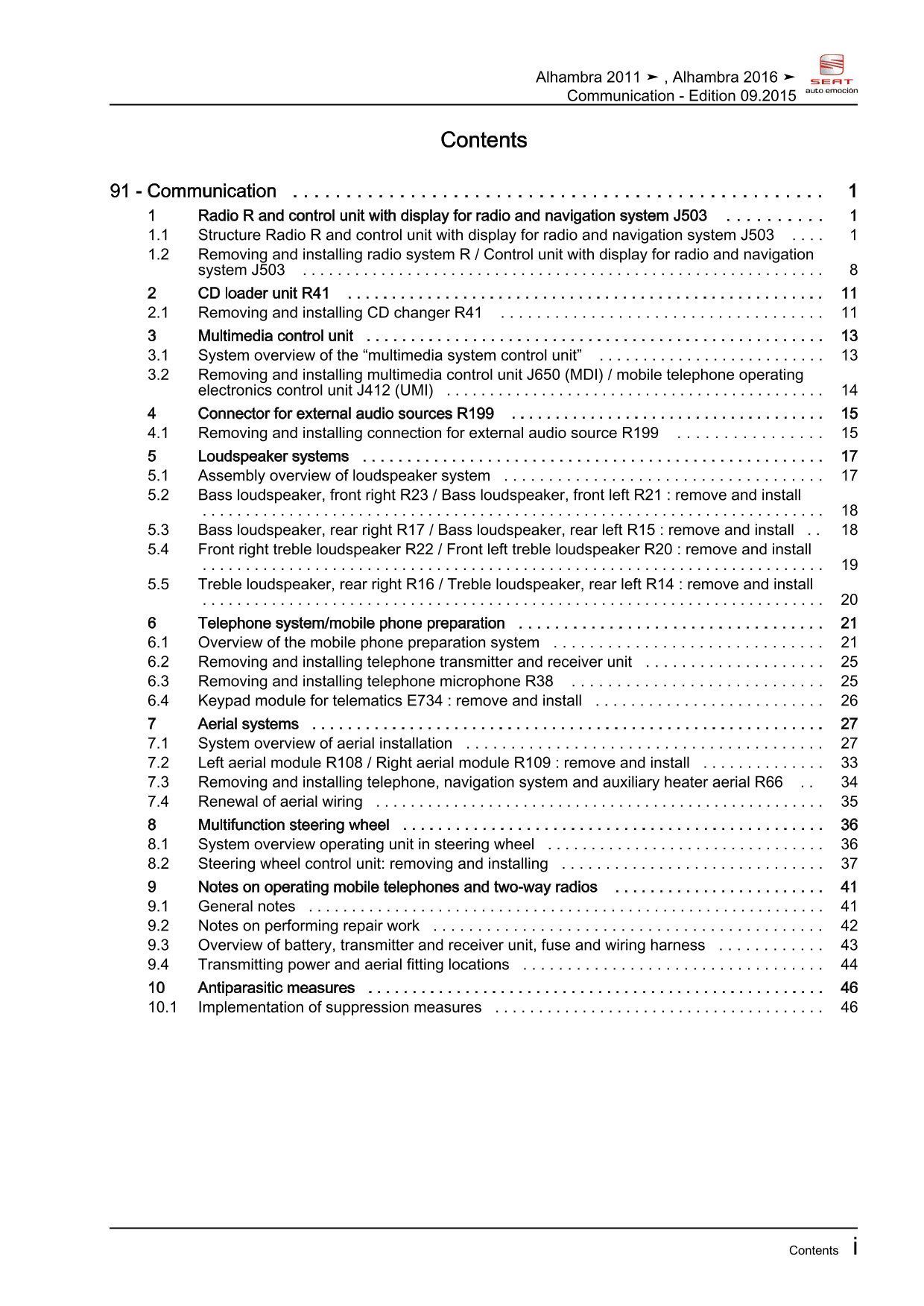 Seat Alhambra 71 2010-2022 communication radio navigation repair manual eBook