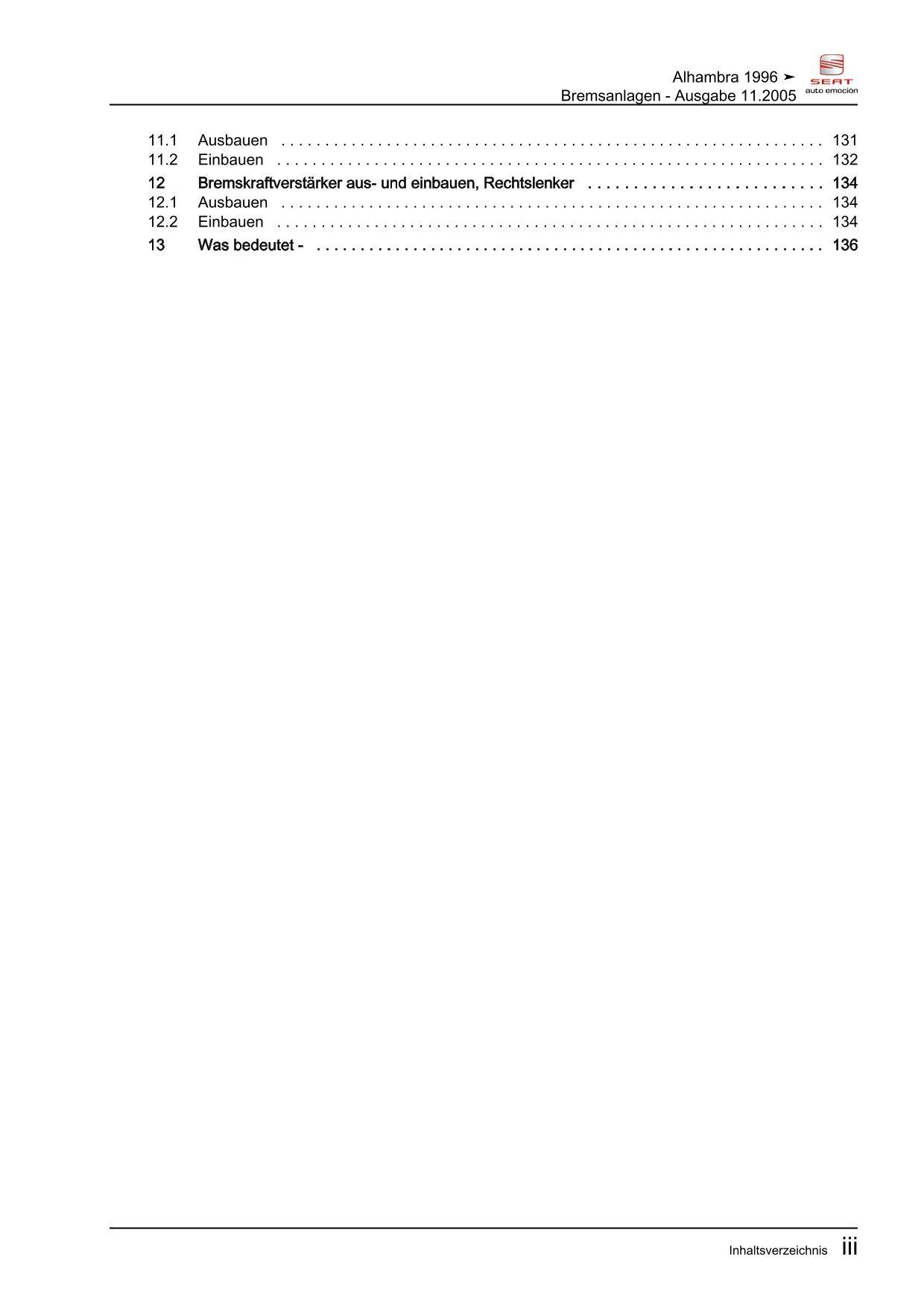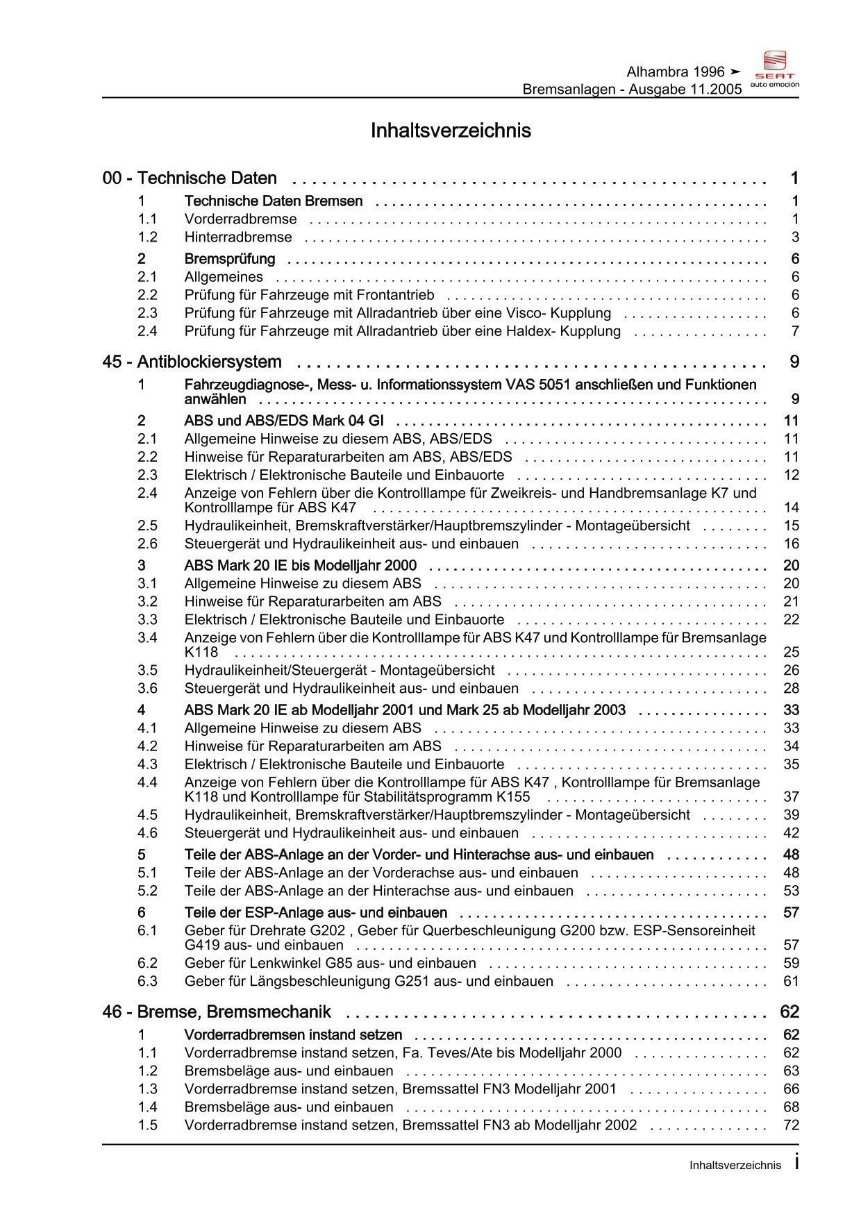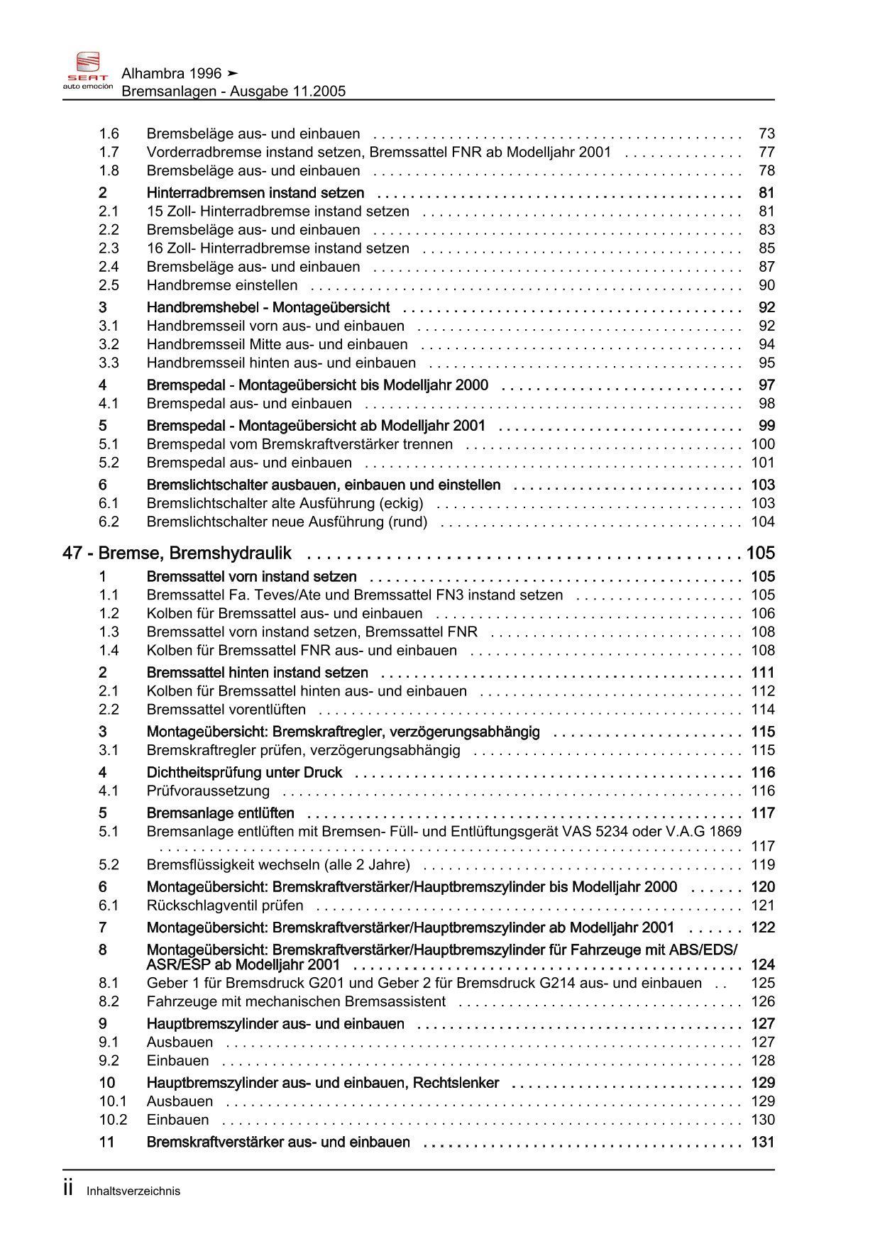 Seat Alhambra 7V 1995-2010 Bremsanlagen Bremsen System Reparaturanleitung eBook