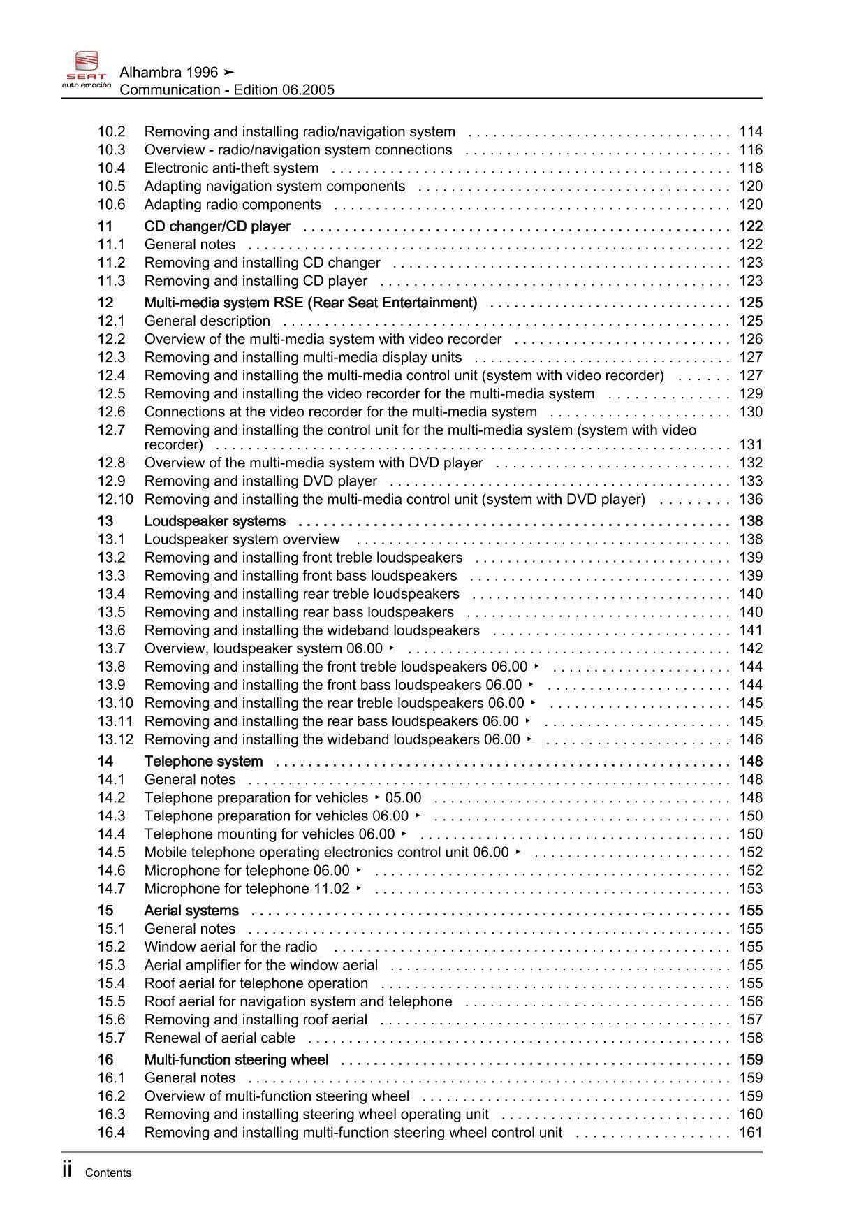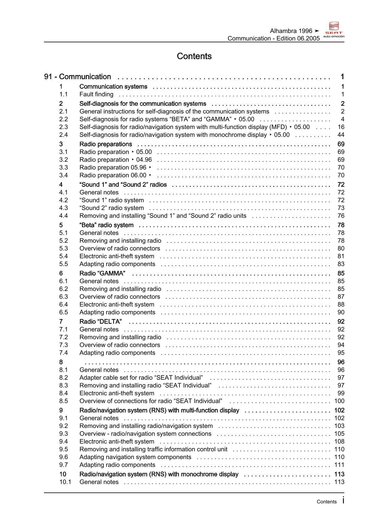 Seat Alhambra 7V 1995-2010 communication radio navigation repair manual eBook