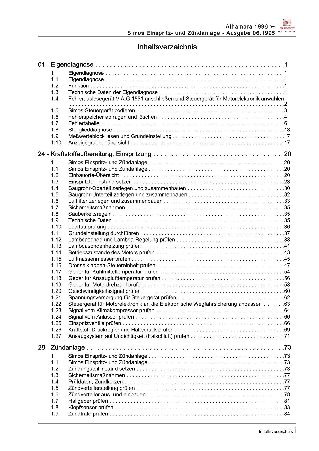 Seat Alhambra 7V 1995-2010 Simos Einspritz- Zündanlage Reparaturanleitung eBook