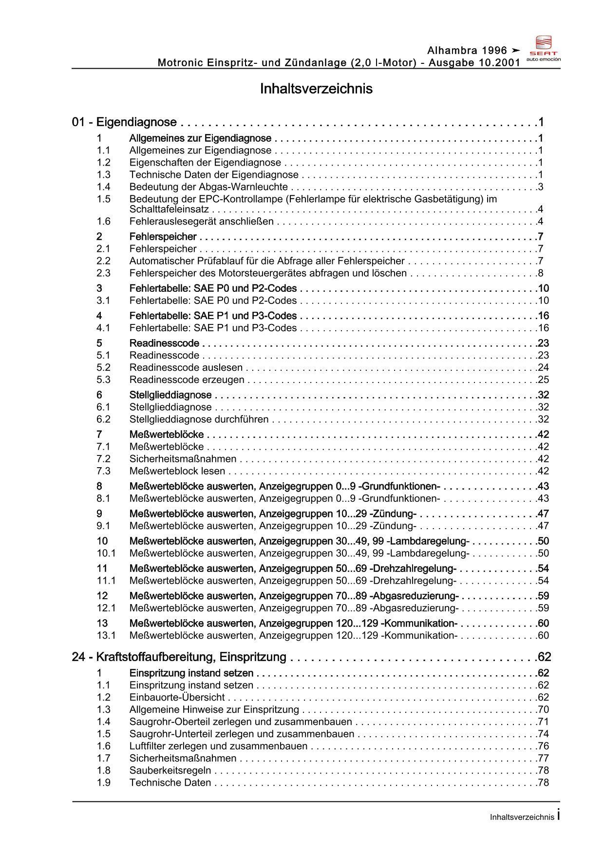 Seat Alhambra (95-10) Benzin 2,0l Einspritz- Zündanlage Reparaturanleitung eBook