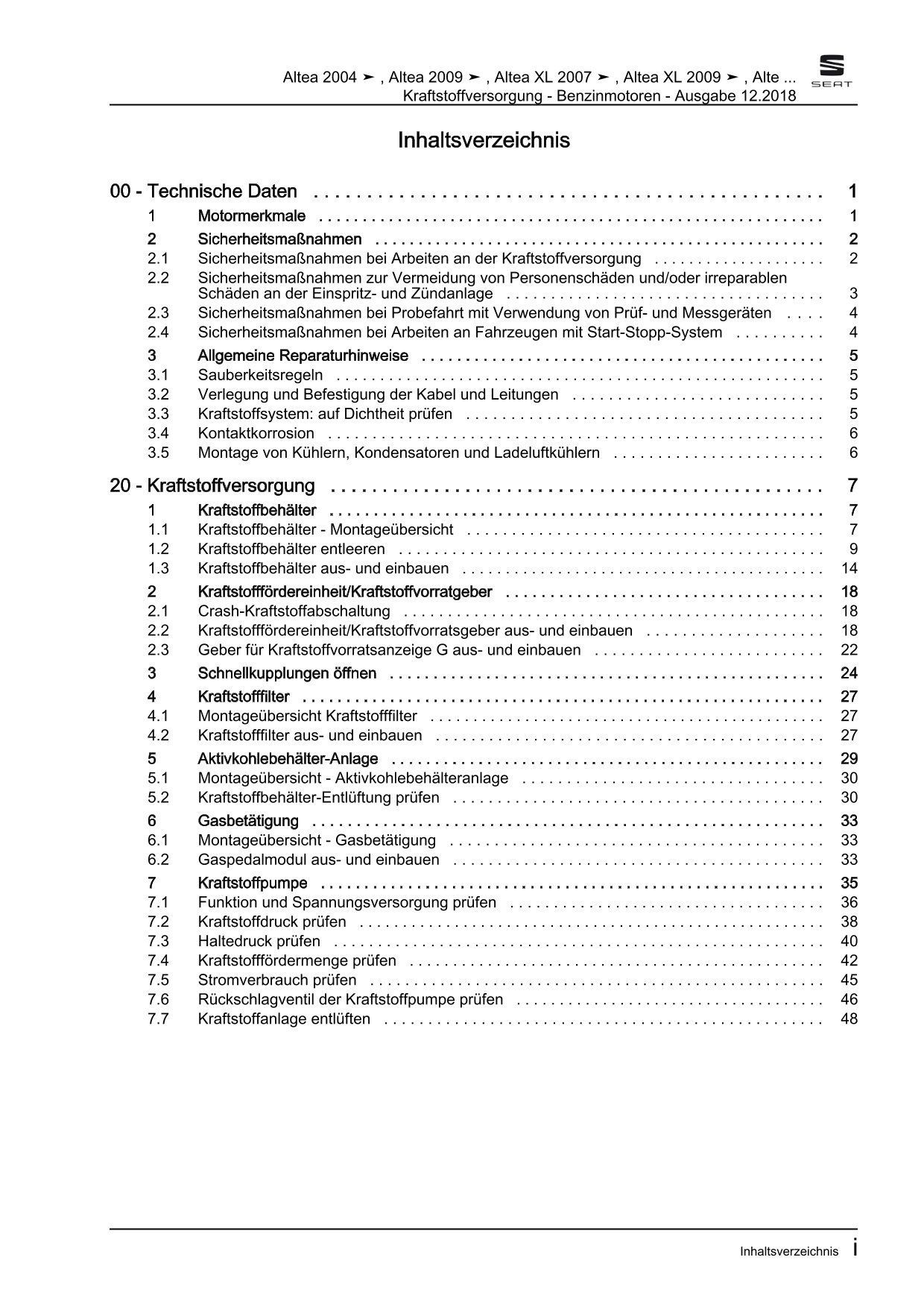 Seat Altea XL 5P 2006-2015 Kraftstoffversorgung Benzin Reparaturanleitung eBook
