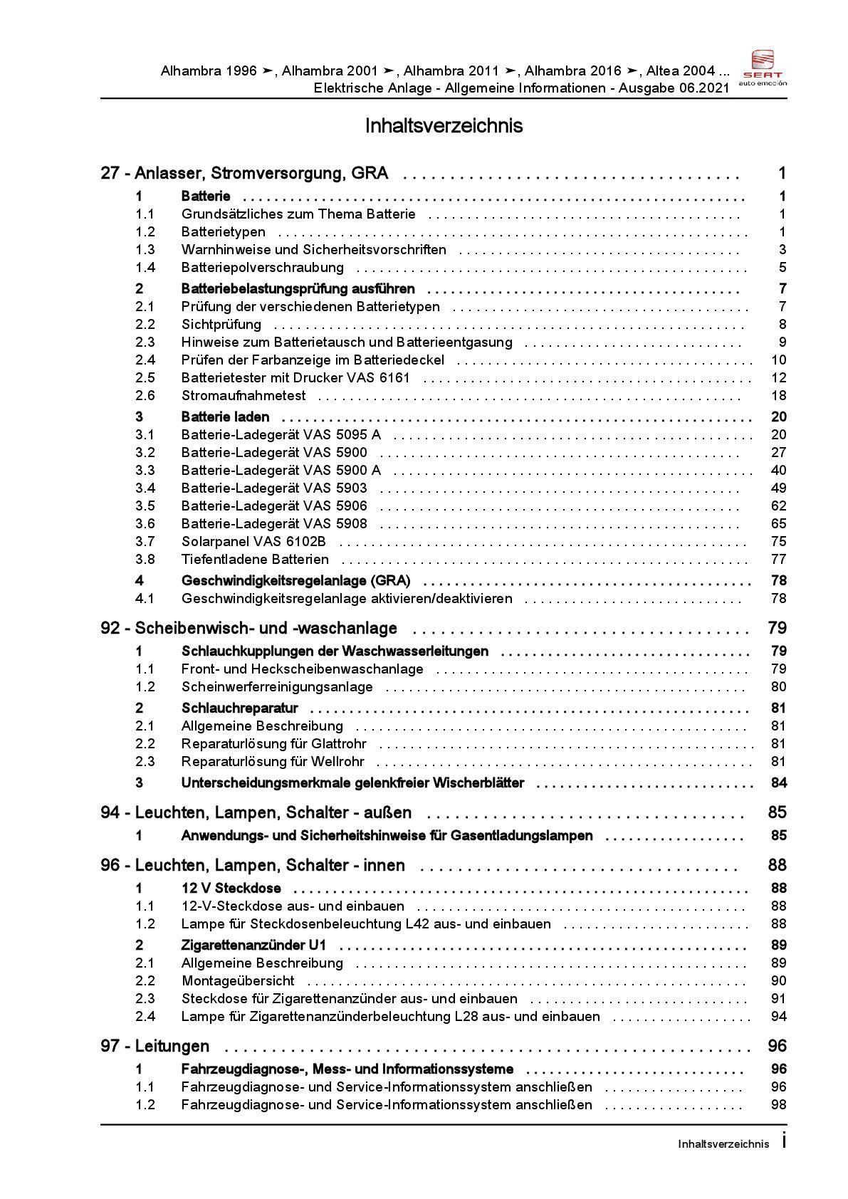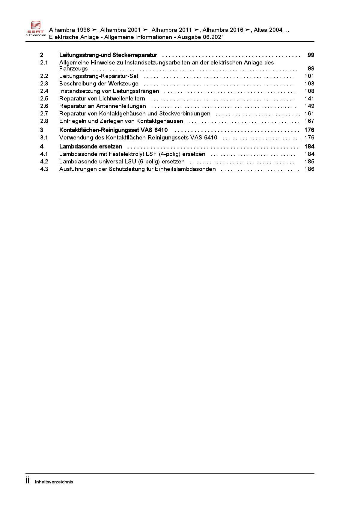 Seat Altea XL 5P (06-15) Allgemeine Infos Elektrische Anlage Reparaturanleitung