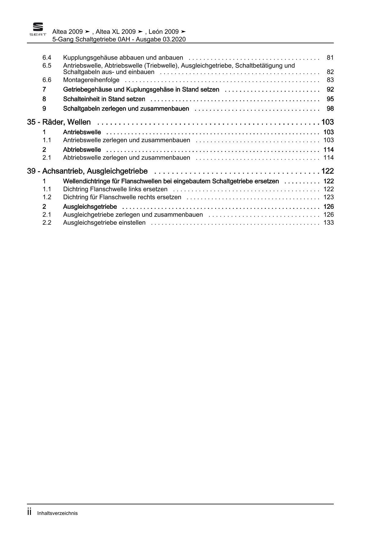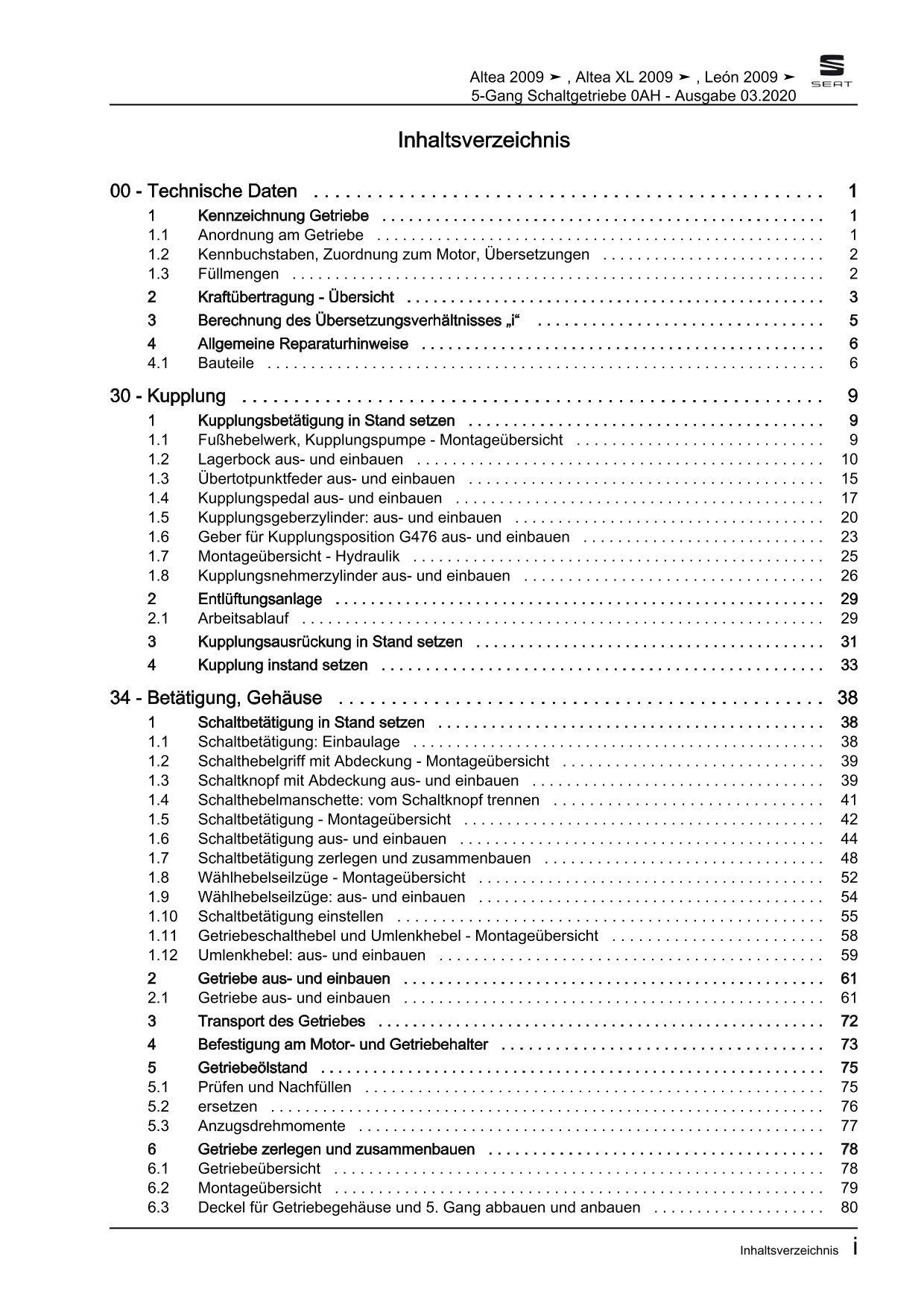Seat Altea XL 5P 2006-2015 5 Gang Schaltgetriebe 0AH Reparaturanleitung eBook