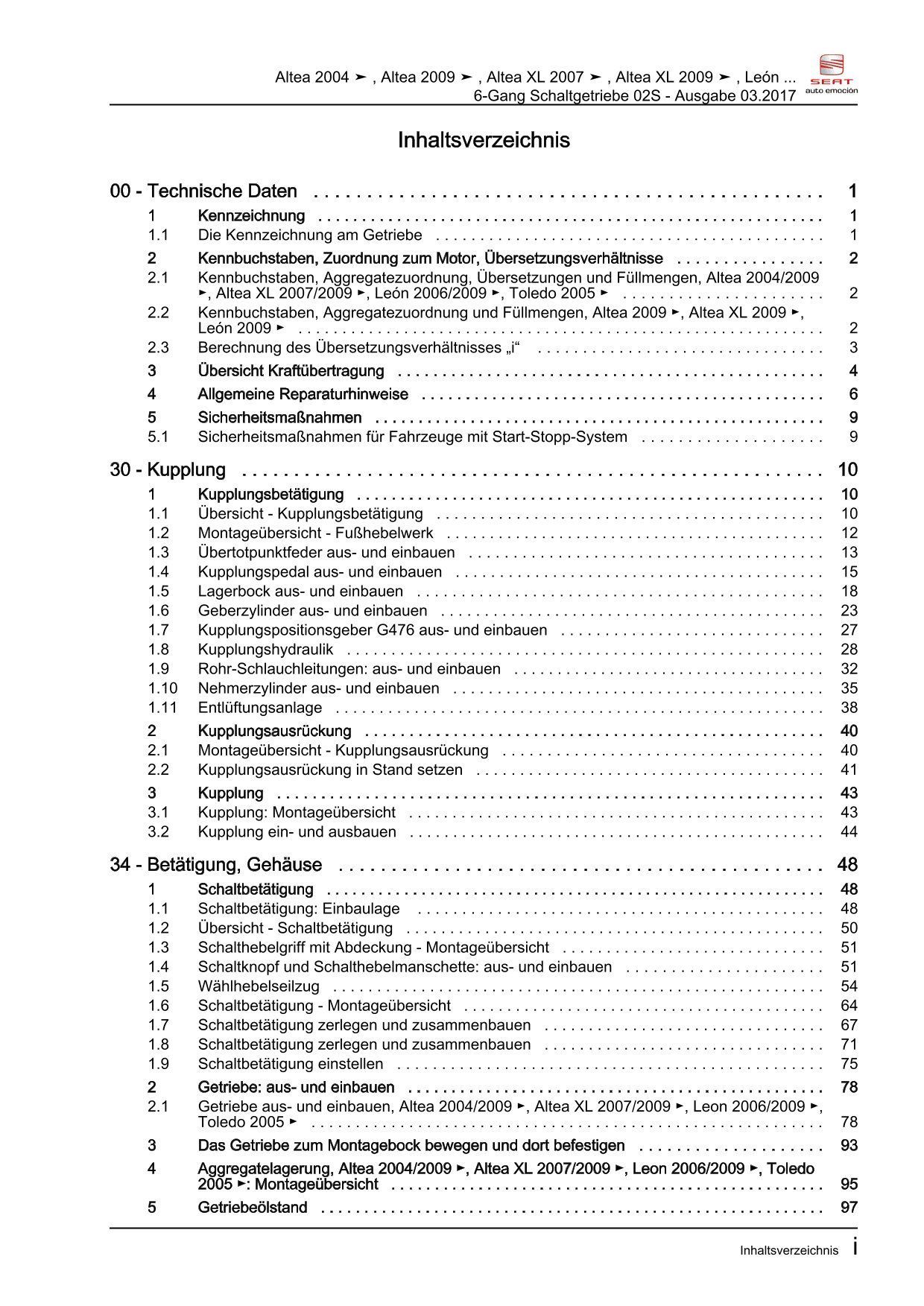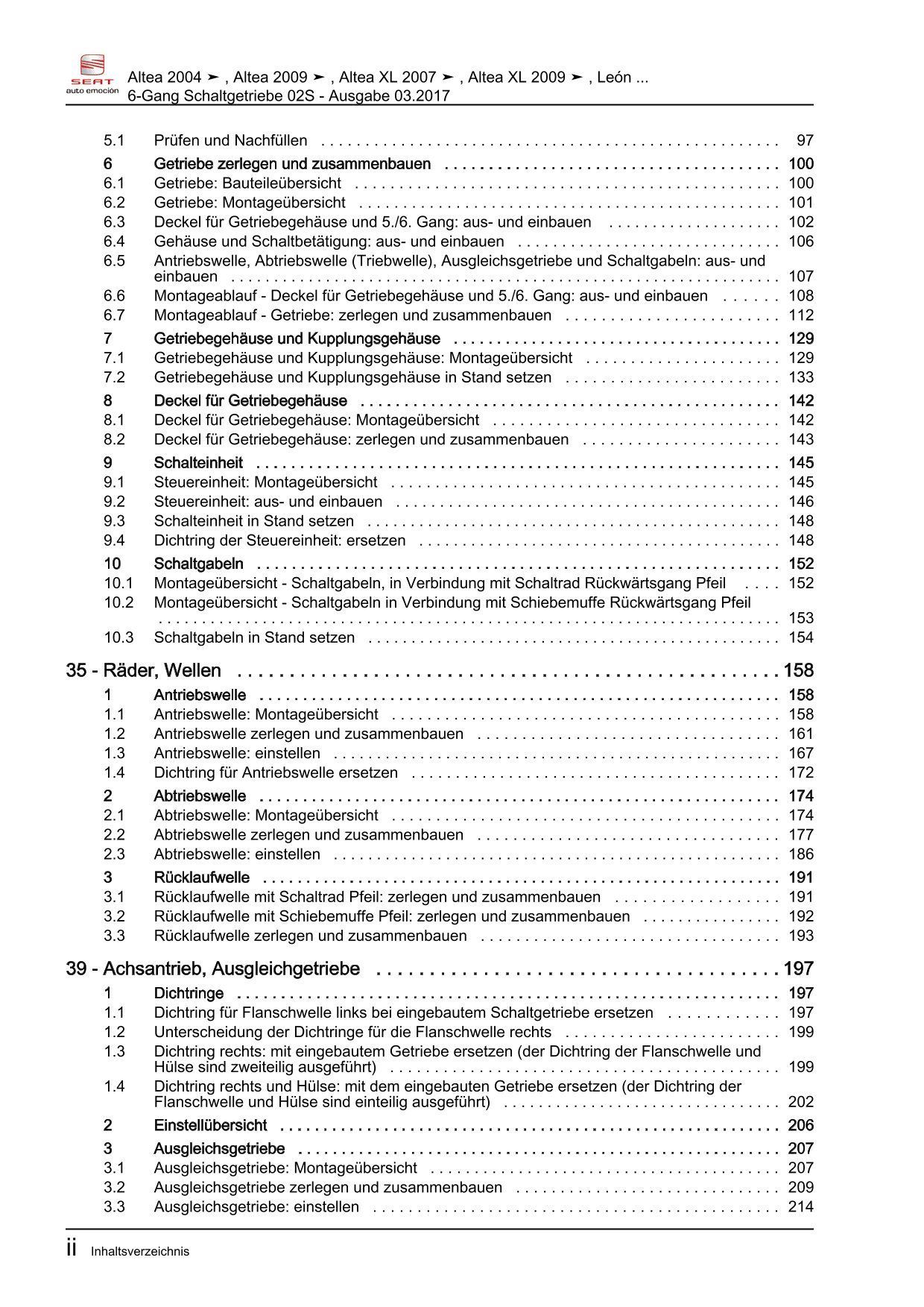 Seat Altea XL 5P 2006-2015 6 Gang Schaltgetriebe 02S Reparaturanleitung eBook