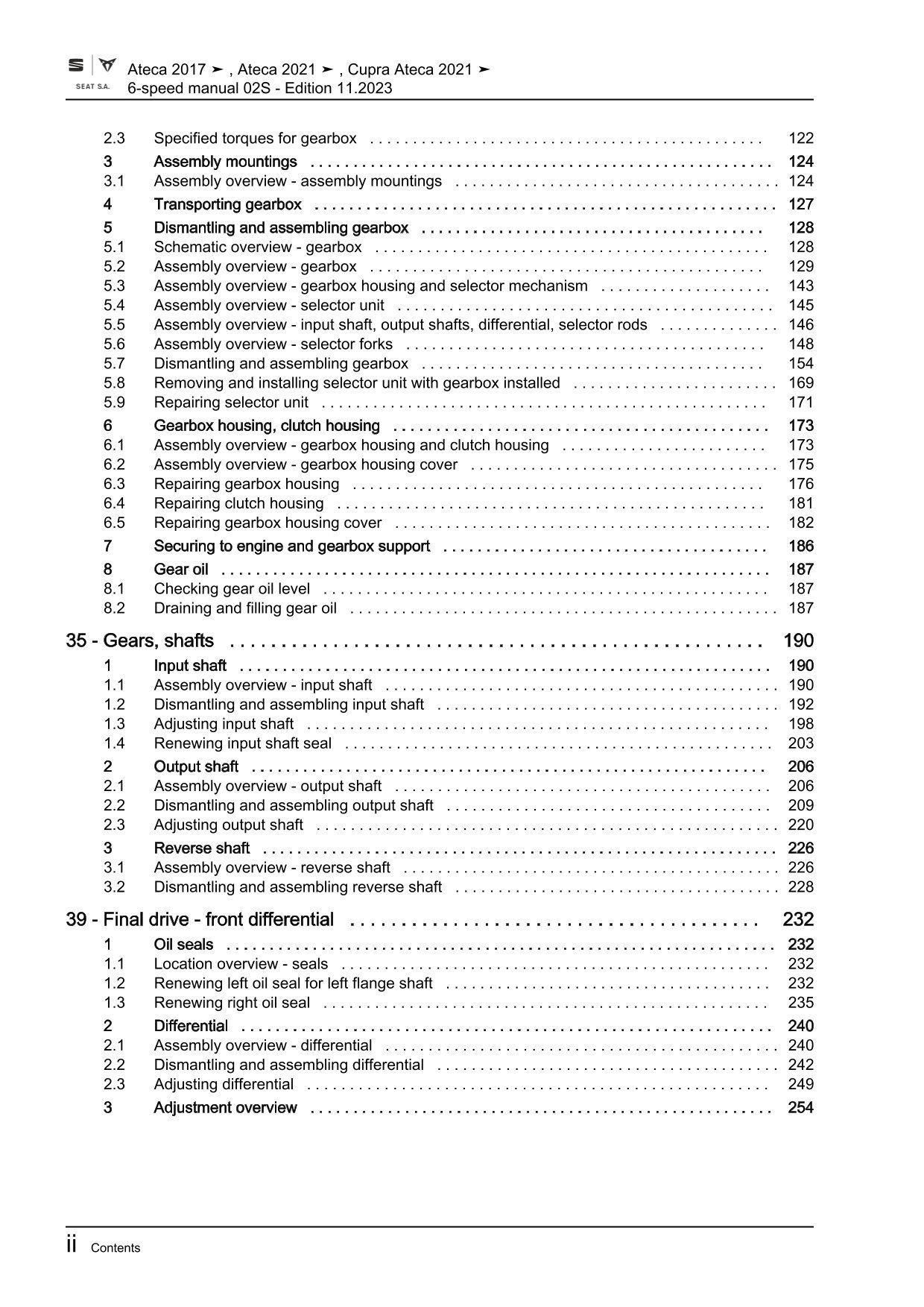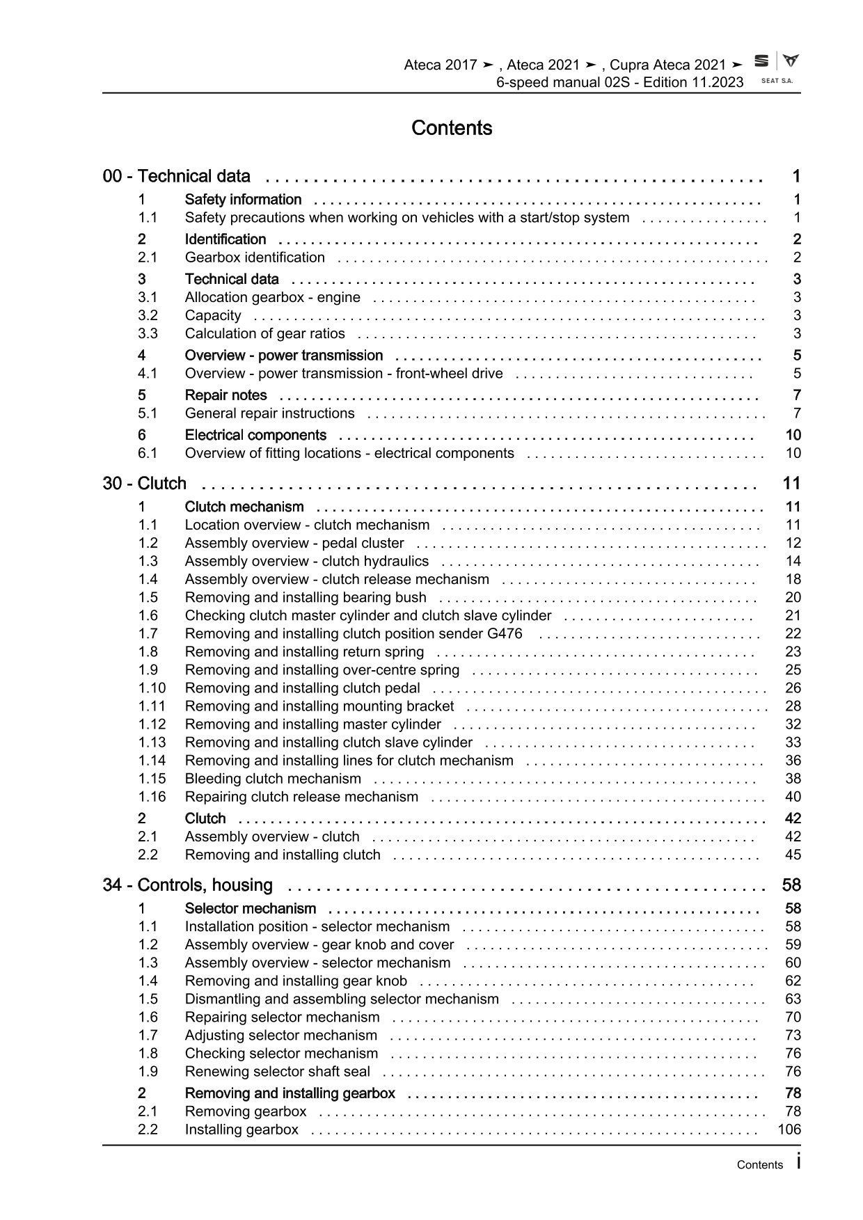 Seat Ateca type KH from 2016 6 speed manual gearbox 02S repair manual eBook