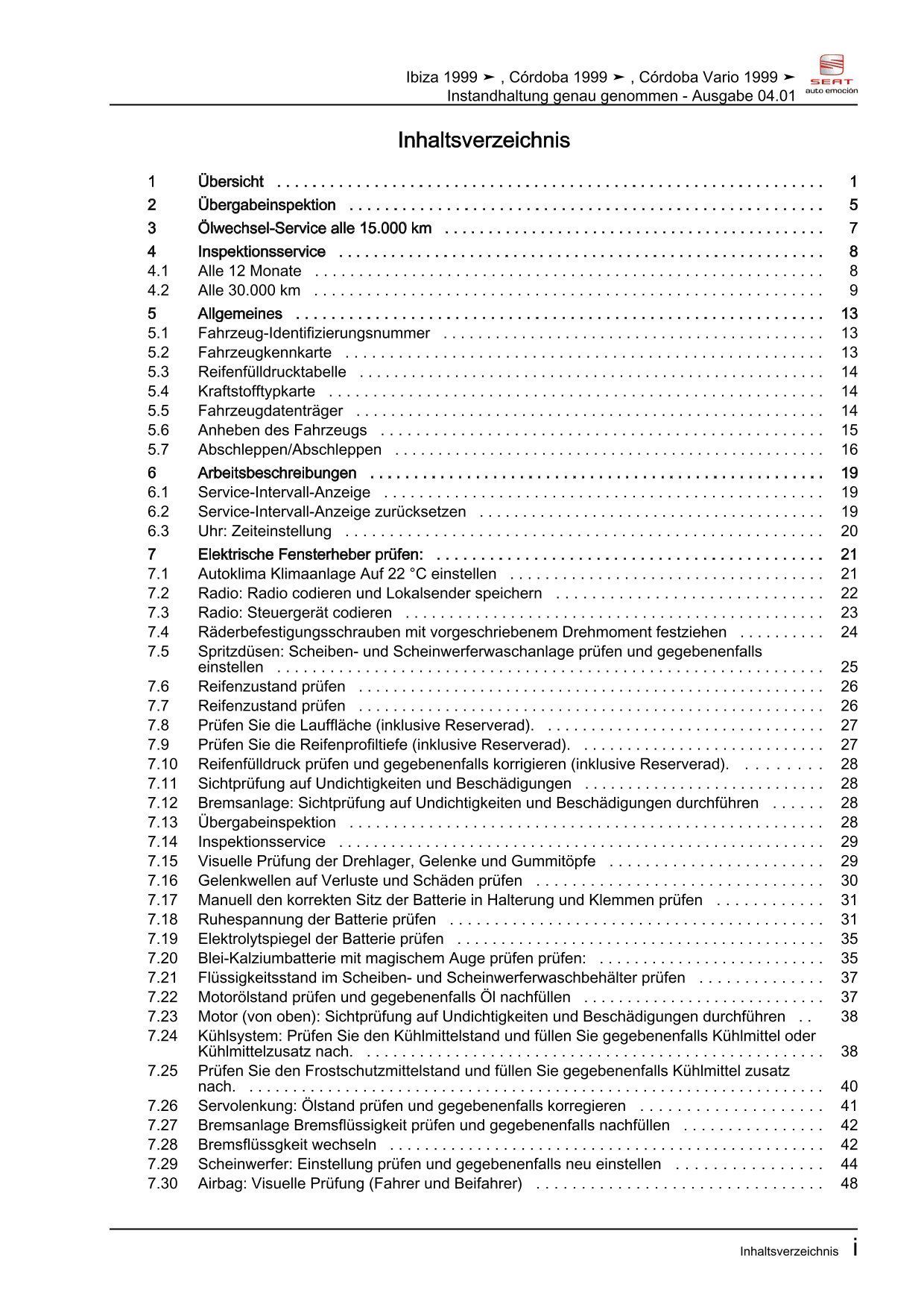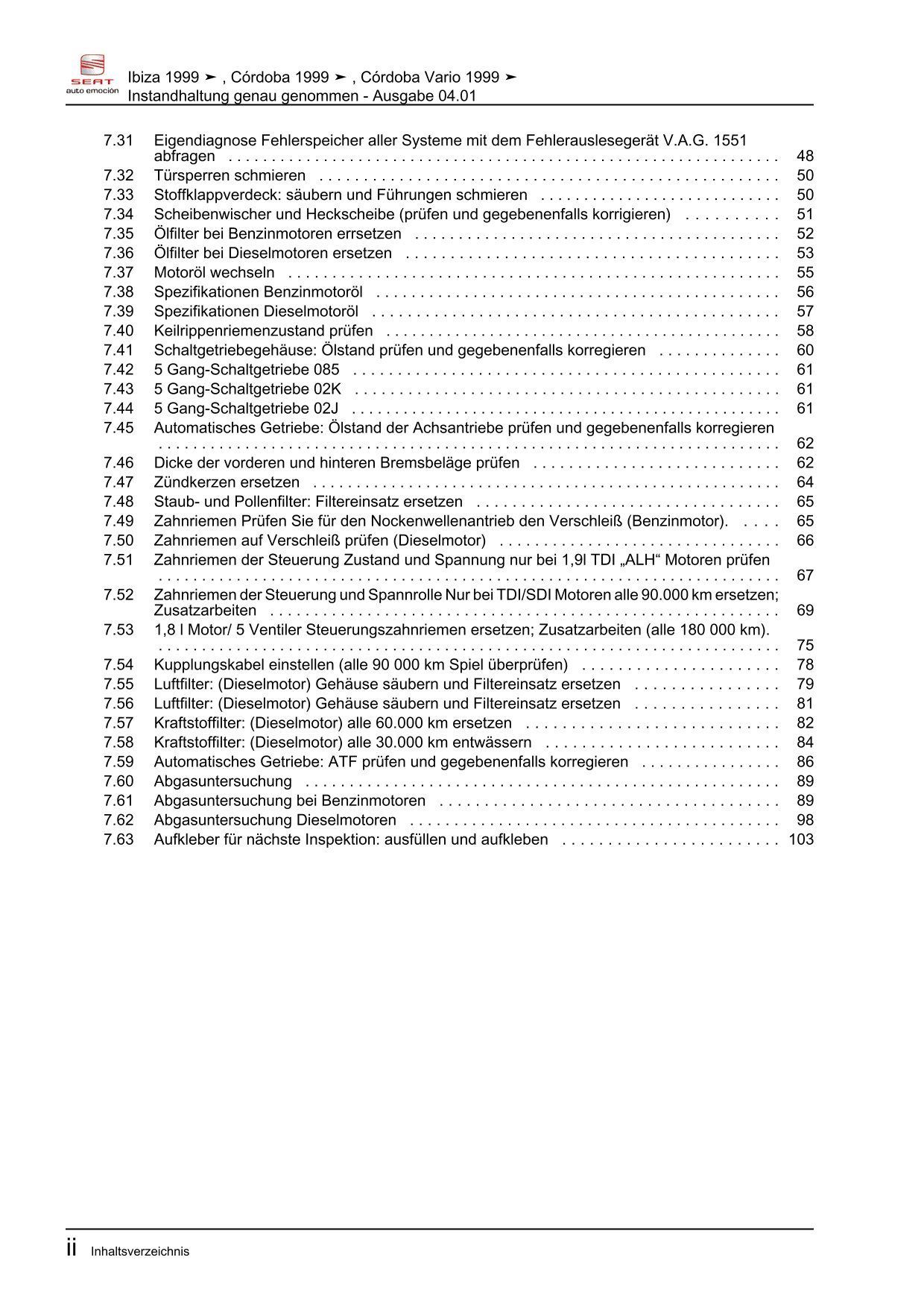 Seat Ibiza 6K (99-02) Instandhaltung Inspektion Wartung Reparaturanleitung eBook