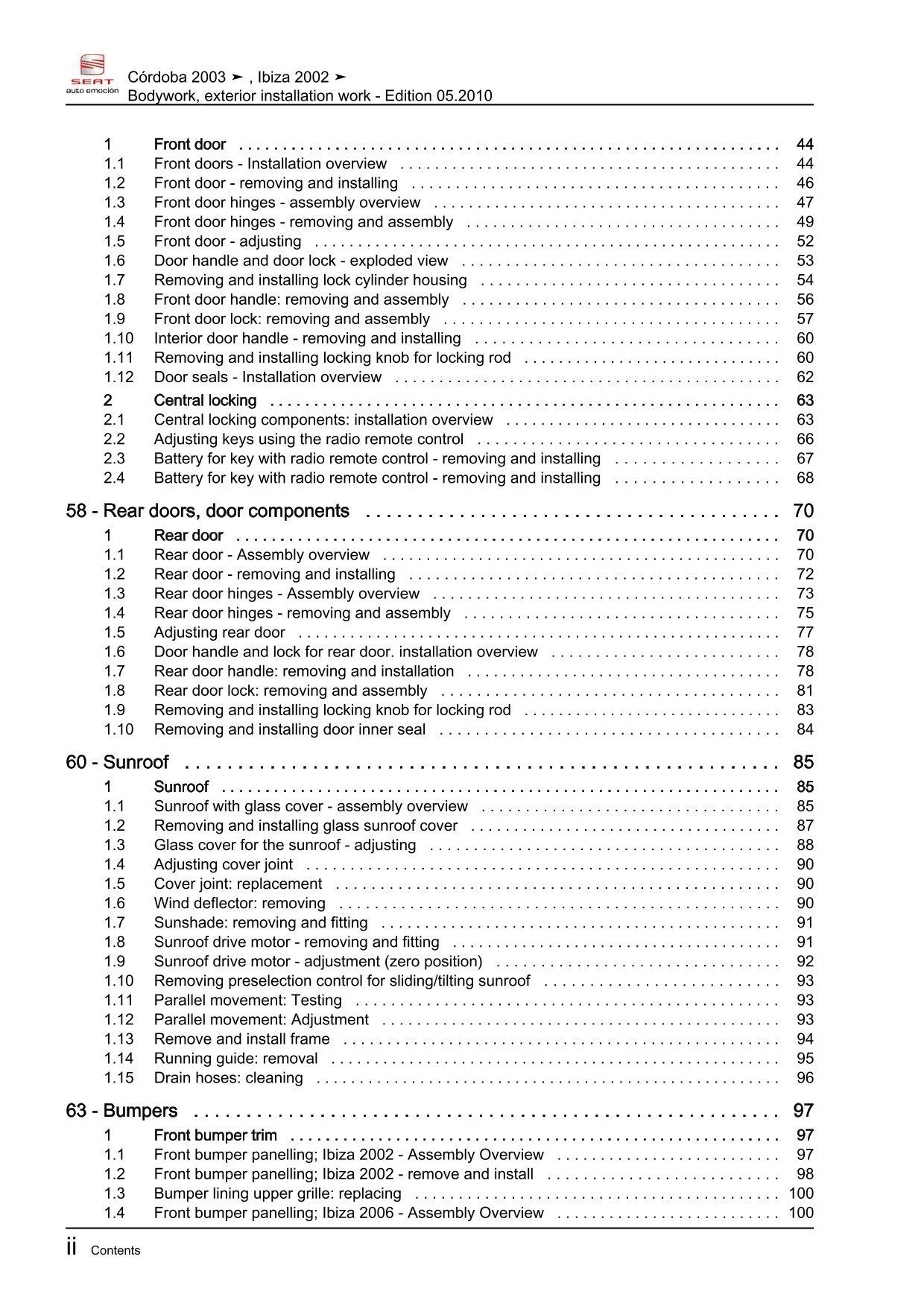 Seat Ibiza type 6L 2001-2008 general body repairs exterior workshop manual eBook