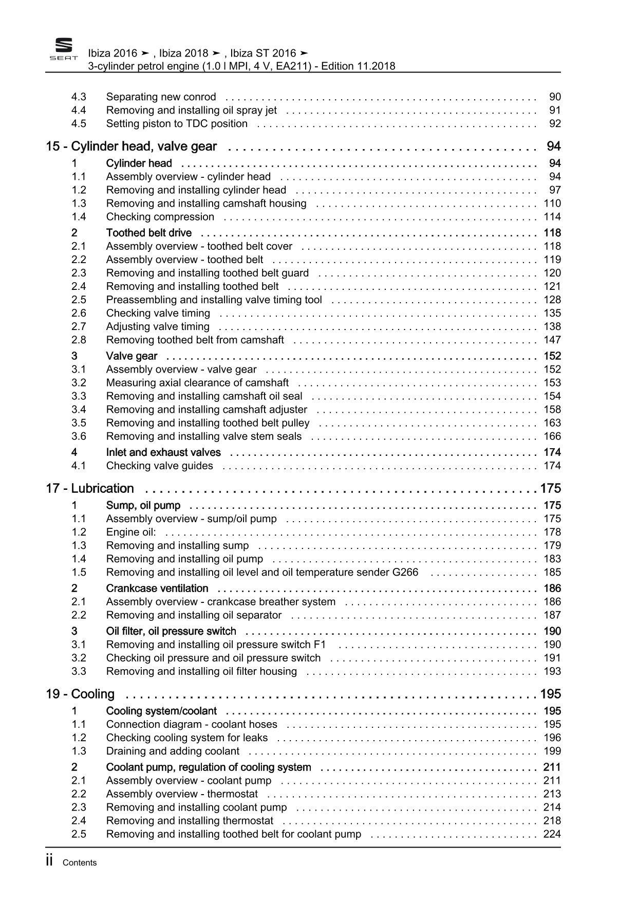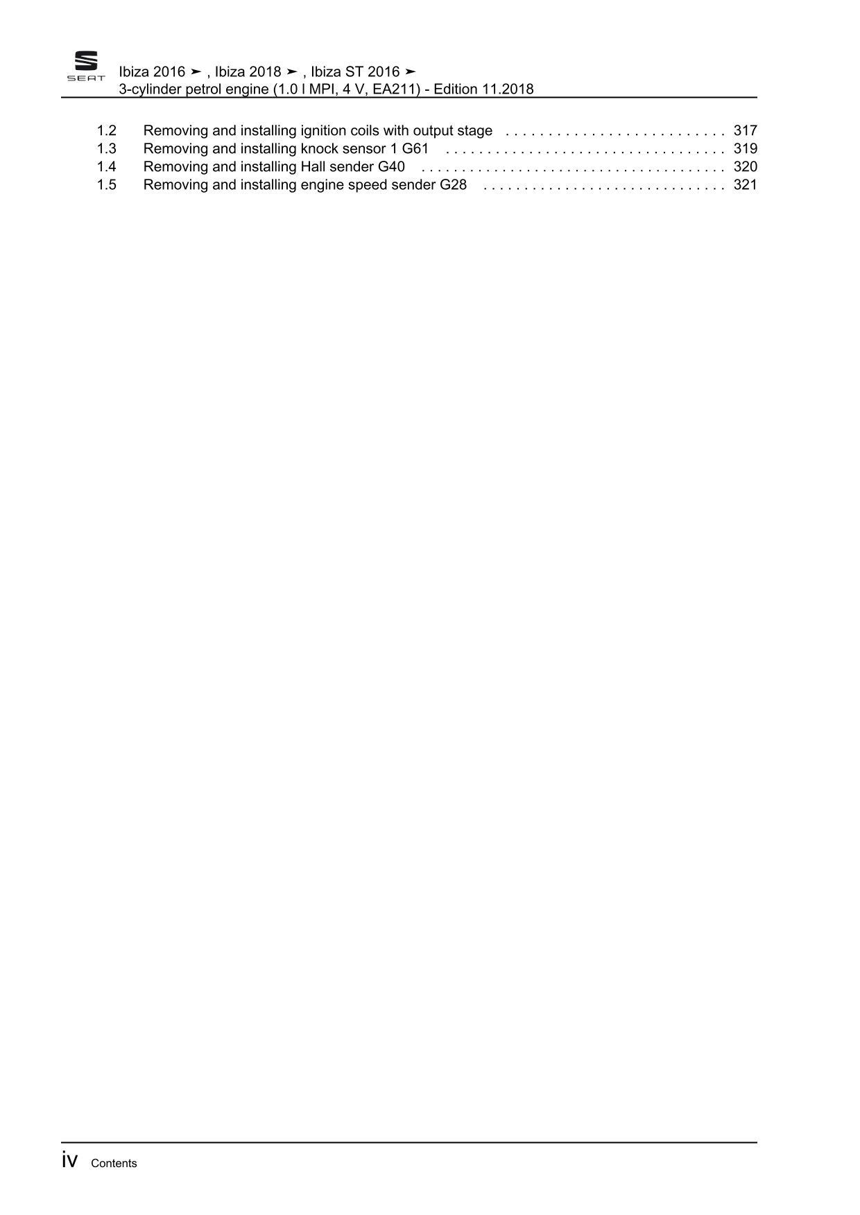 Seat Ibiza type 6P 2015-2017 3-cyl. petrol engines 65-75 hp repair manual eBook
