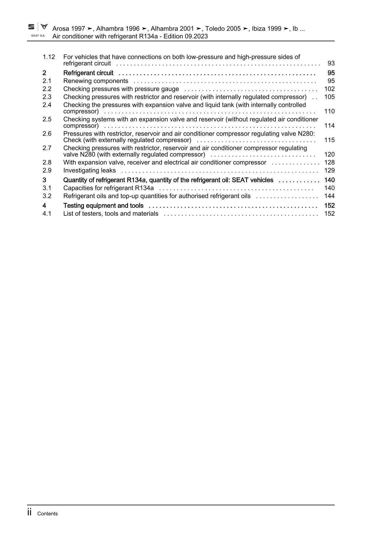 Seat Leon 1M 1999-2006 air conditioning systems refrigerant R134a manual eBook