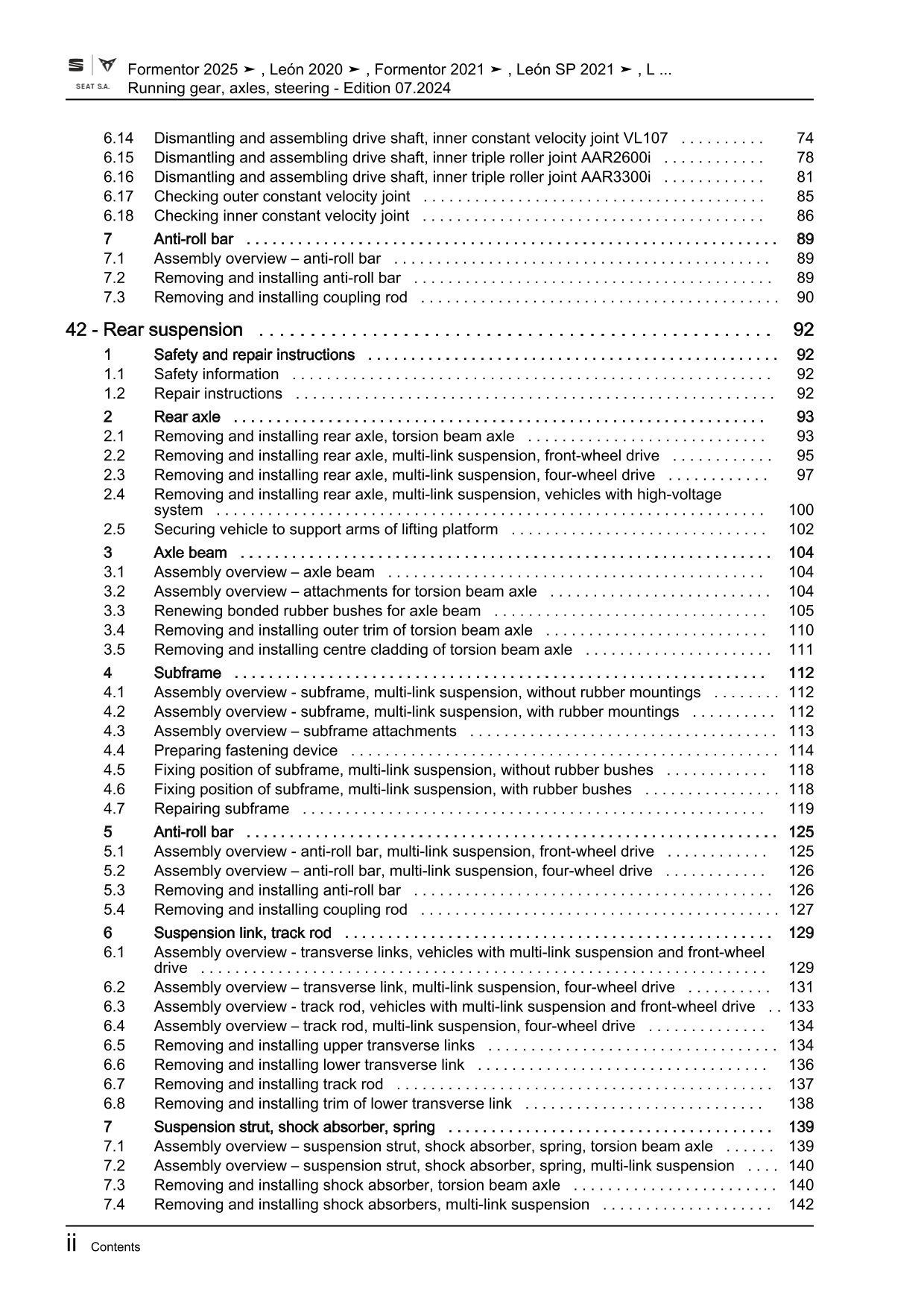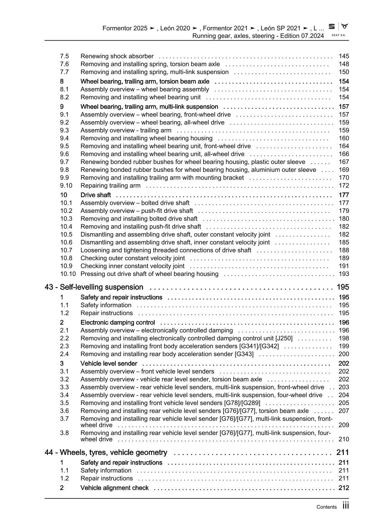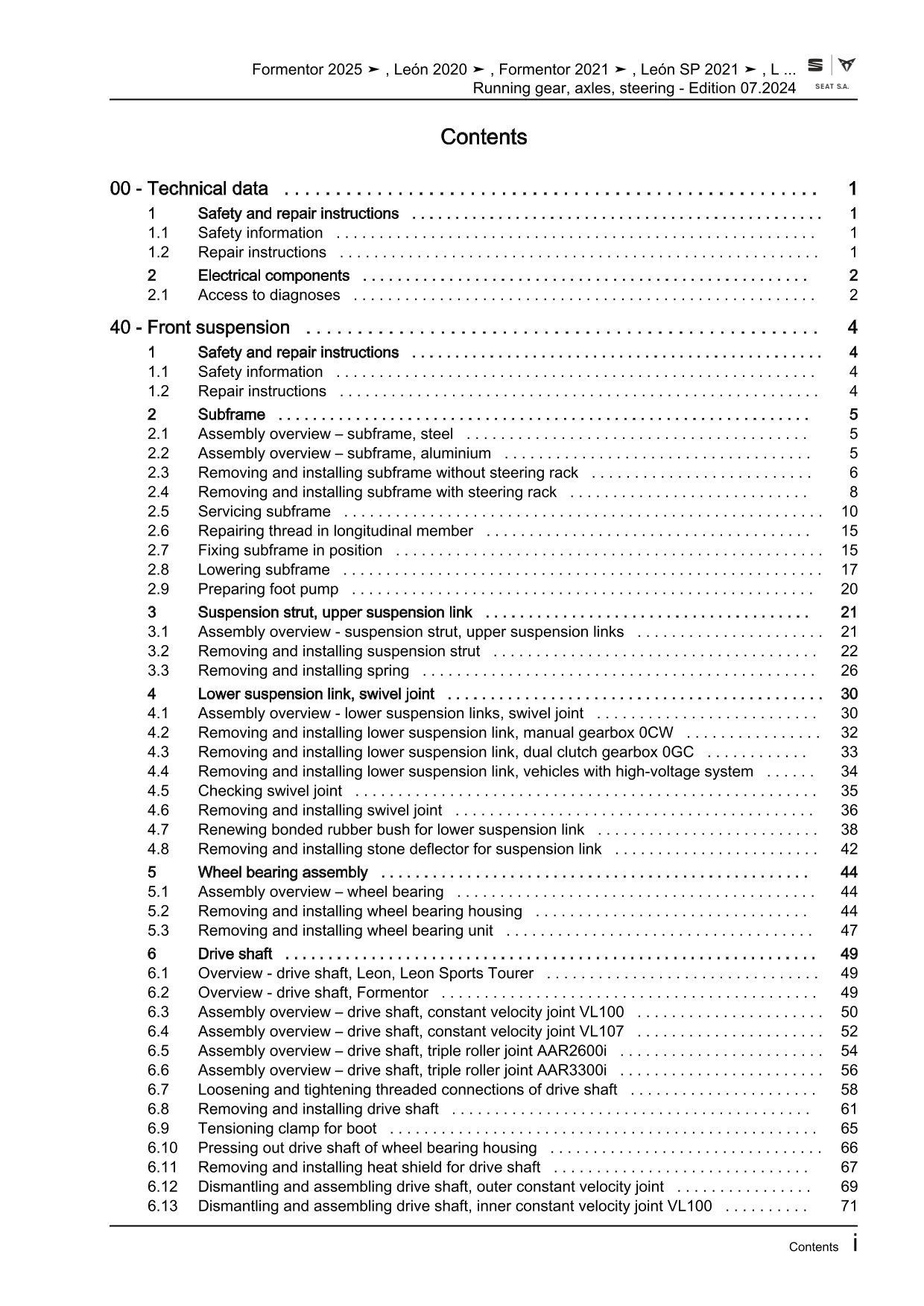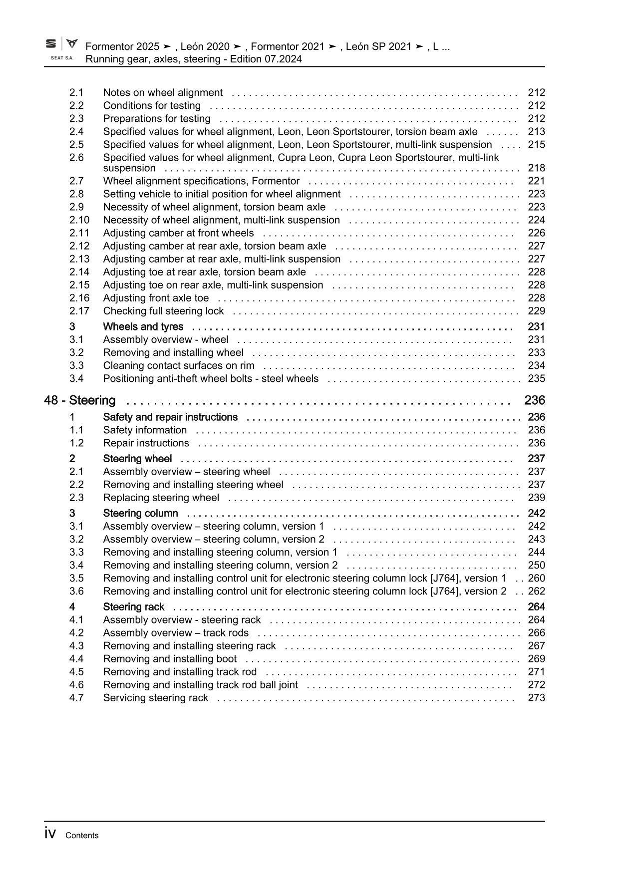 Seat Leon KL from 2020 running gear axles steering repair workshop manual eBook