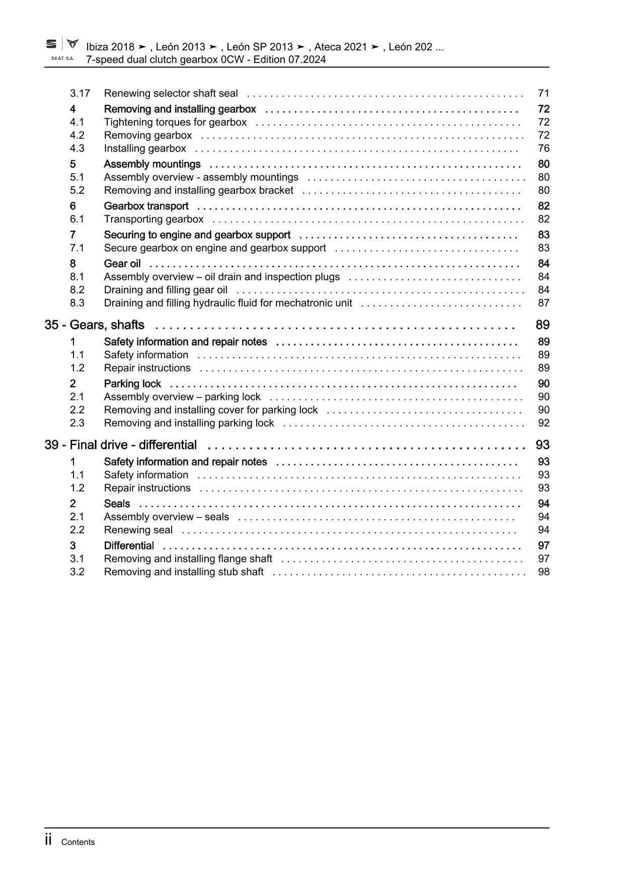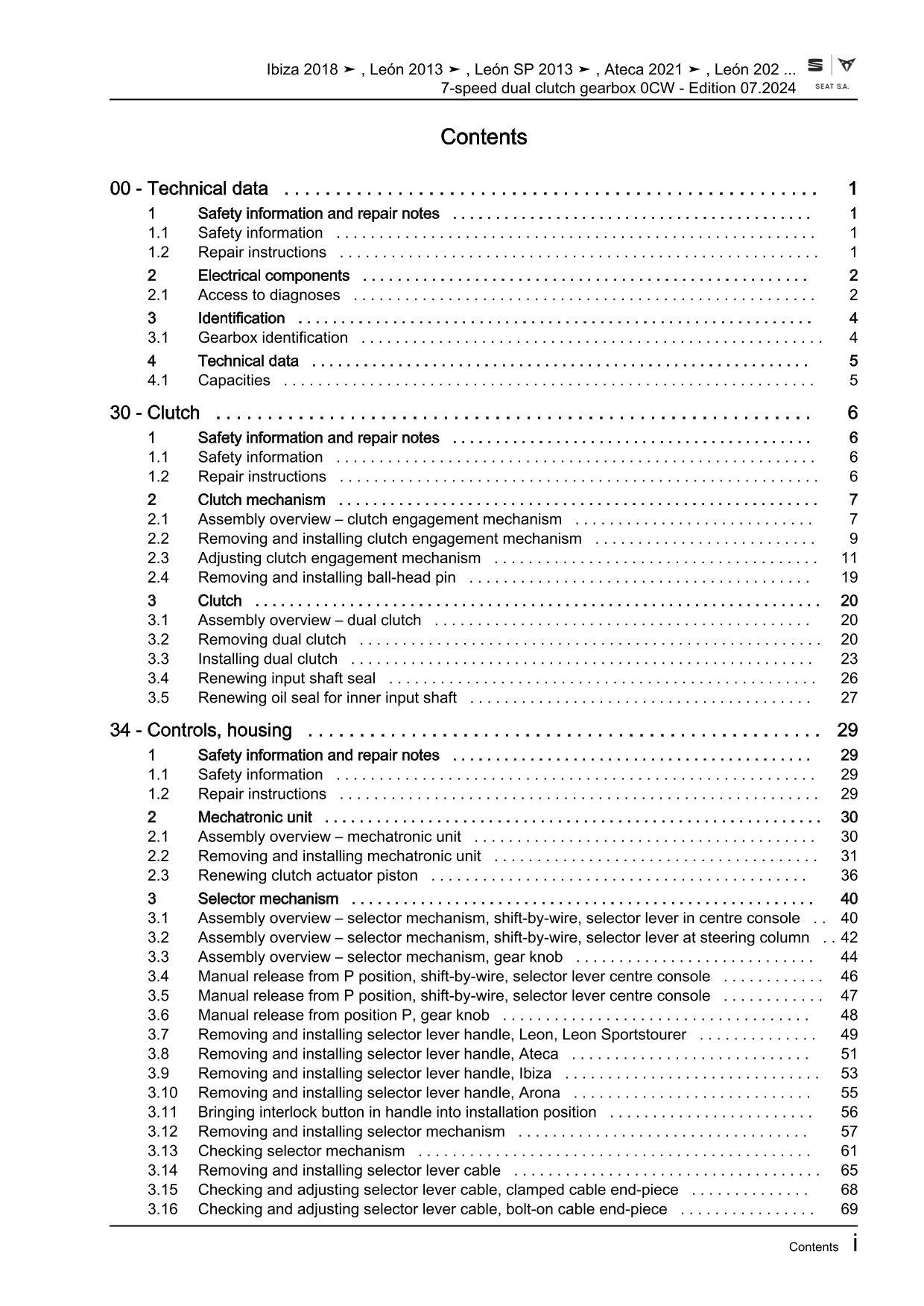 Seat Leon type 5F 2012-2020 7 speed dual clutch gearbox 0CW repair manual eBook