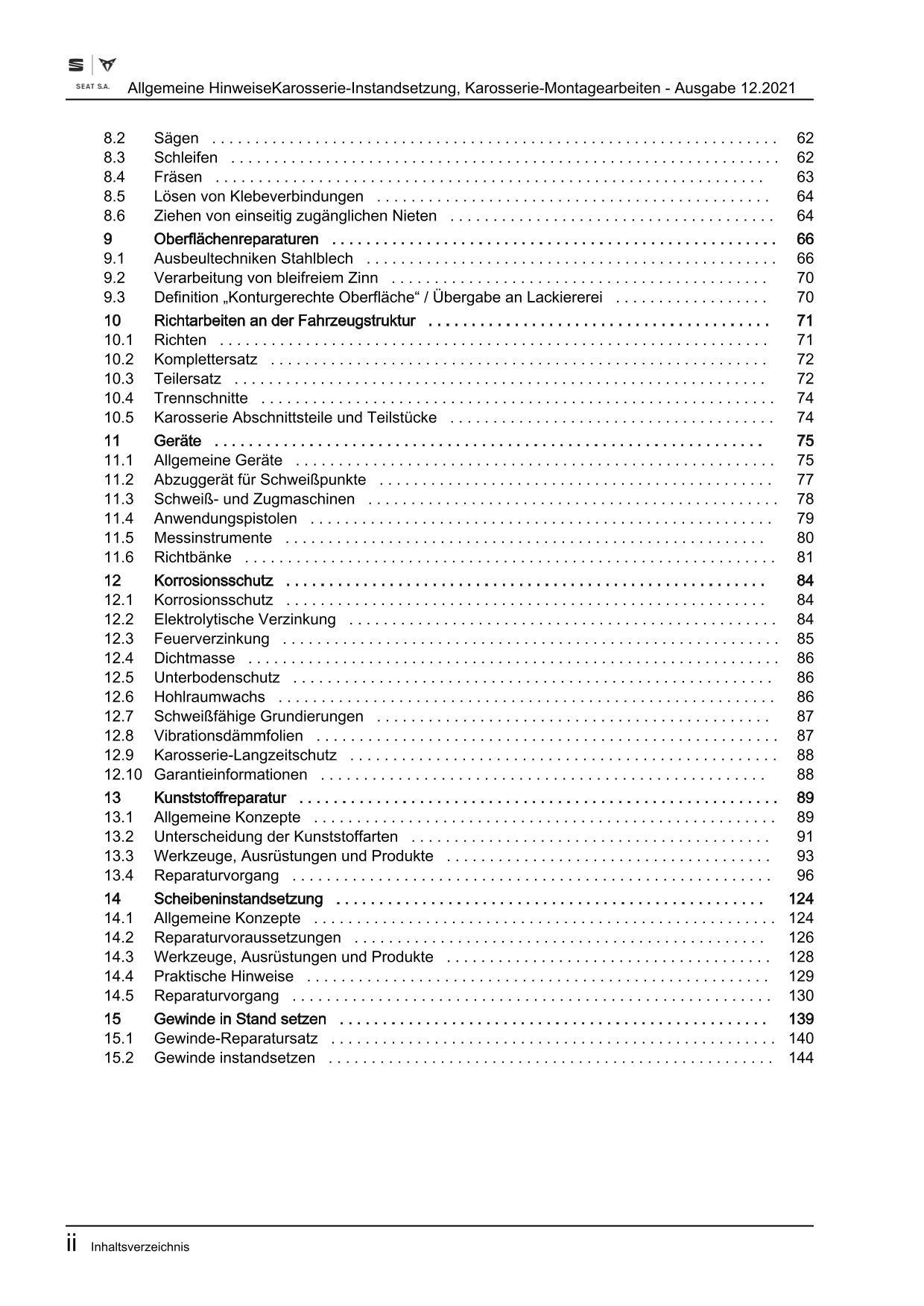 Seat Toledo 1M 1998-2004 Allgemeine Hinweise Karosserie Reparaturanleitung eBook