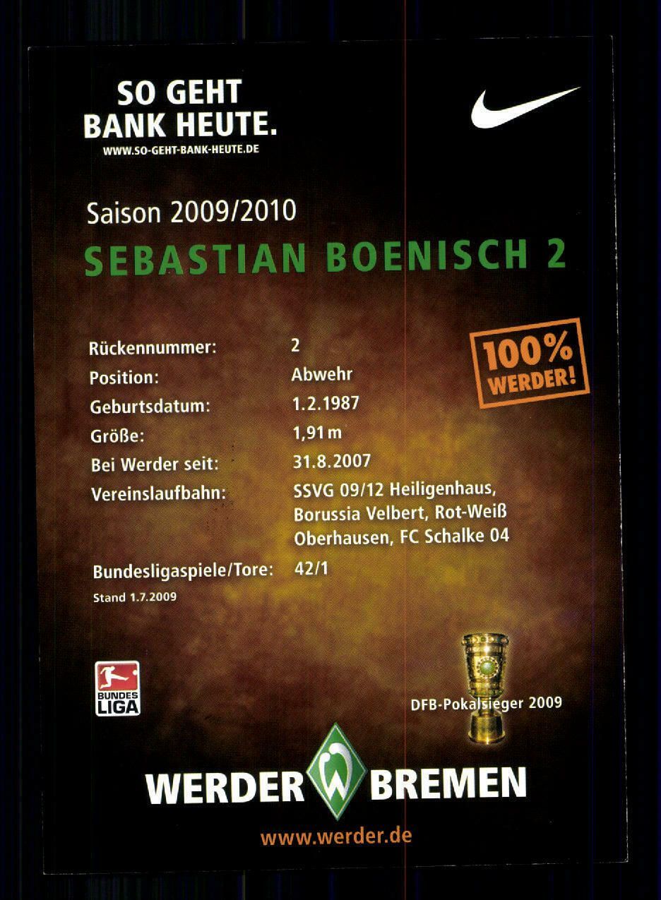 Sebastian Bönisch Autogrammkarte Werder Bremen 2009-10 Original Signiert