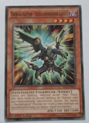 Überfallraptor - Verschwindender Lanius, SECE-DE011, 1. Auflage, Common, nearmint, Original Konami. Bitte auch in meine anderen Auktionen reinschauen, ist vielleicht das ein oder andere Interessante mit dabei und es können Versandkosten gespart werden. Versand: Artikel wird gut und sicher verpackt (