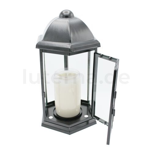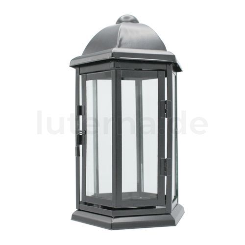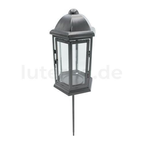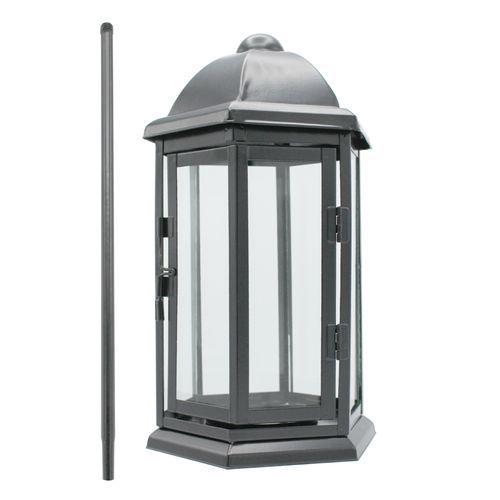 Sechseckige schwarze Stahlblechlaterne mit Erdspieß