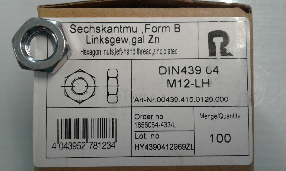 Sechskantmutter M12 Links, DIN 439-04B Links-Gewinde 5 Stk