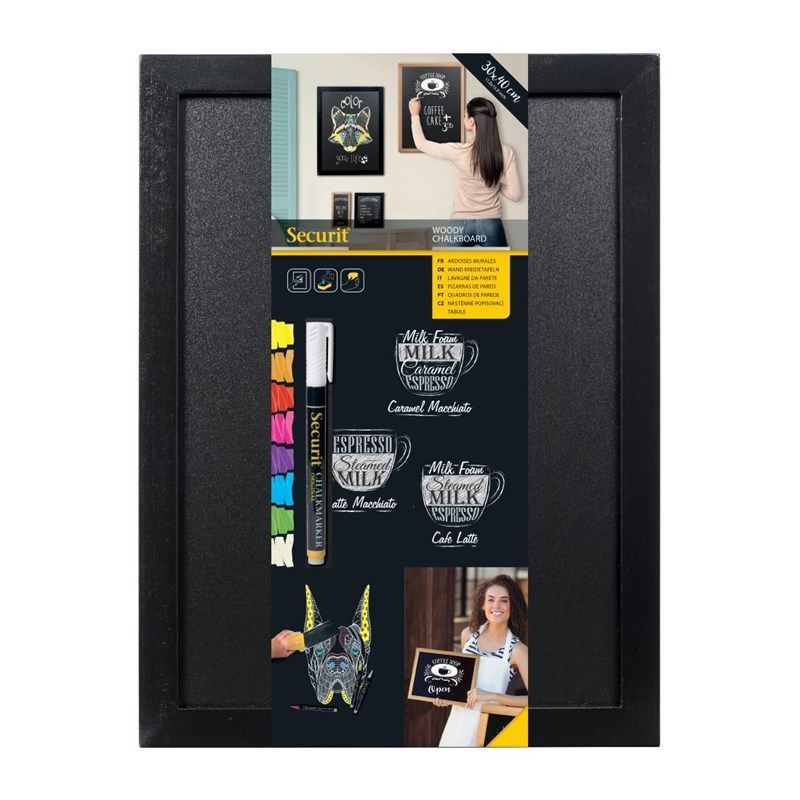 Securit Woody Kreidetafel 30x40, inklusive weißem Kreidemarker und Montageset