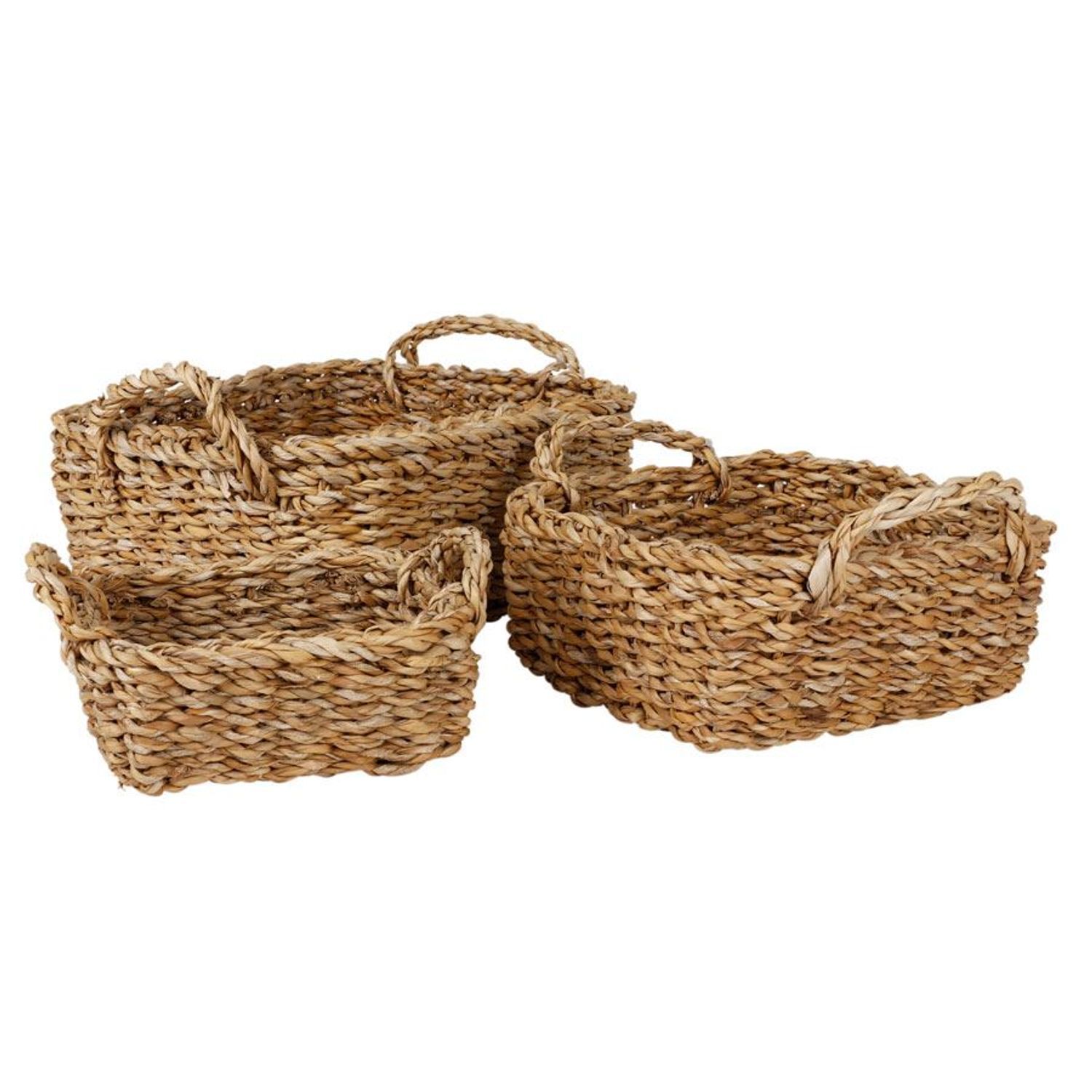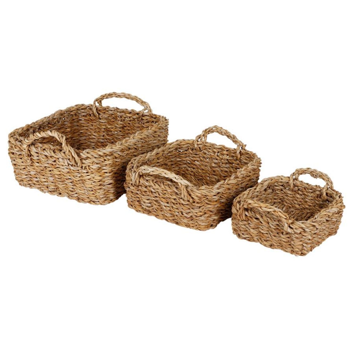 Seegras-Körbe Eckig 3er-Set geflochten mit Tragegriff Aufbewahrungskorb Korb