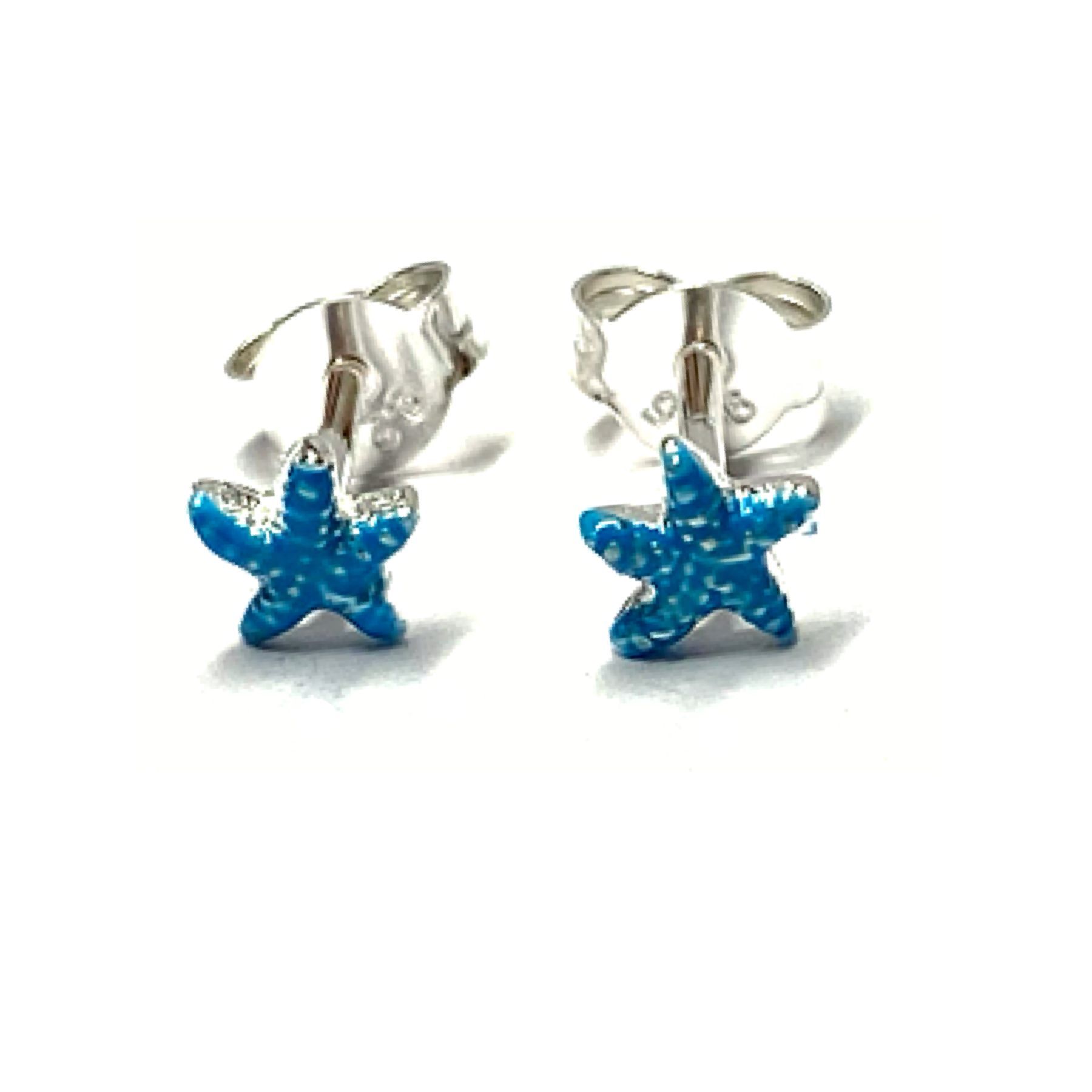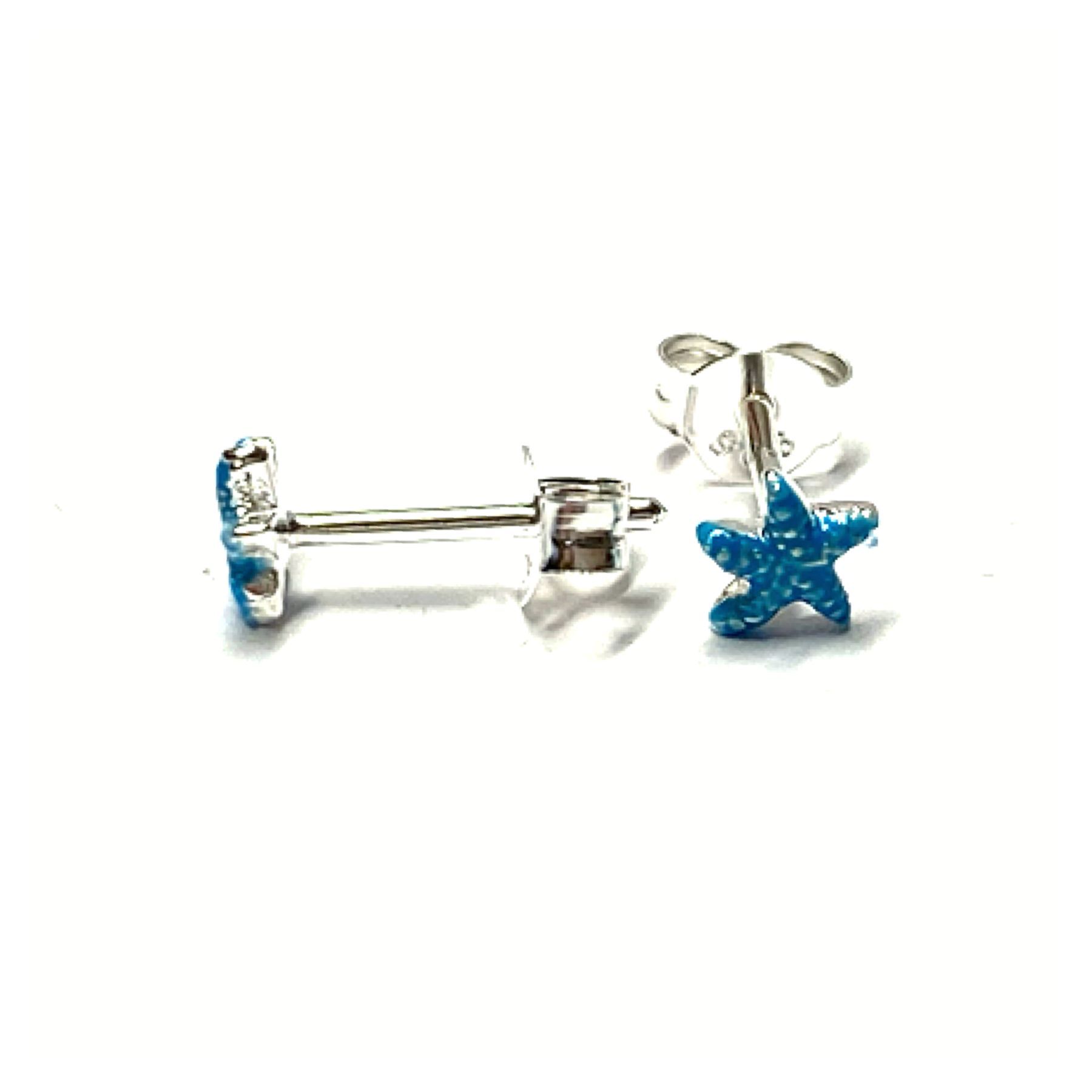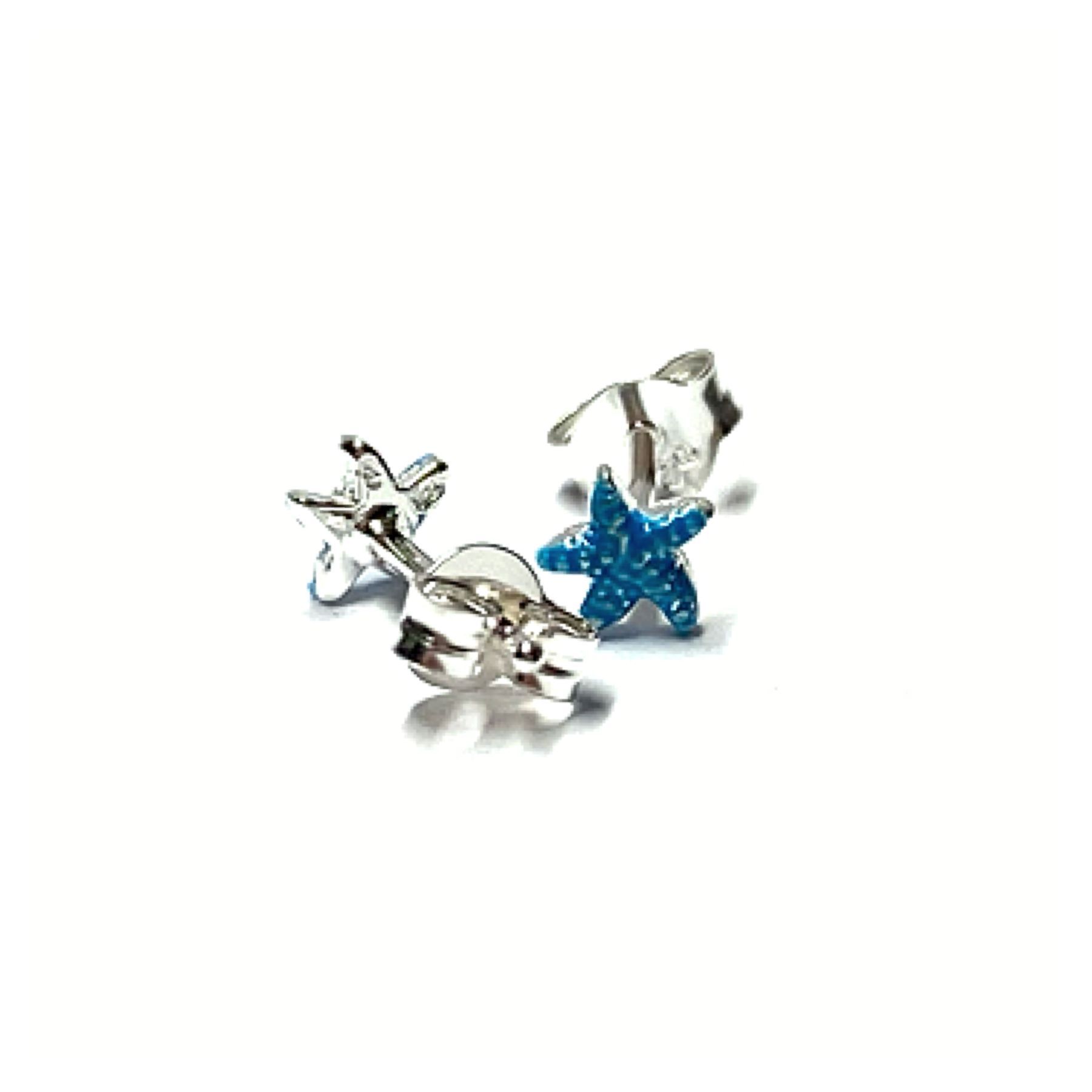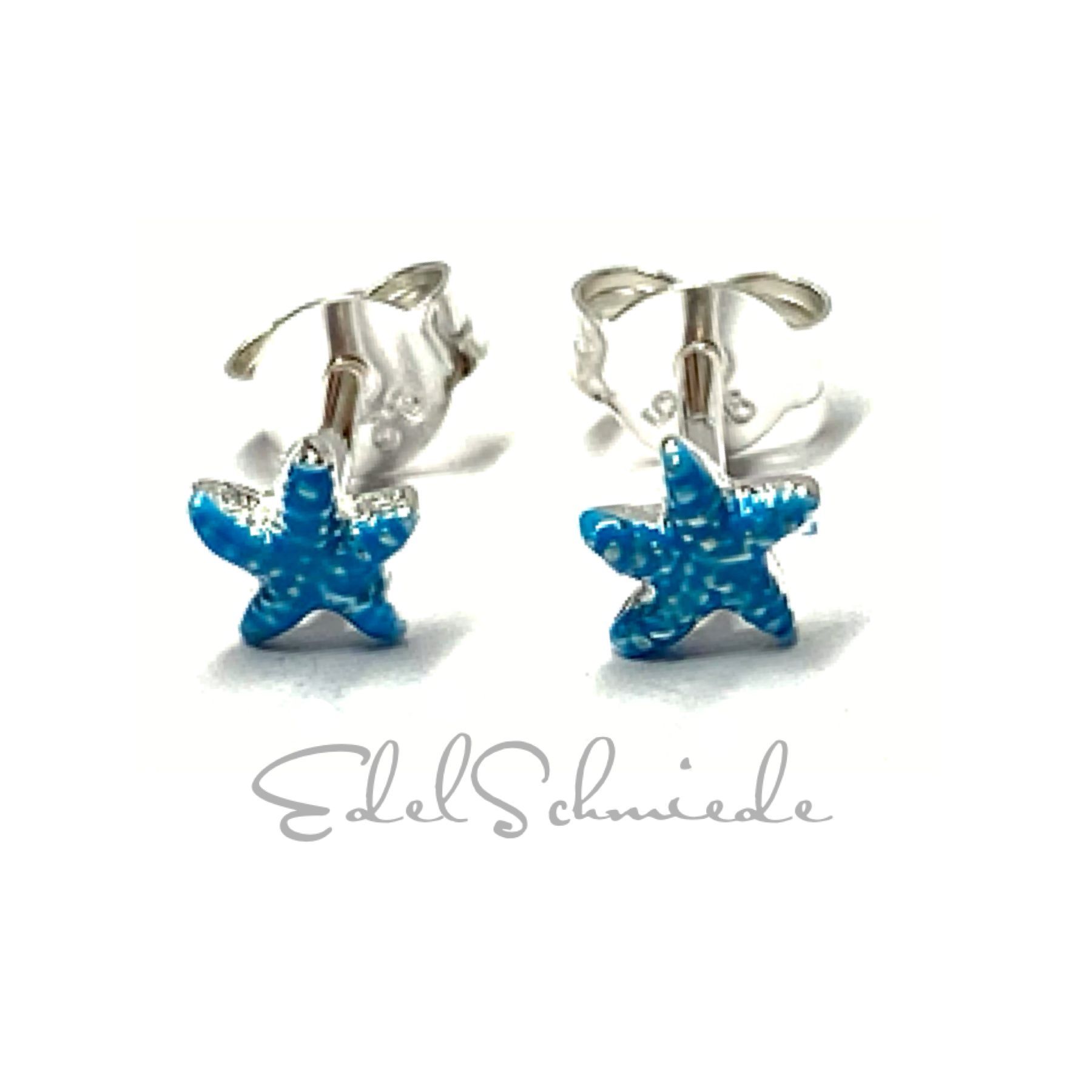 Seestern Ohrstecker mini 925 Silber - gemustert Türkis farbig Ohrring maritim