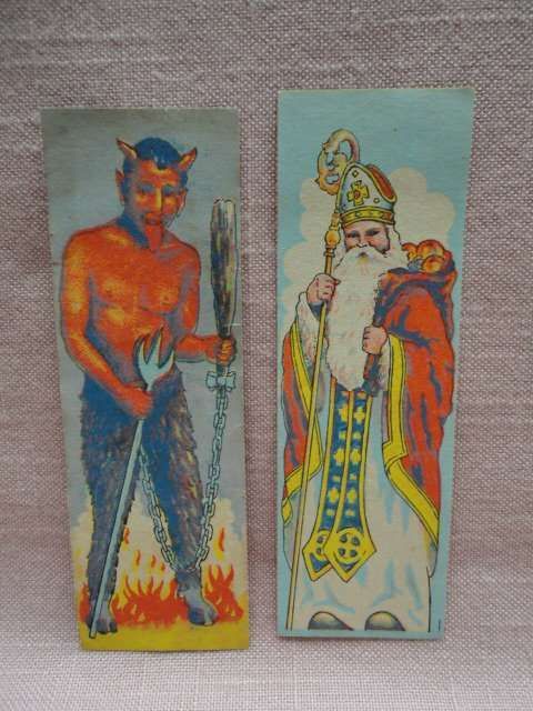 sehr alte Lebkuchen-Oblaten Österreich Krampus & Nikolaus ca 13,5 x 4,5 cm