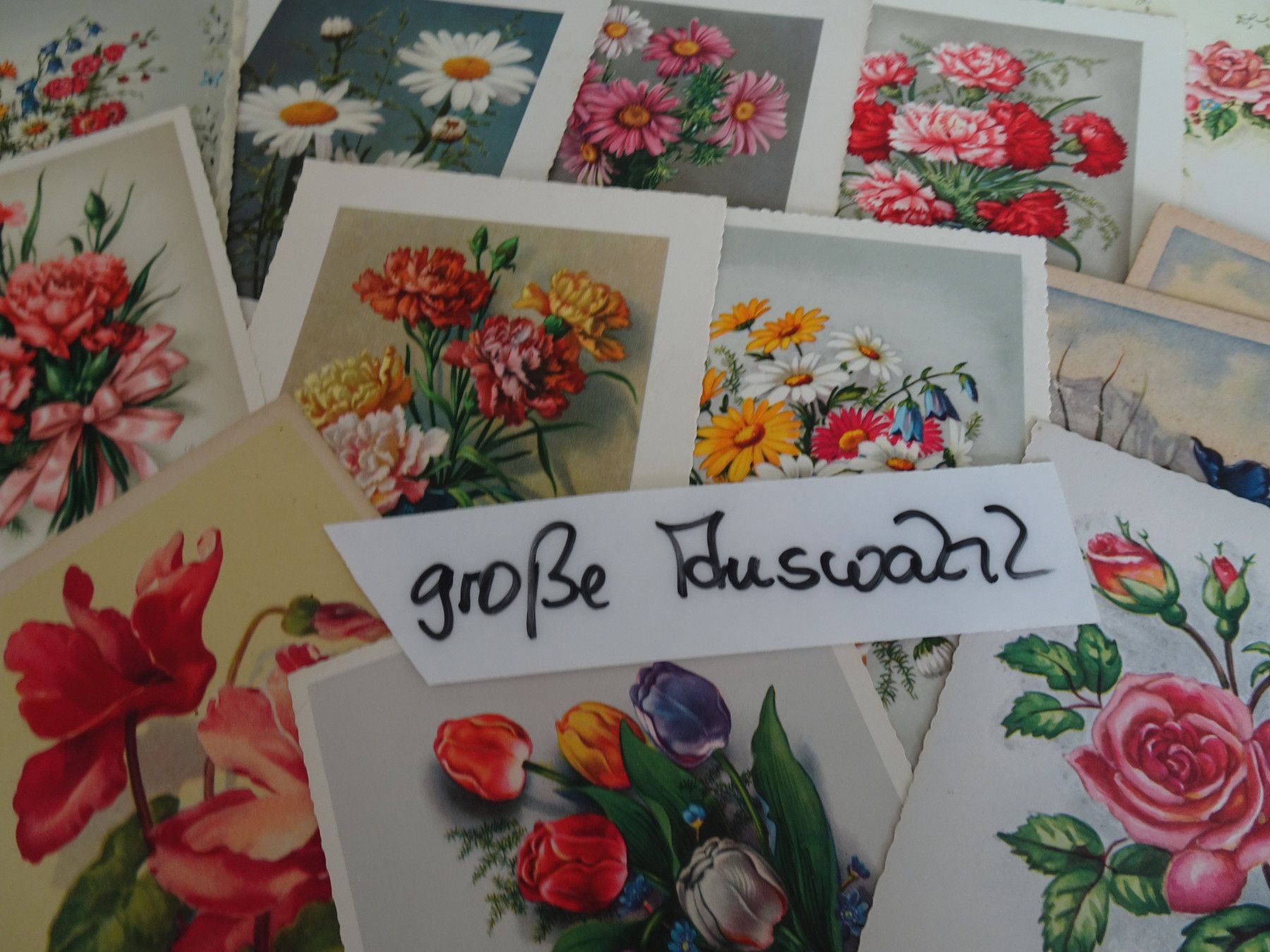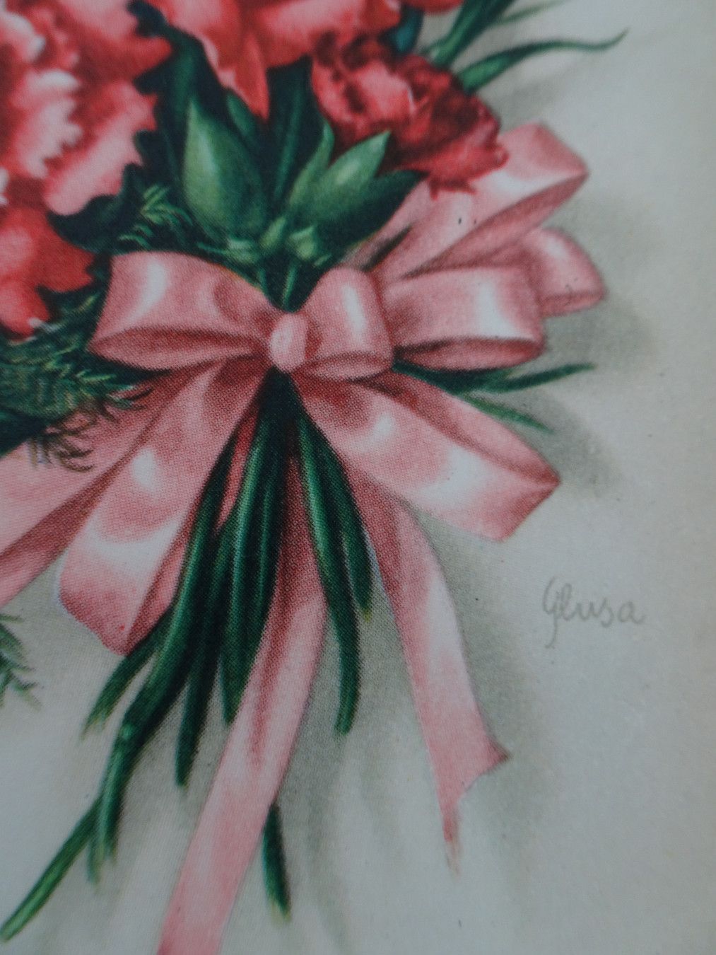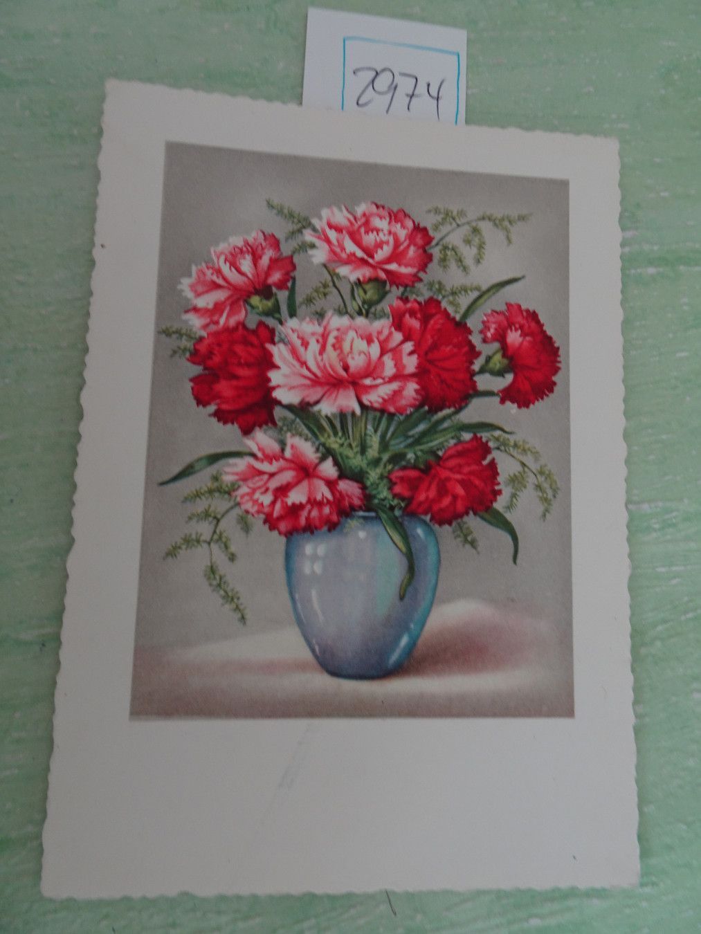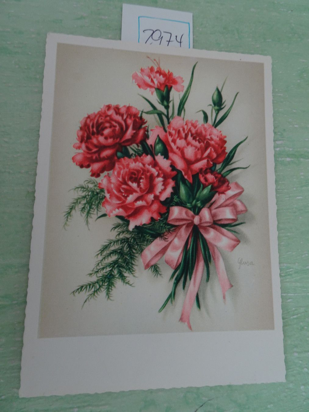 Nelken , Glusa Sort W, Rosen, nr 882, gepr Schrift, Tulpen, sign HS Sort W, Ecke mit Knick, Alpenveilchen, Nelken in Vase, Sort W