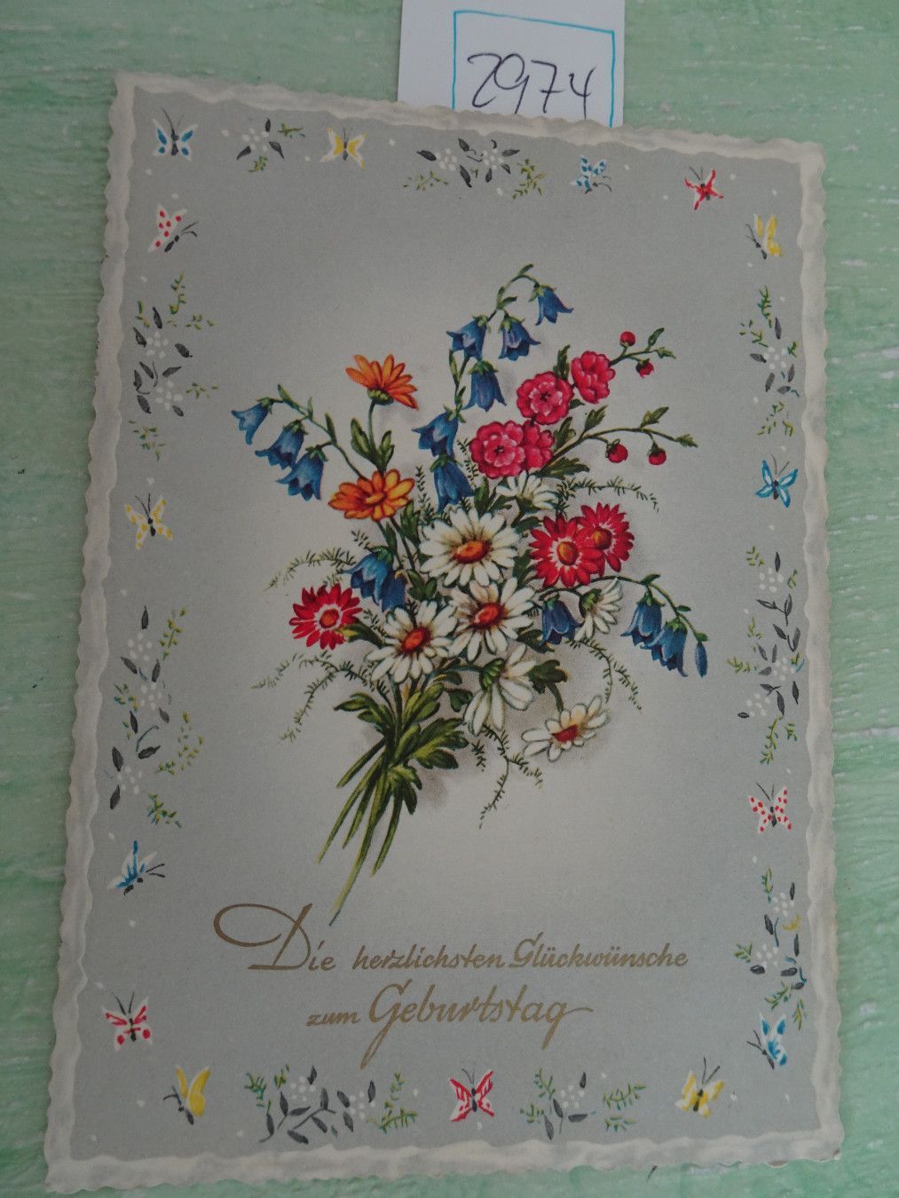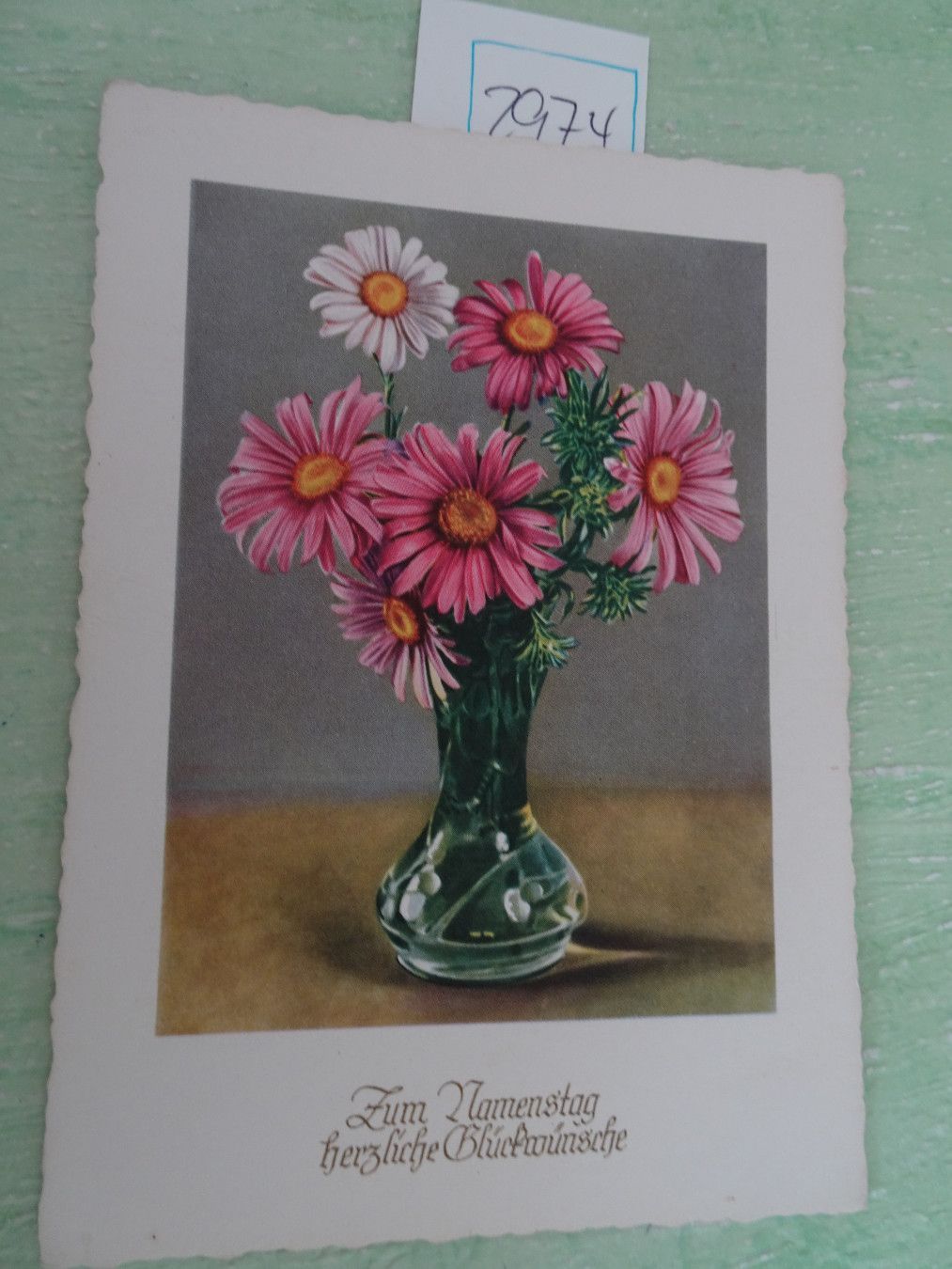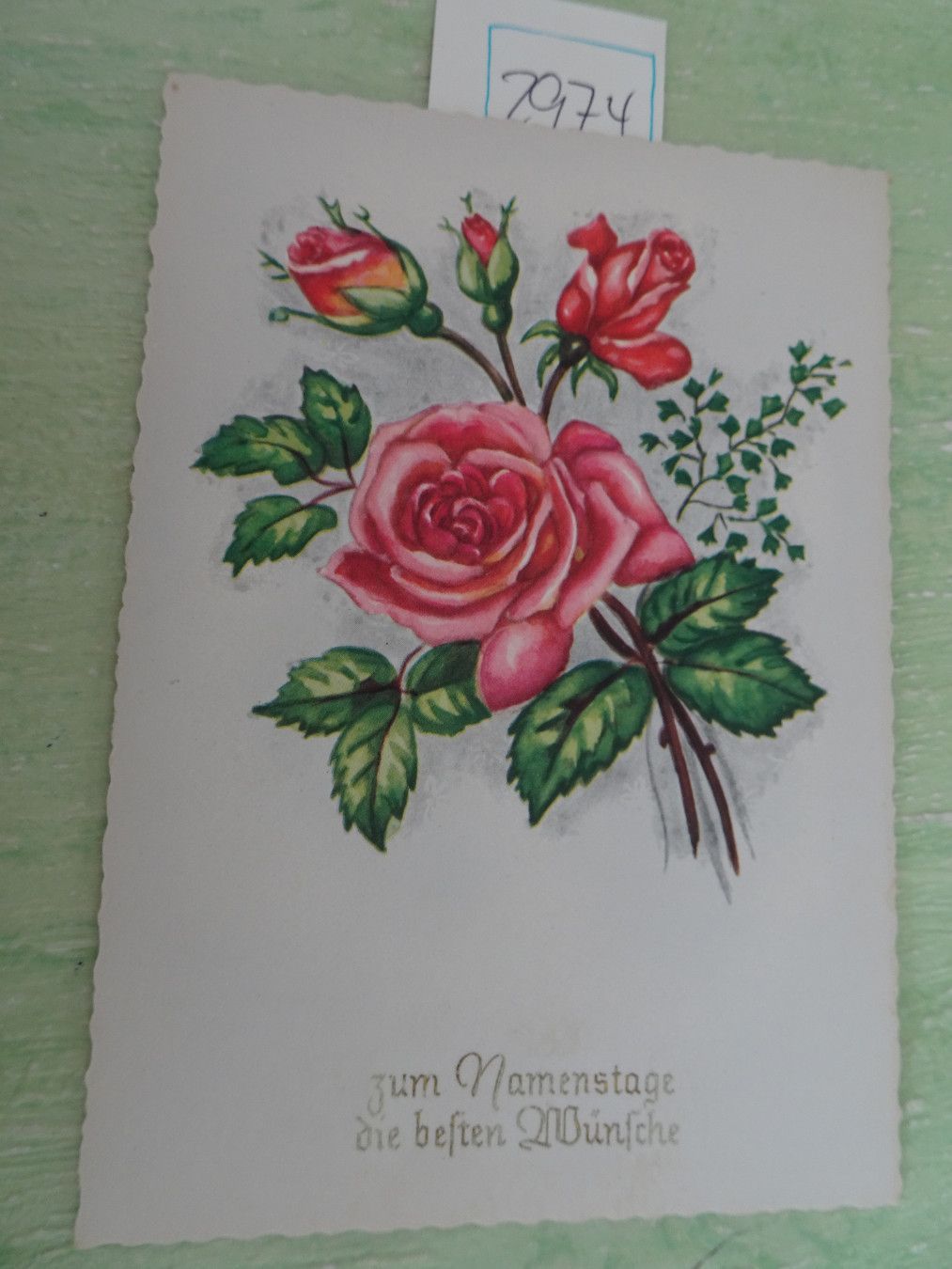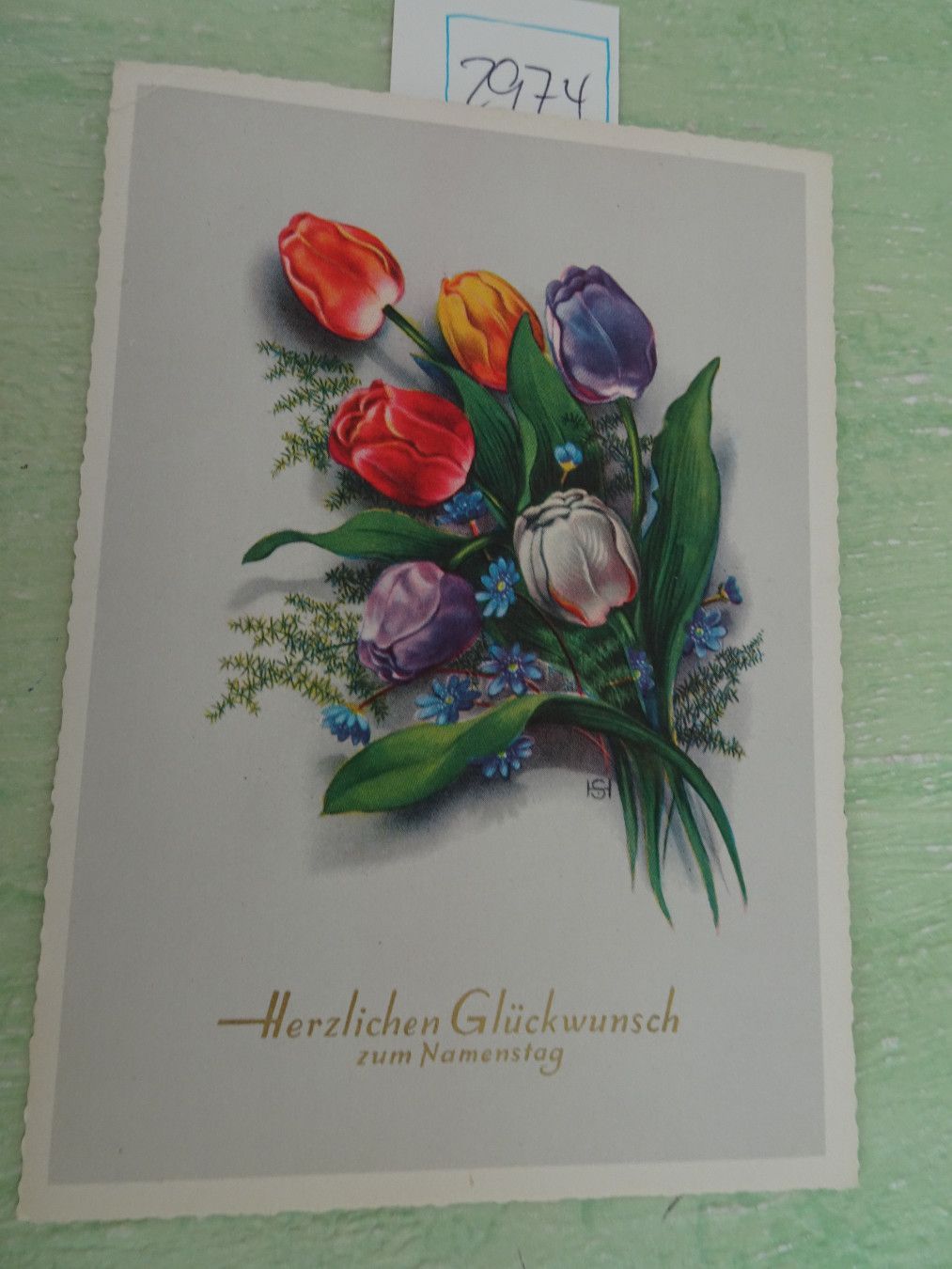 sehr alte Postkarte AK Geburtstag Namenstag Neutral Blumen wie gemalt