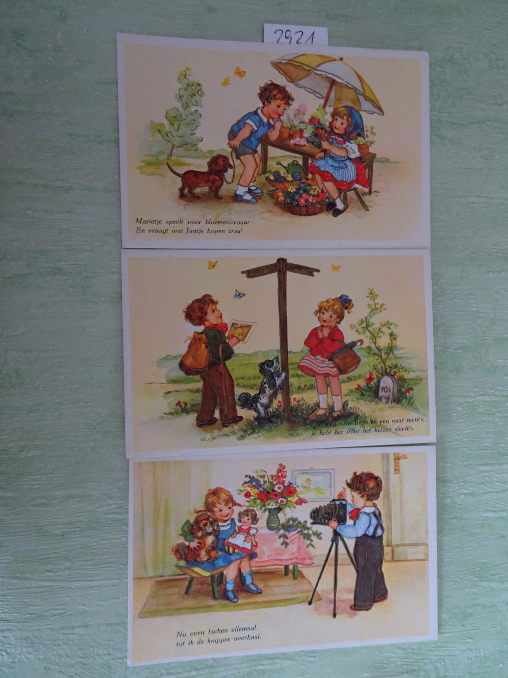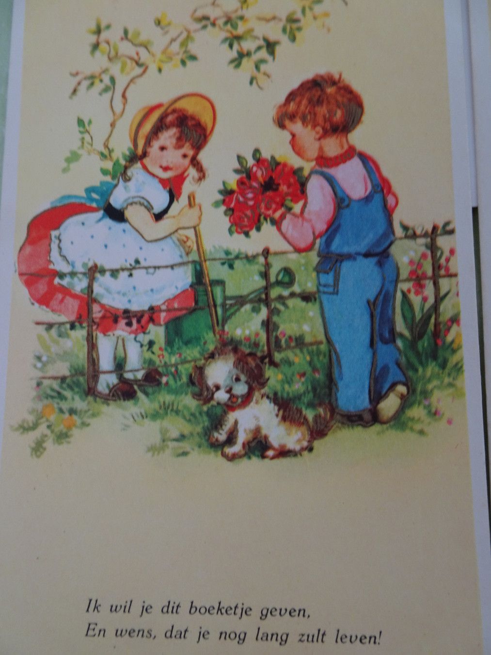 sehr alte Postkarten AK KF Kinder wie gemalt Verse Sprüche Hartelyk Gefeliciteerd