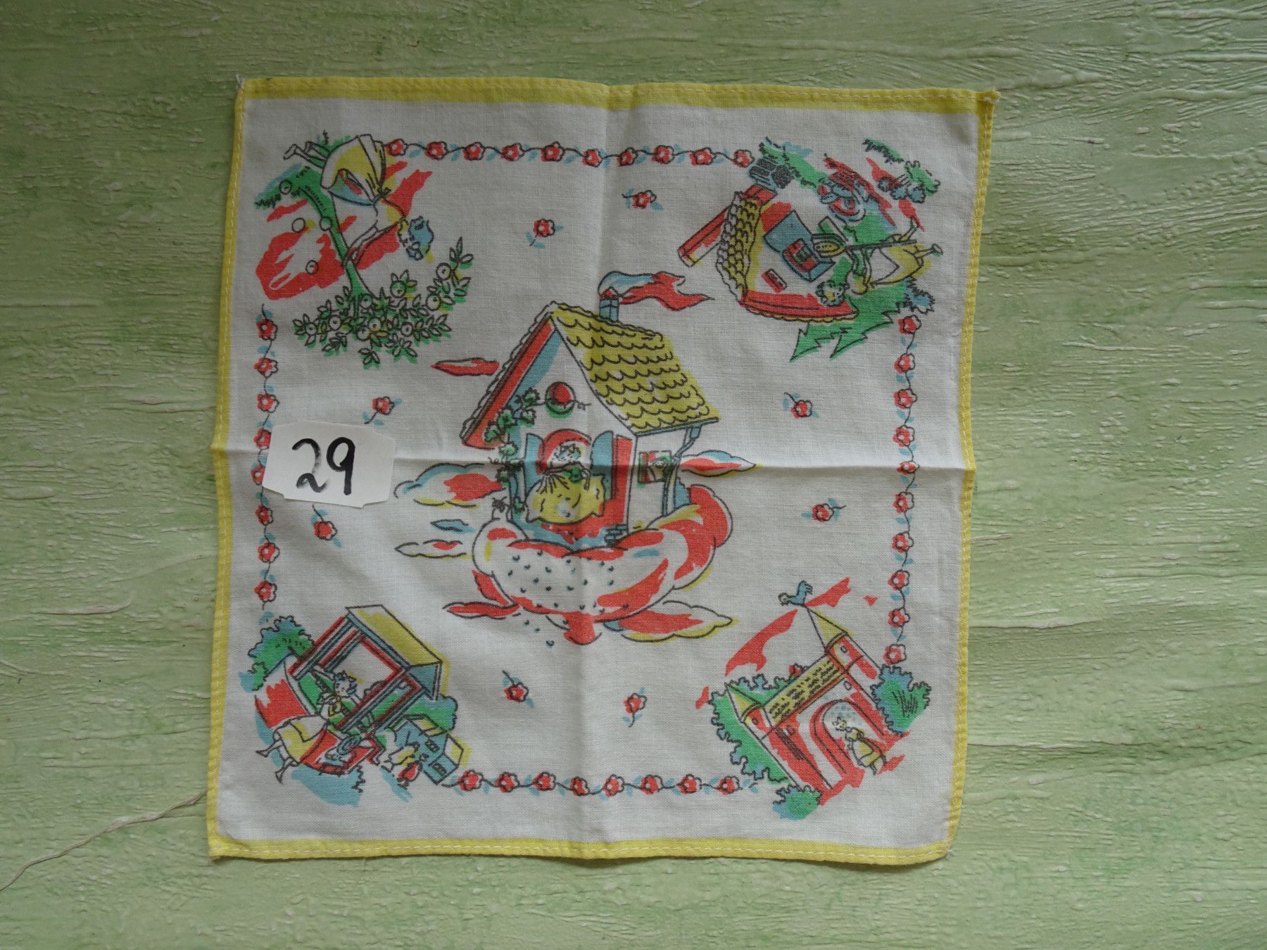 * * * Sammeln & Seltenes - Reklame & Werbung * * * * ... aus Freude an schönen Dingen ..... alle ca 20 x 20 cm (+-) gebrauchte gewaschene alte Kinder-Stoff-Taschentücher müssen nochmal aufgebügelt werden Zustand ist den Fotos zu entnehmen !!! ... bitte Fotos anschauen ... !!! Bestandteil der