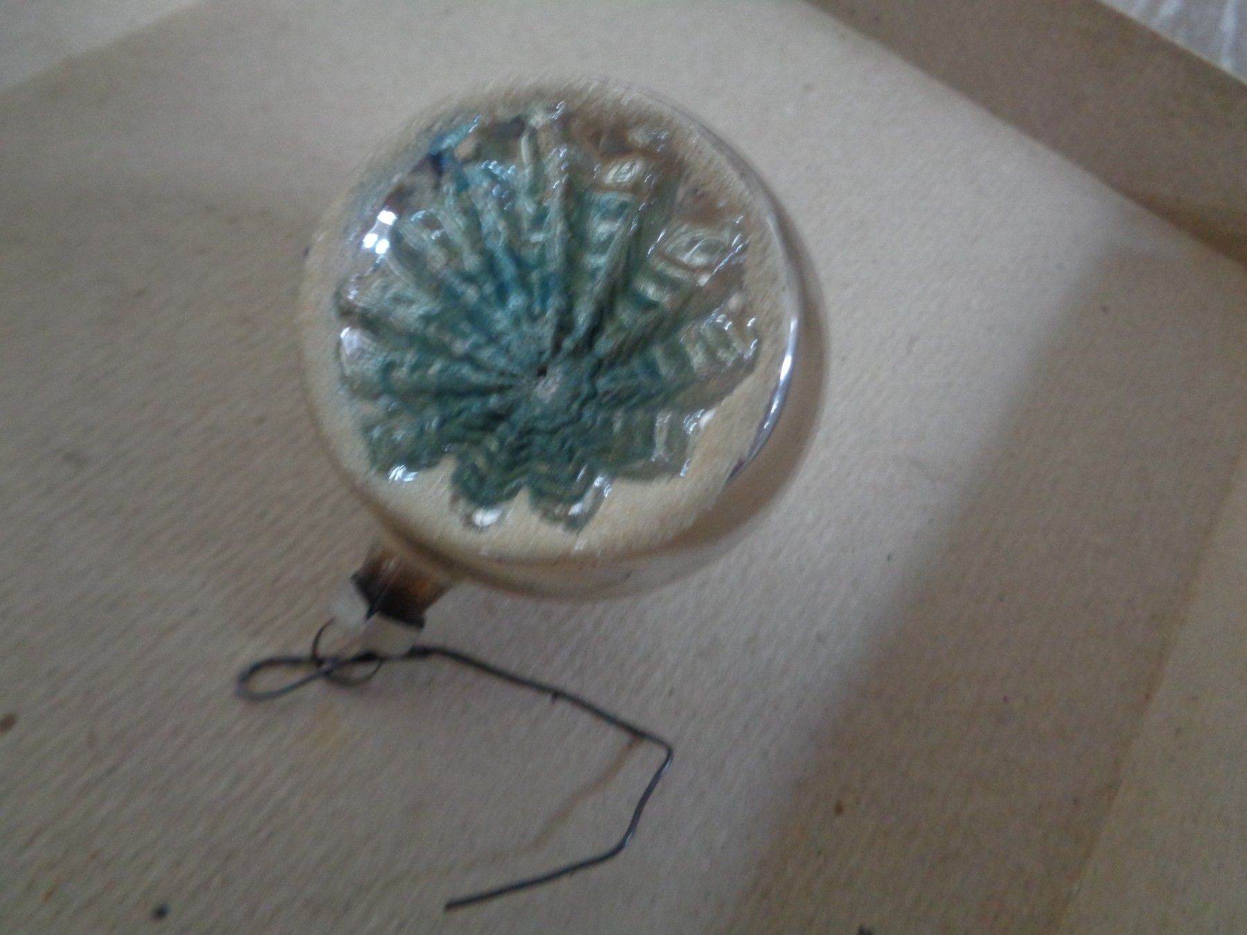 sehr alter Christbaumschmuck / Christbaumkugeln, Reflexkugel -türkis 5cm