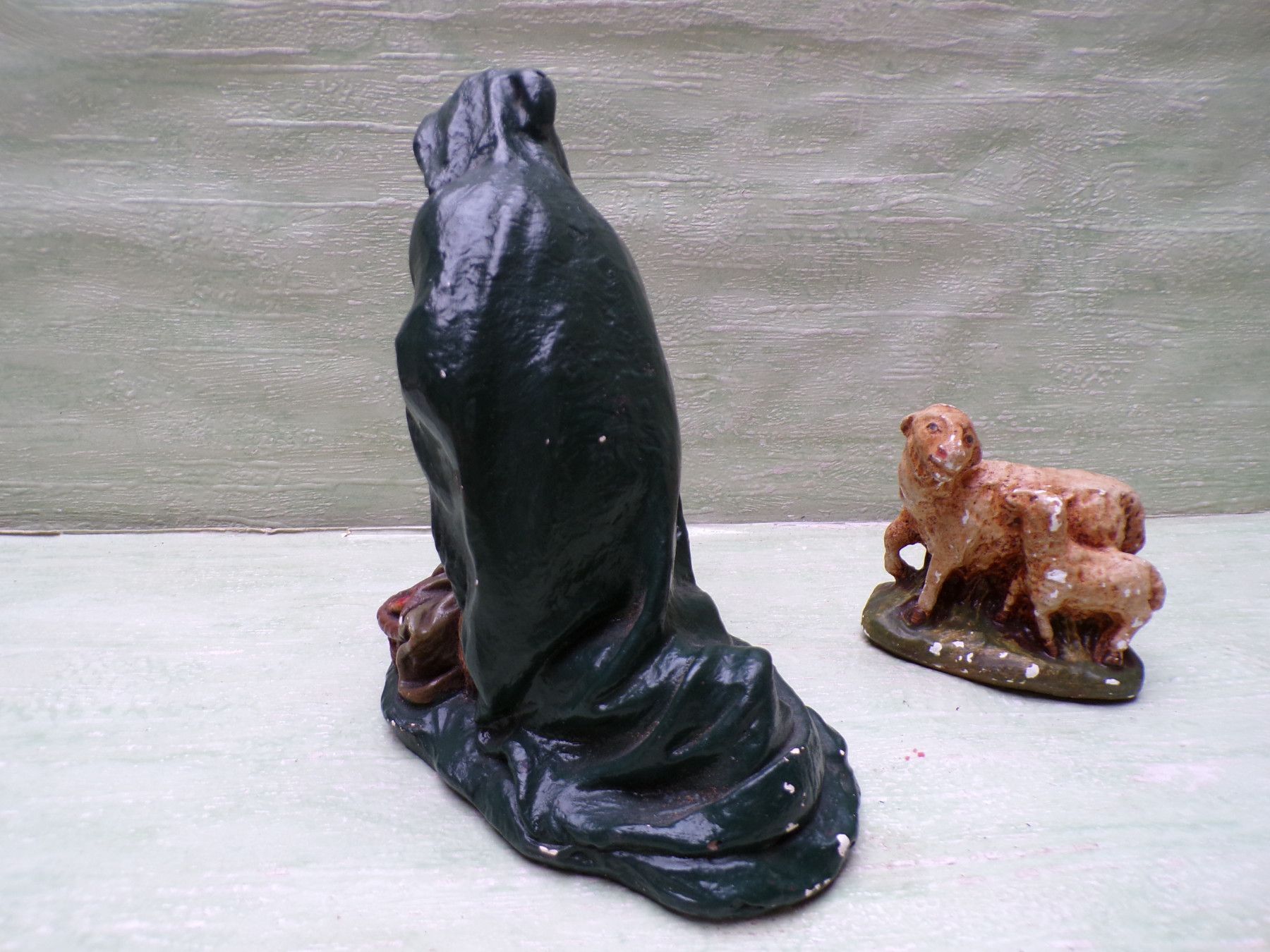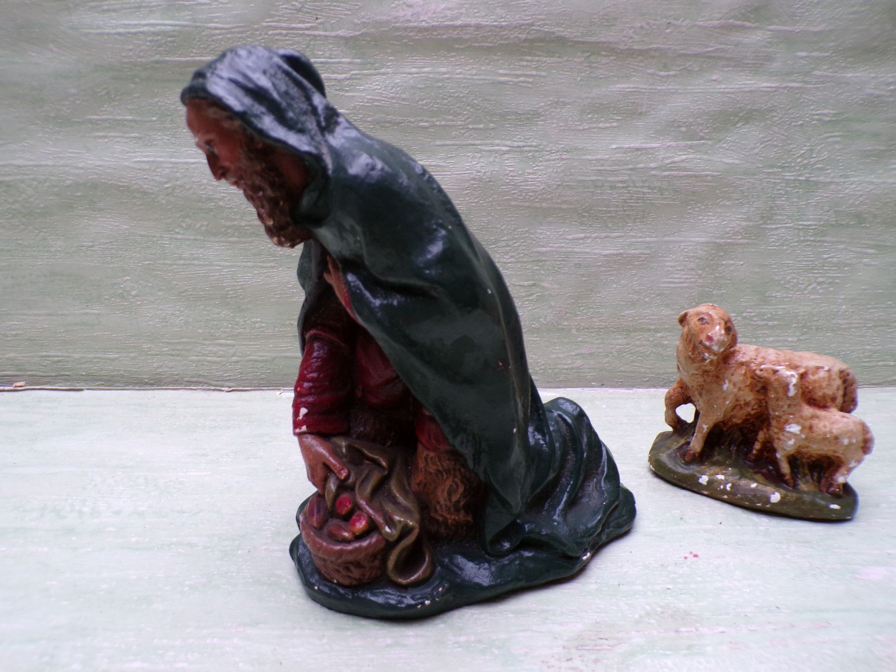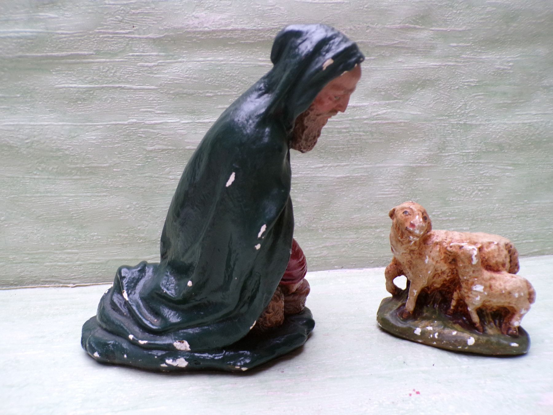 sehr alter Schäfer Hirte 14cm Krippenfigur 2 Schafe 8cm