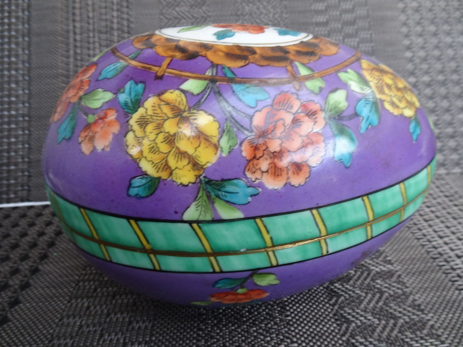 sehr altes Porzellanei Konfektschale Bonboniere GED ? Kleeblatt Nelken Lila