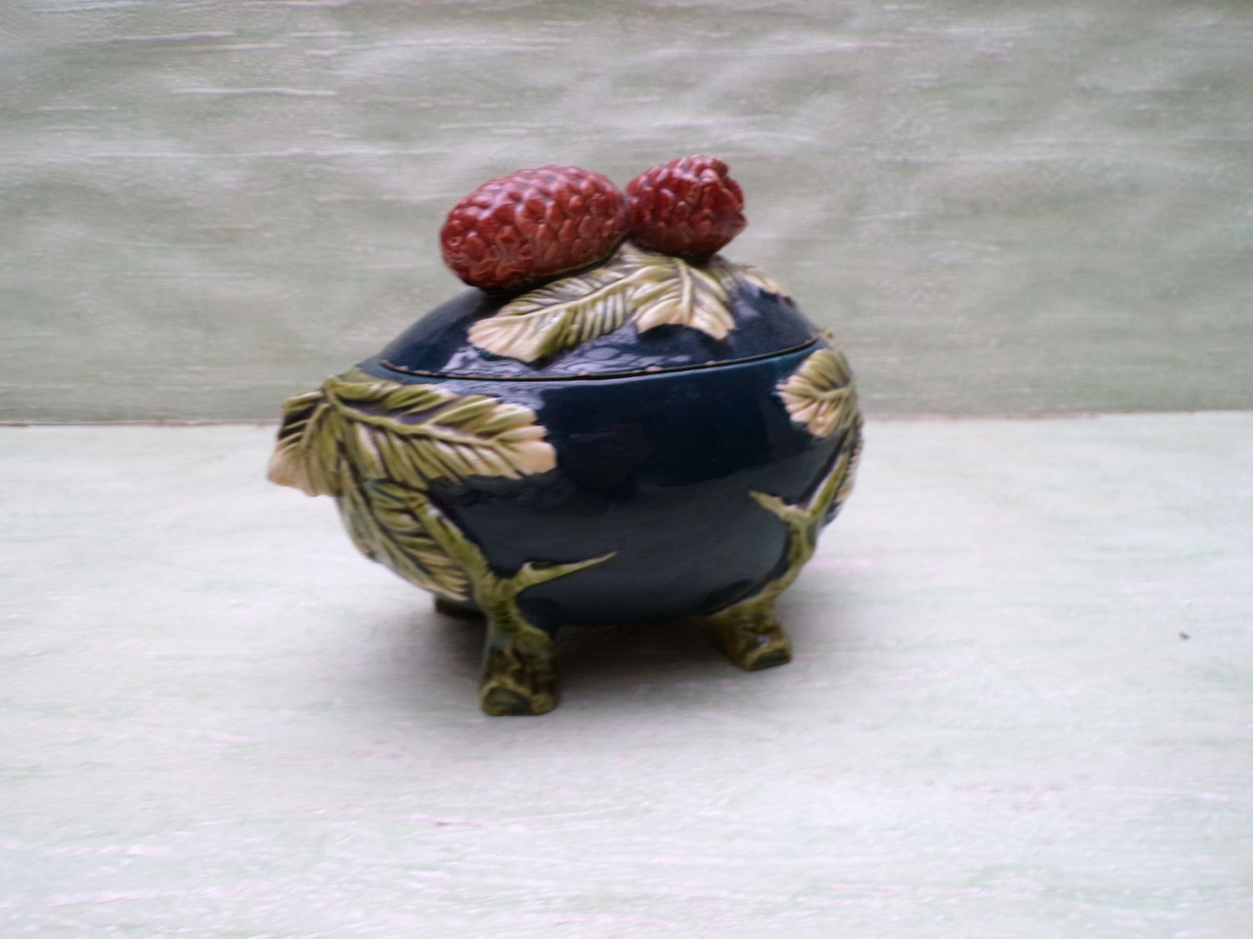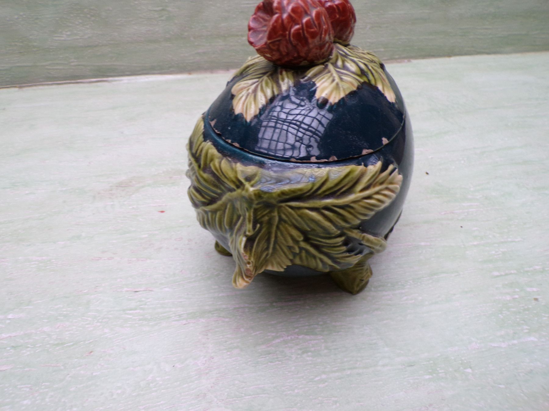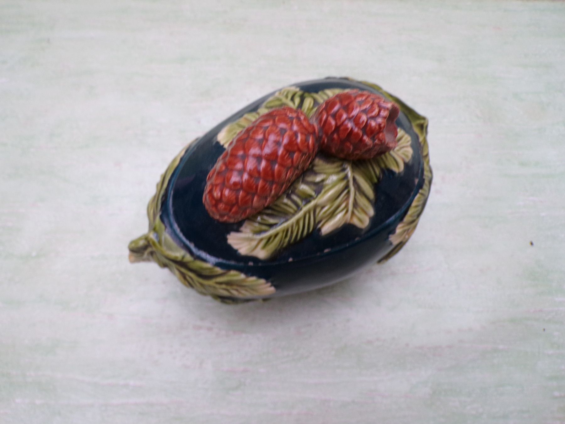 sehr altes Porzellanei Osterei Deckeldose Füßchen Tannezapfgen 4stellige Nr RAR