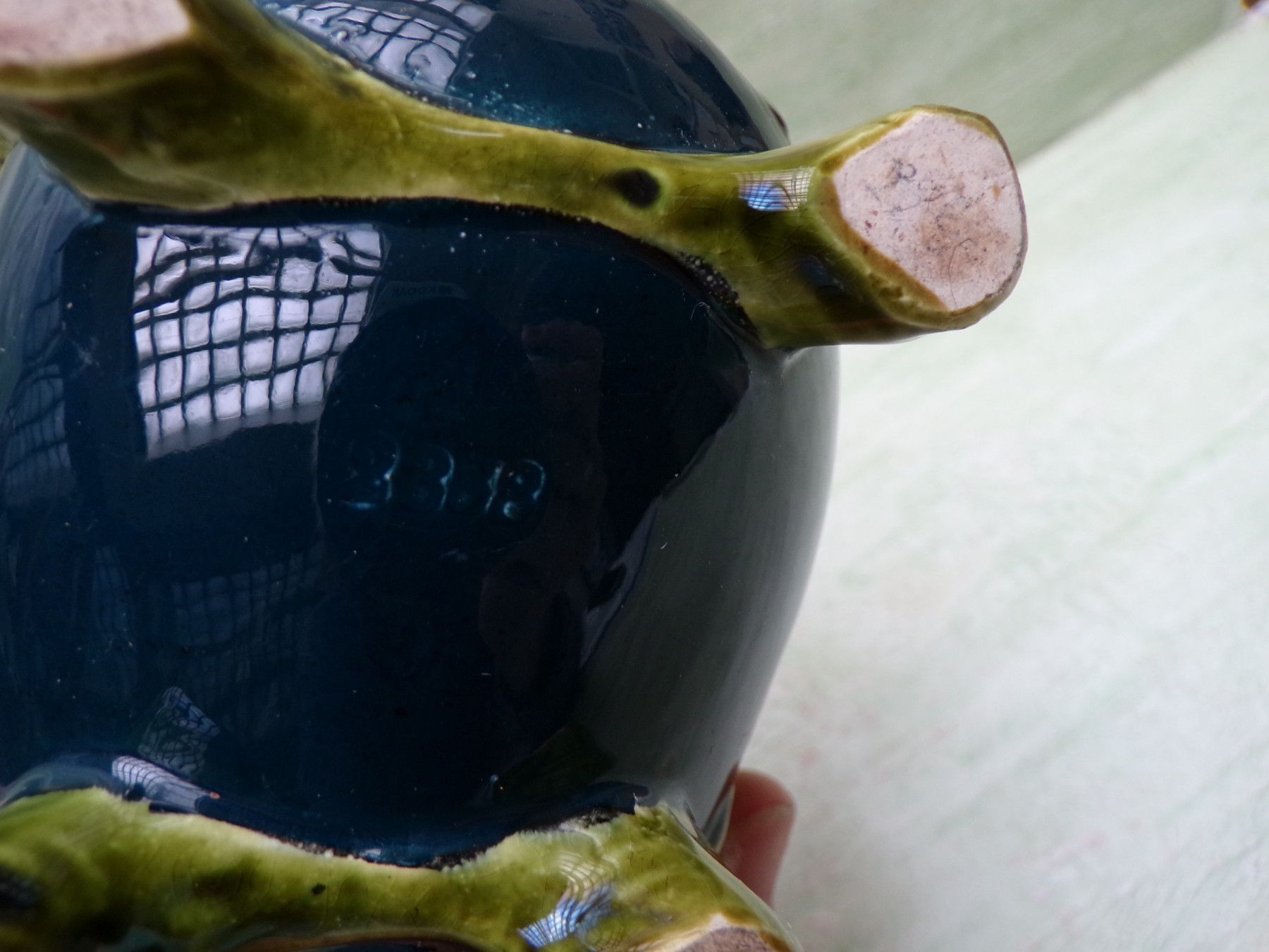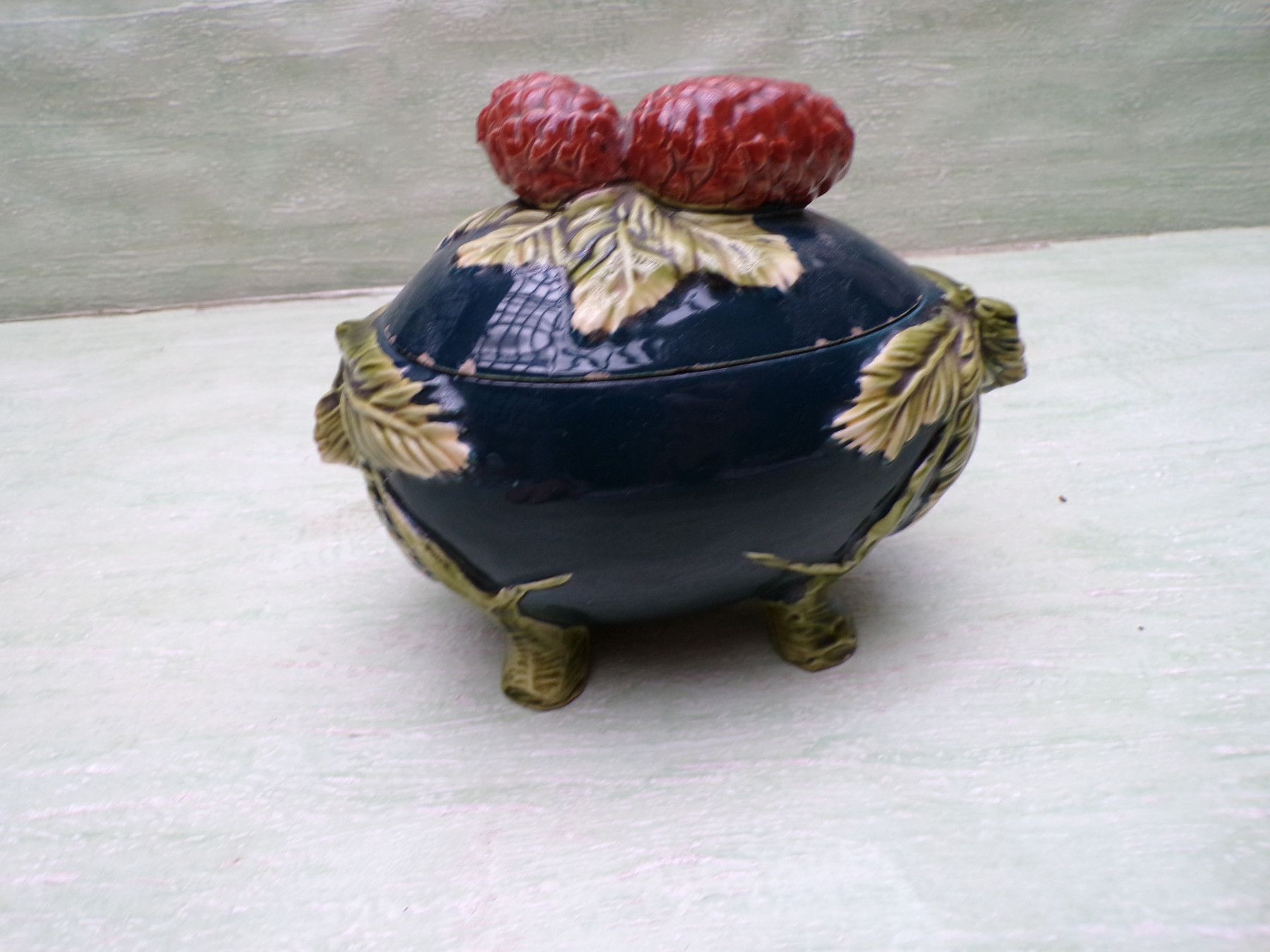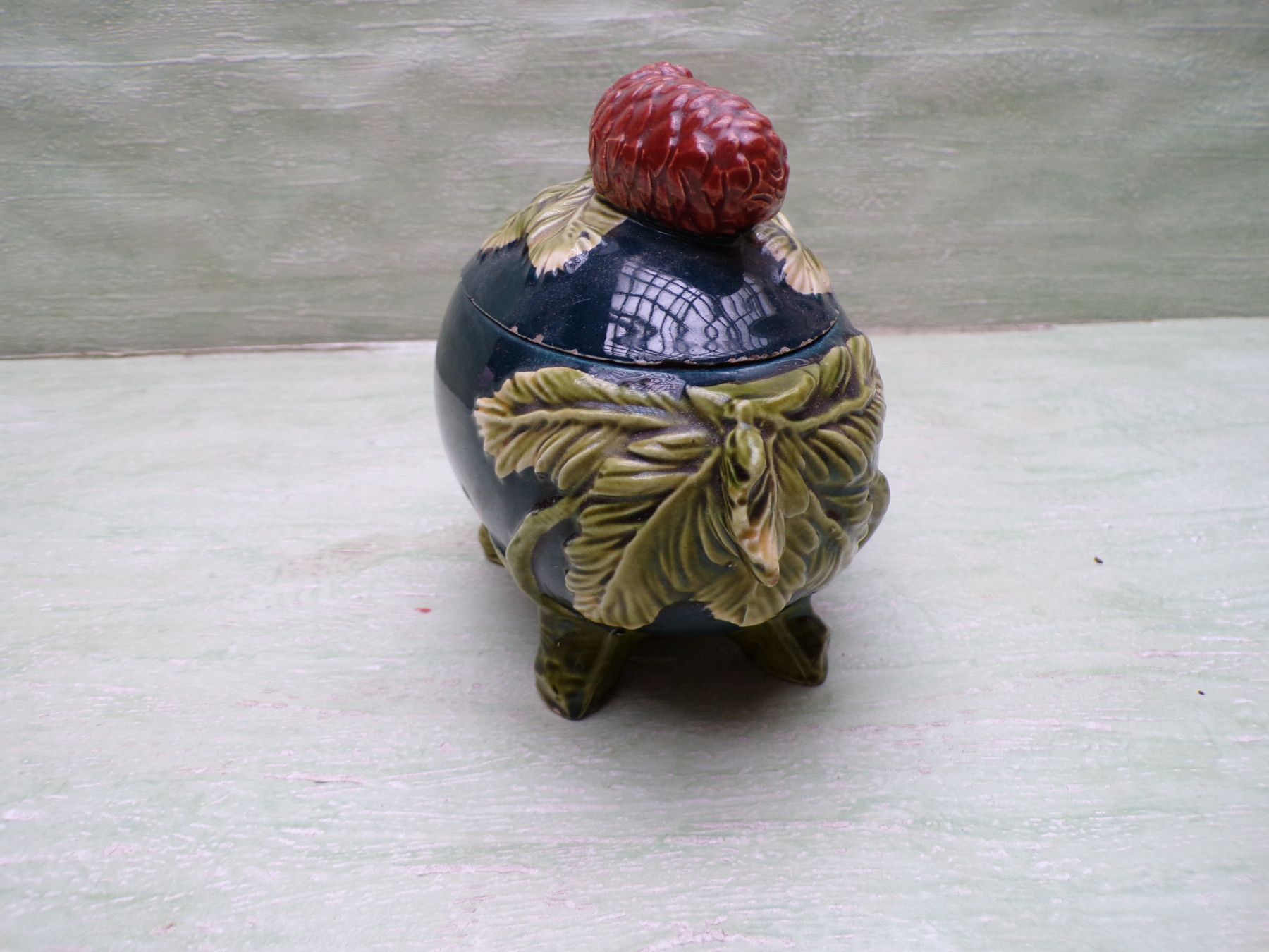 sehr altes Porzellanei Osterei Deckeldose Füßchen Tannezapfgen 4stellige Nr RAR