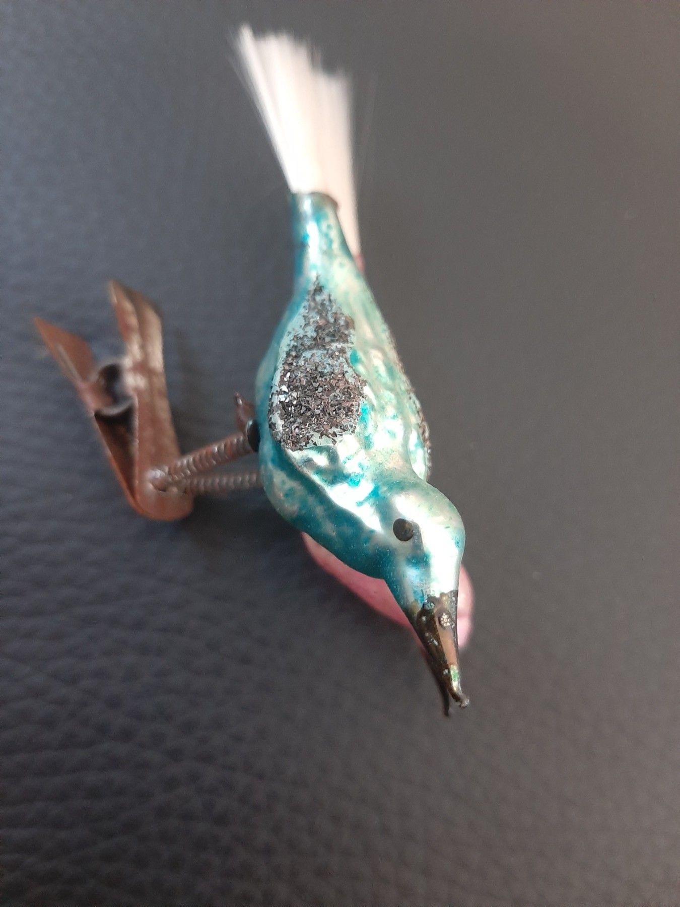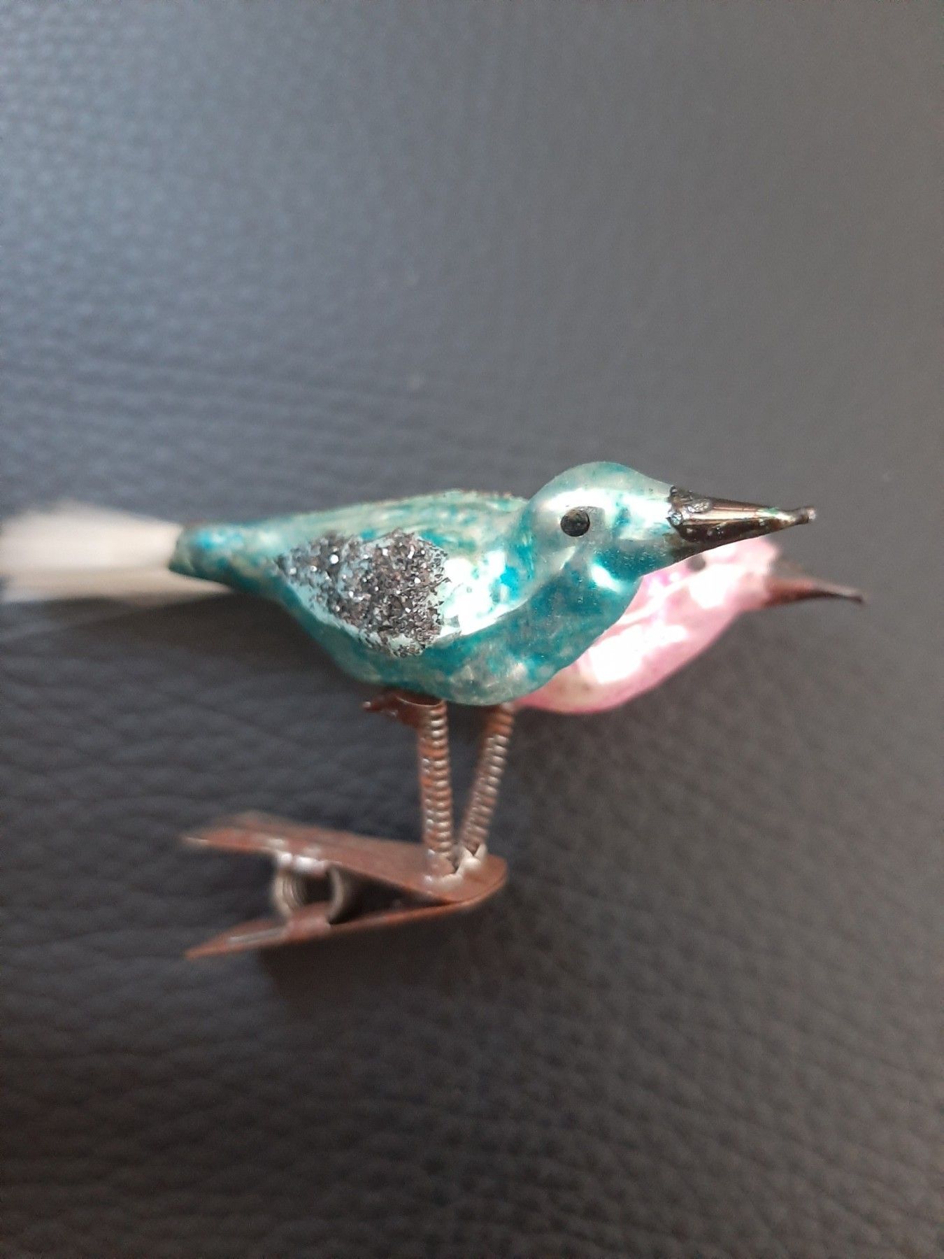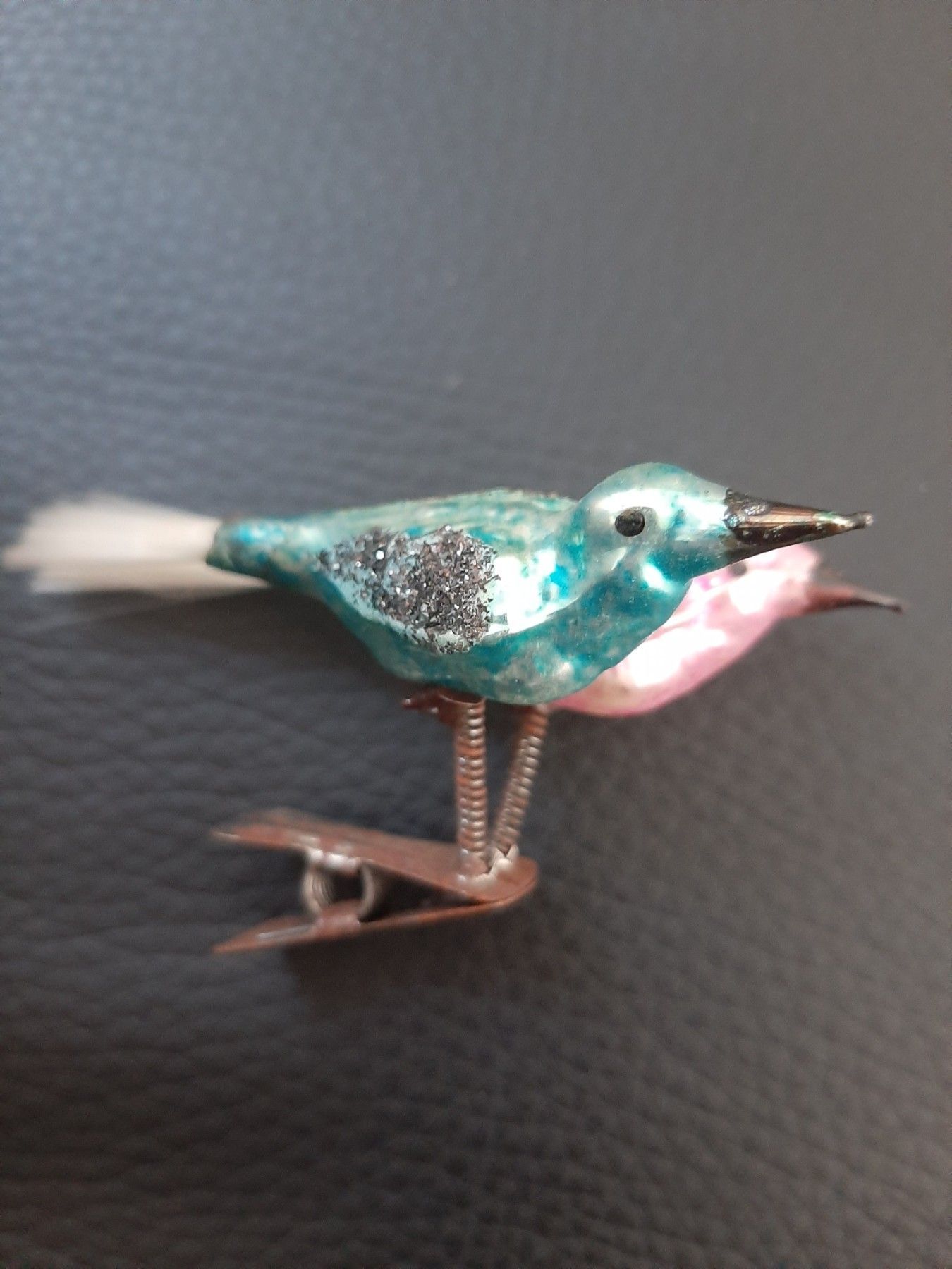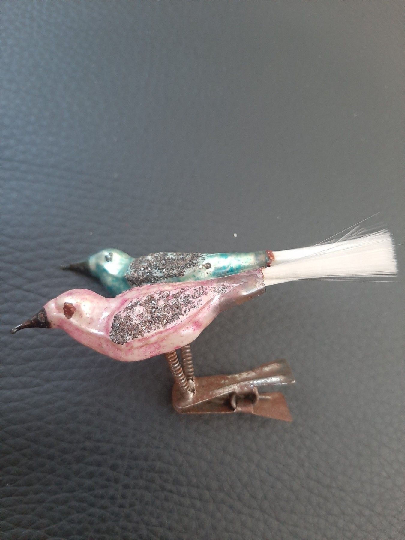 sehr altte Vögel- Christbaumschmuck aus Omas Zeiten-Baumschmuck 2 Vögel auf einem Cli