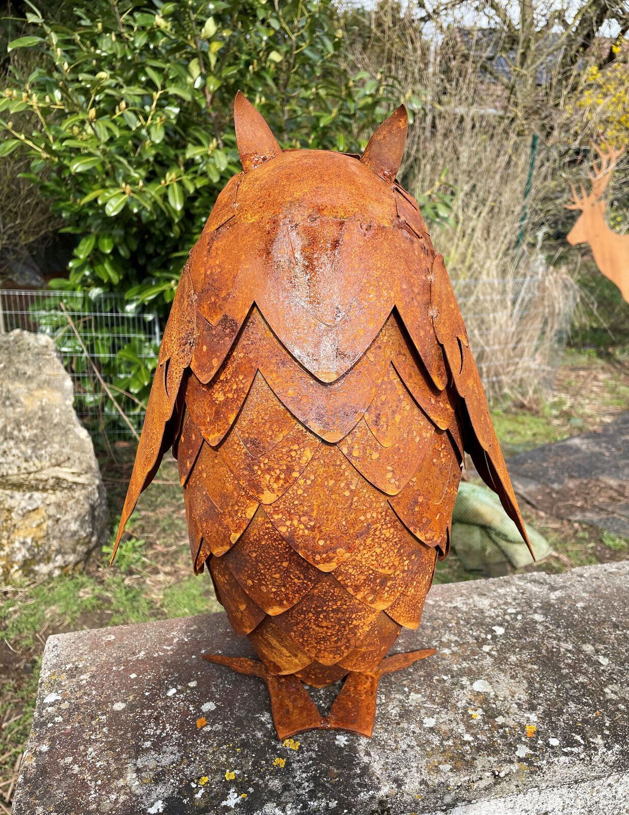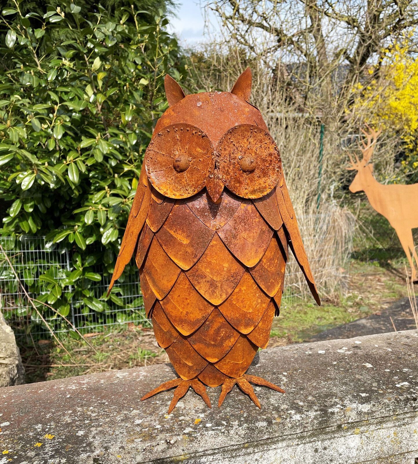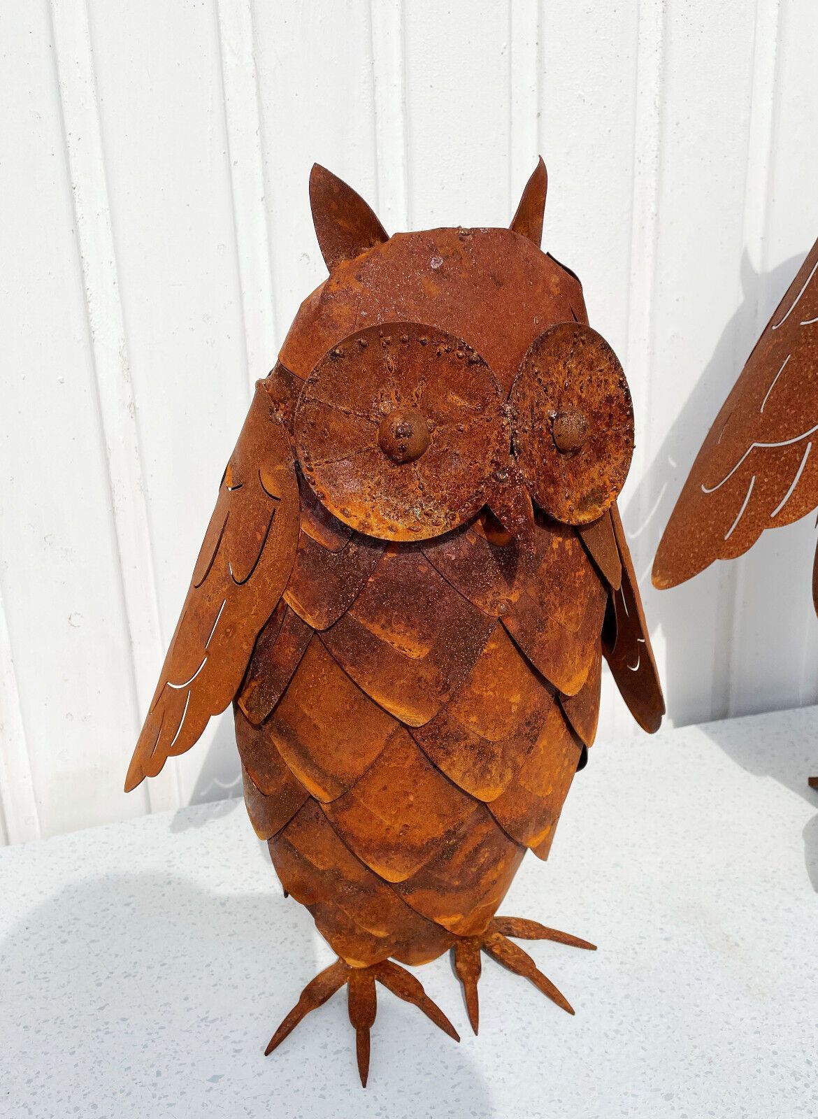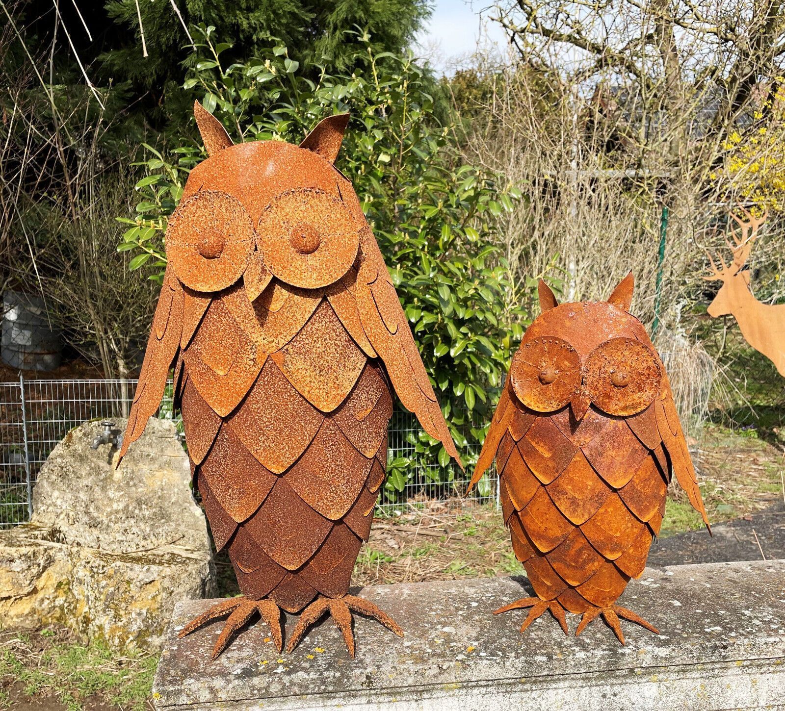 Sehr schöne Eule 3D 43cm / 60cm Edelrost Rost Uhu Kauz Rostfigur Terrasse