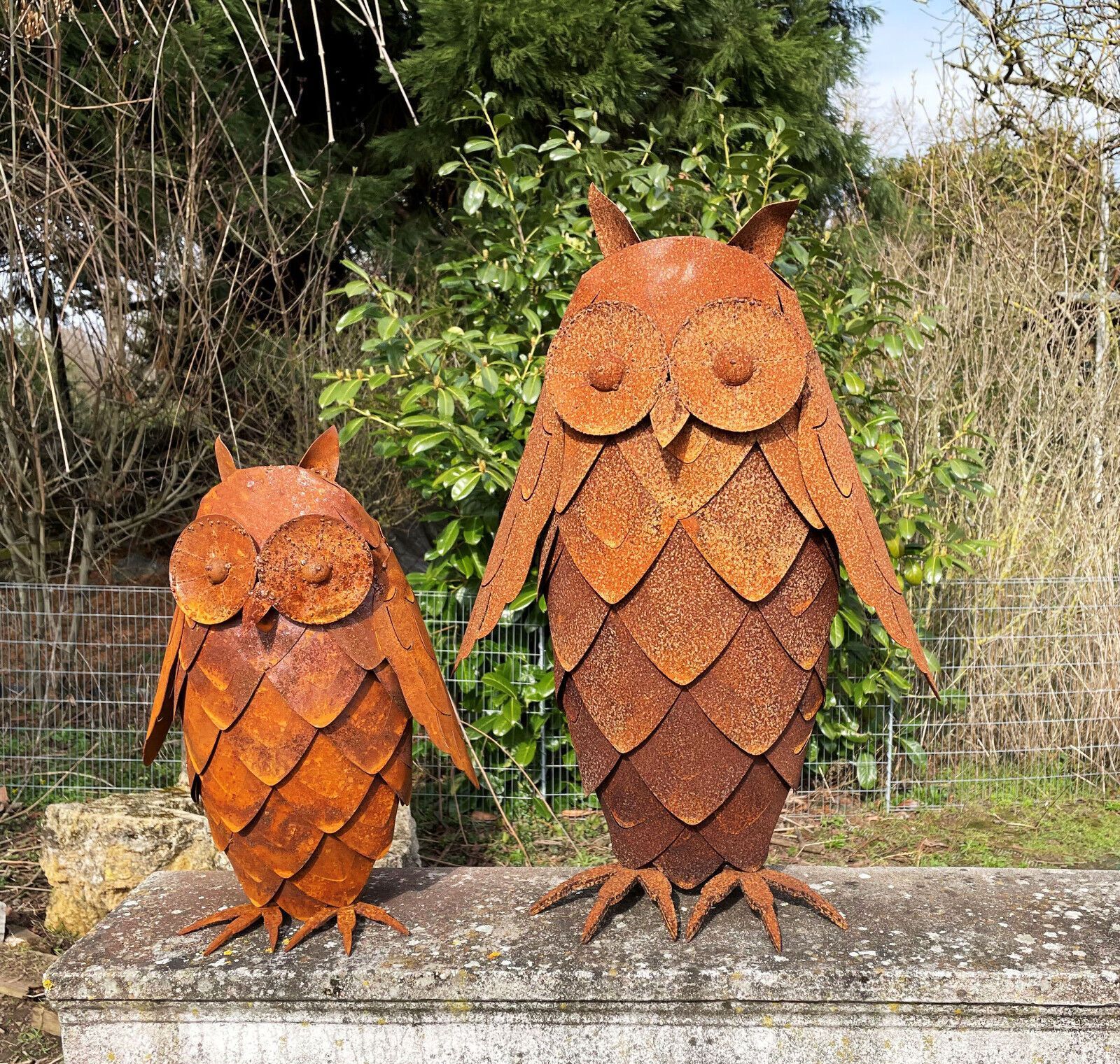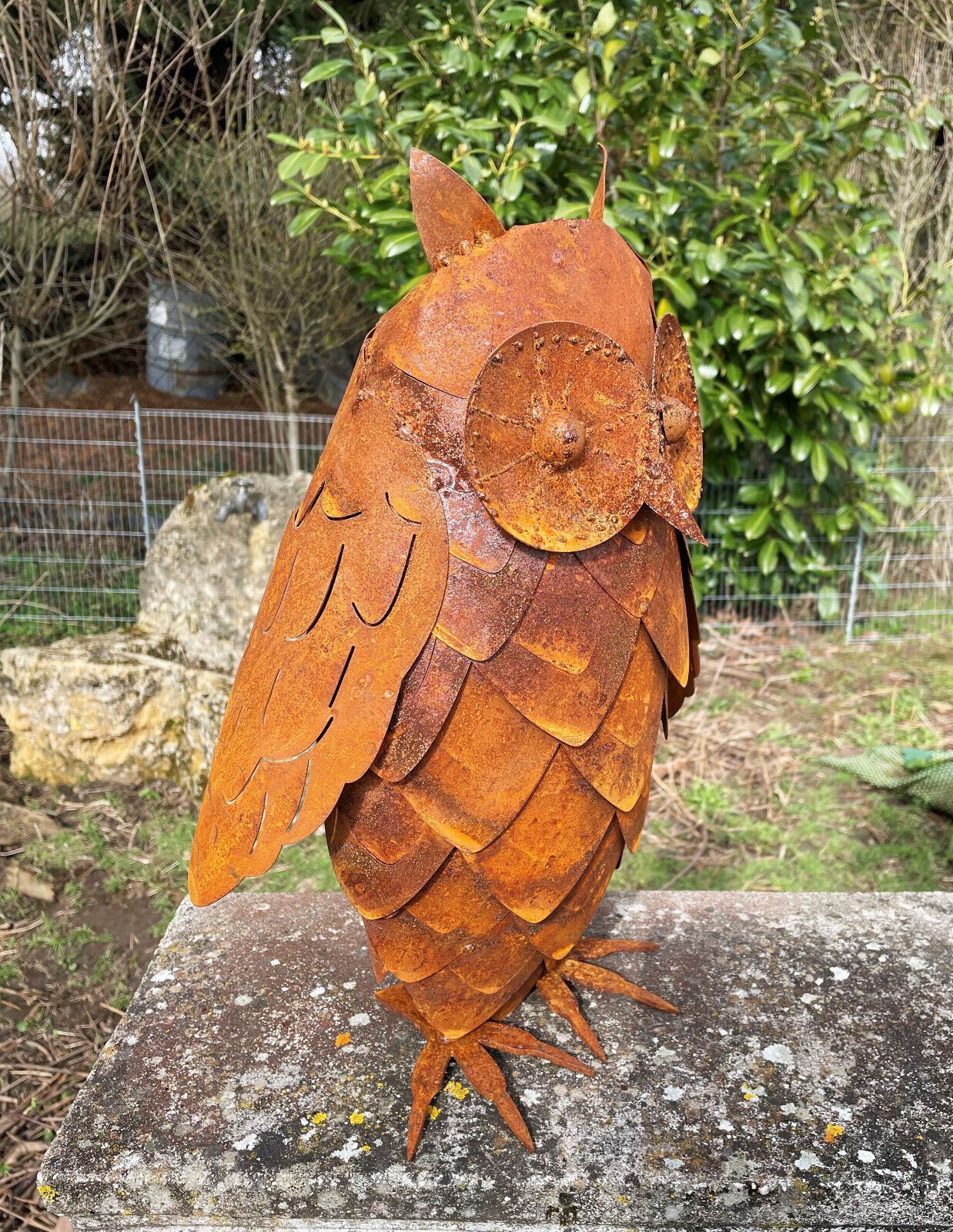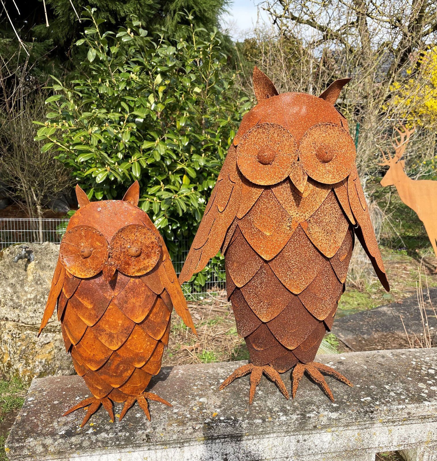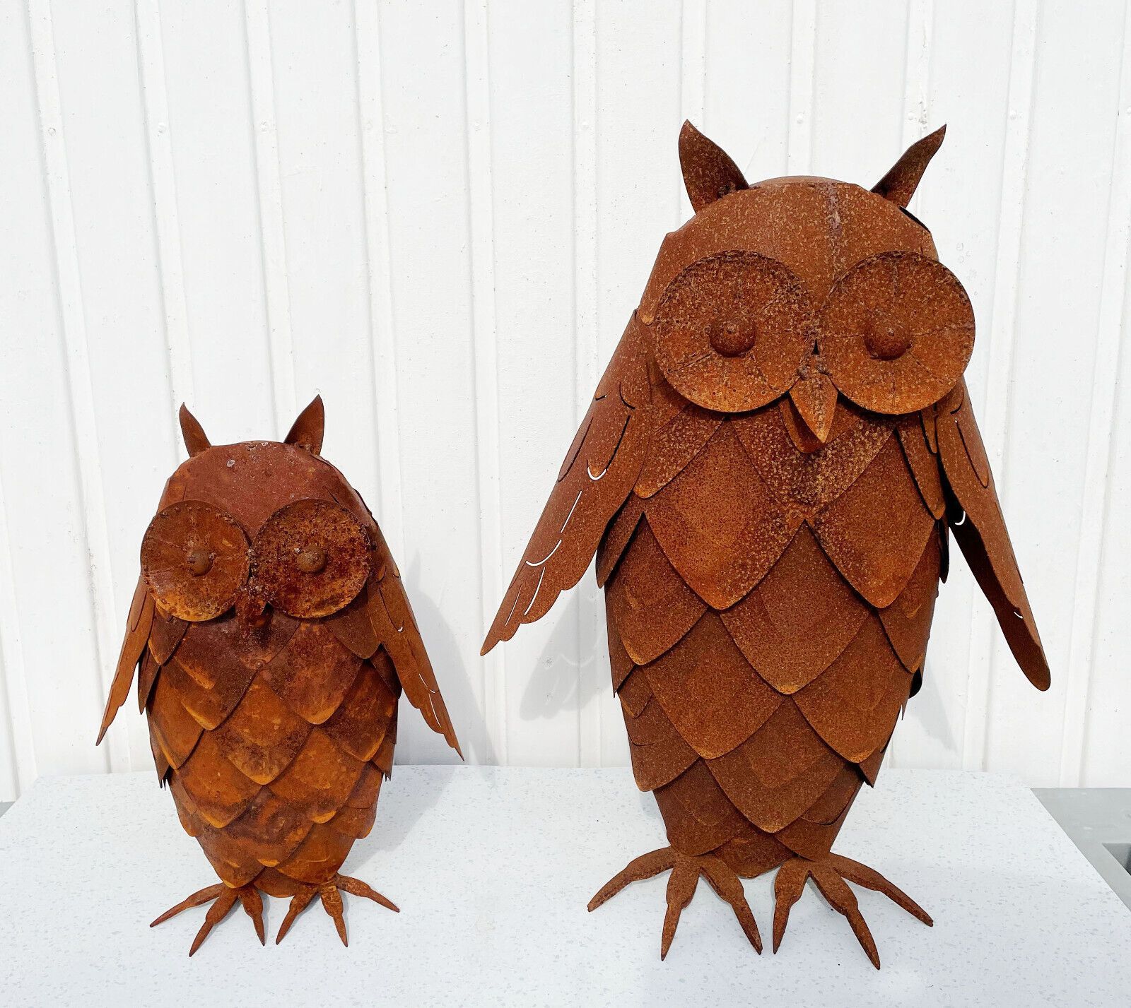 Sehr schöne Eule 3D 43cm / 60cm Edelrost Rost Uhu Kauz Rostfigur Terrasse