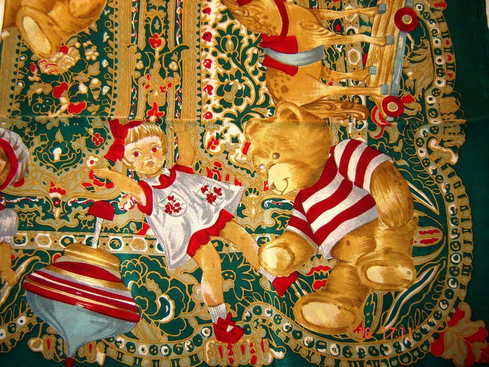 Seidentuch reine Seide bunt mit Bären und Puppen grün bunt wunderschön Z p