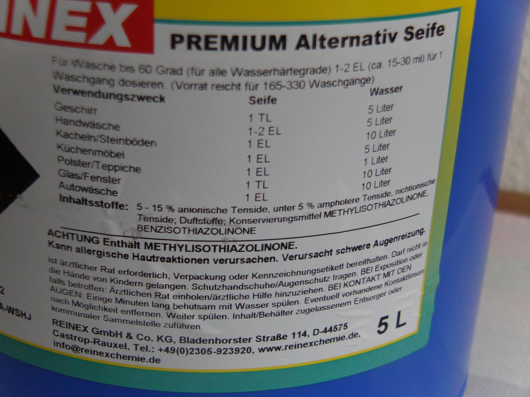 Reinex Seife Alternativ-Seife, Reinigungs Waschcreme Reinex Premium, pH-neutral, 5 l Eimer,