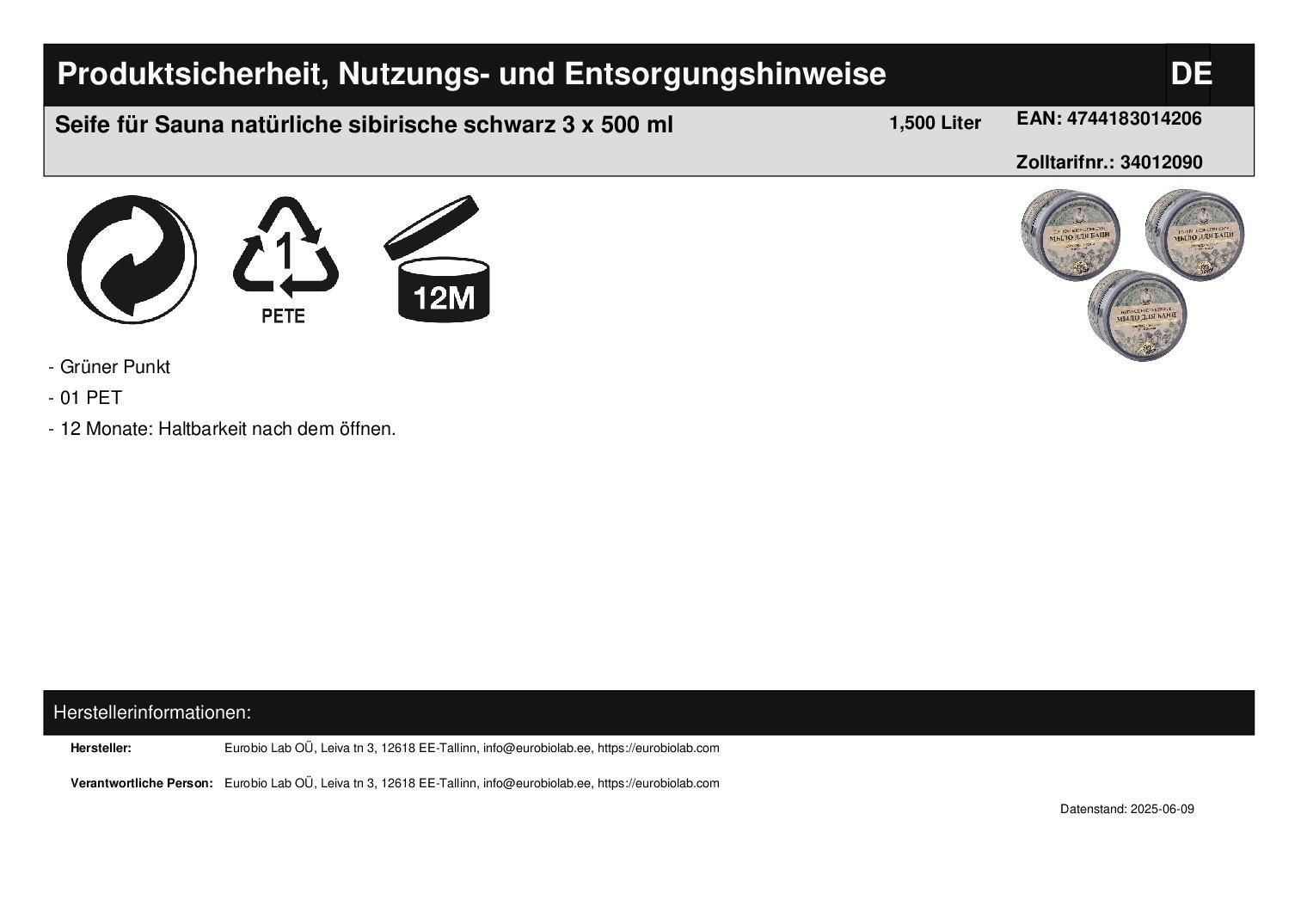 Seife für Sauna Bad 3 x 500 ml Agafia natürliche sibirische schwarz Körperpflege