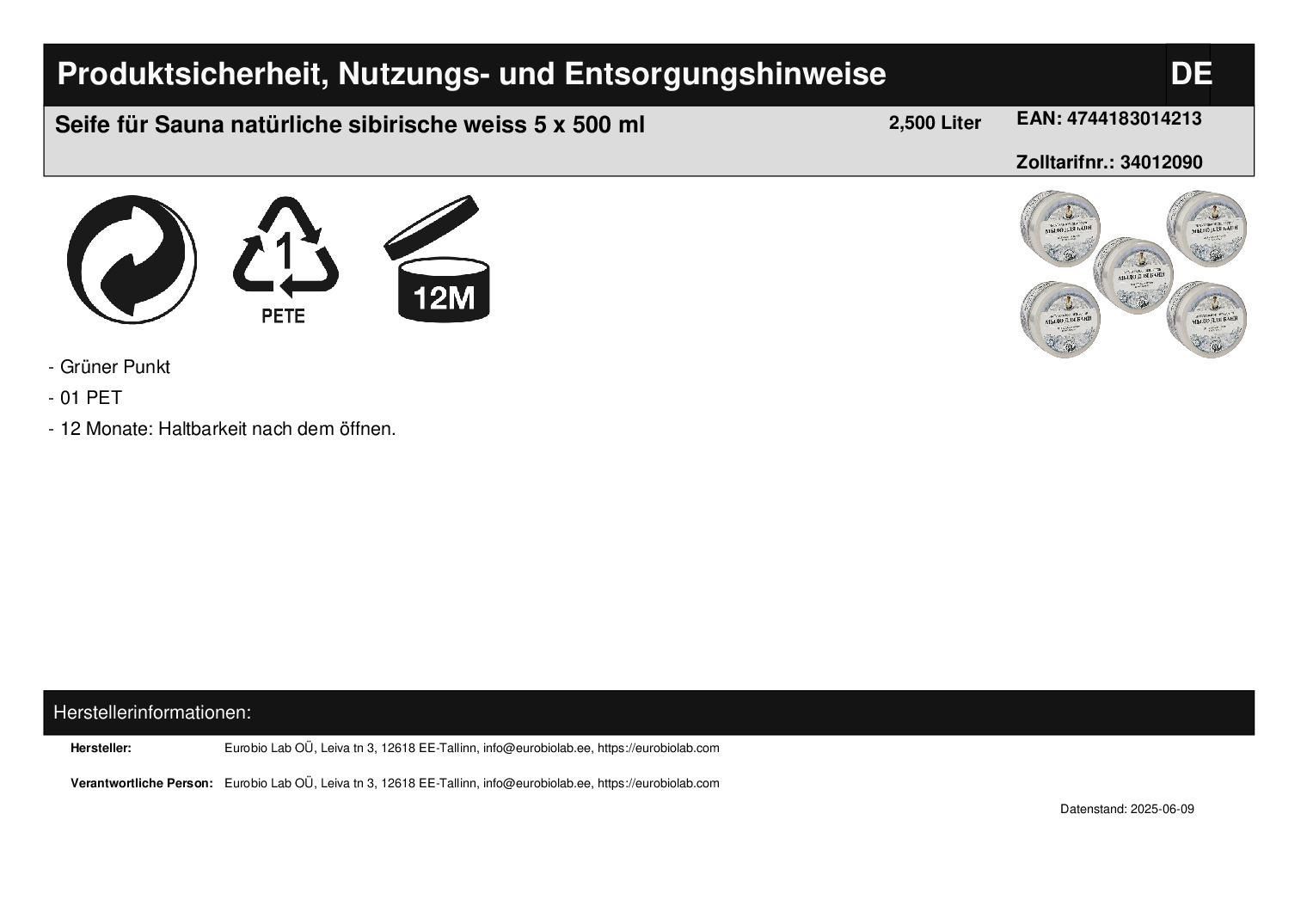 Seife für Sauna und Bad 5 x 500 ml Agafia natürliche sibirische weiss Körperpflege