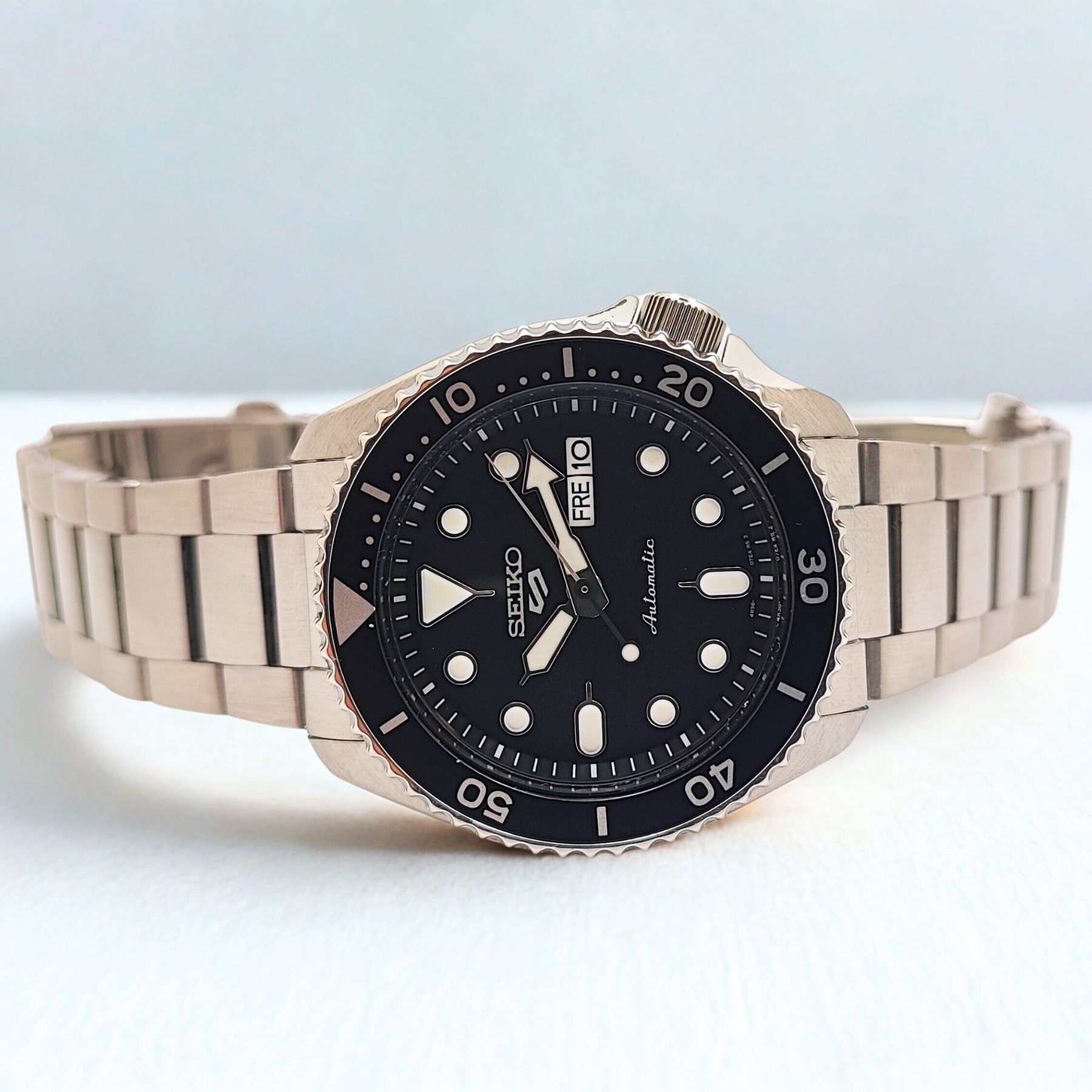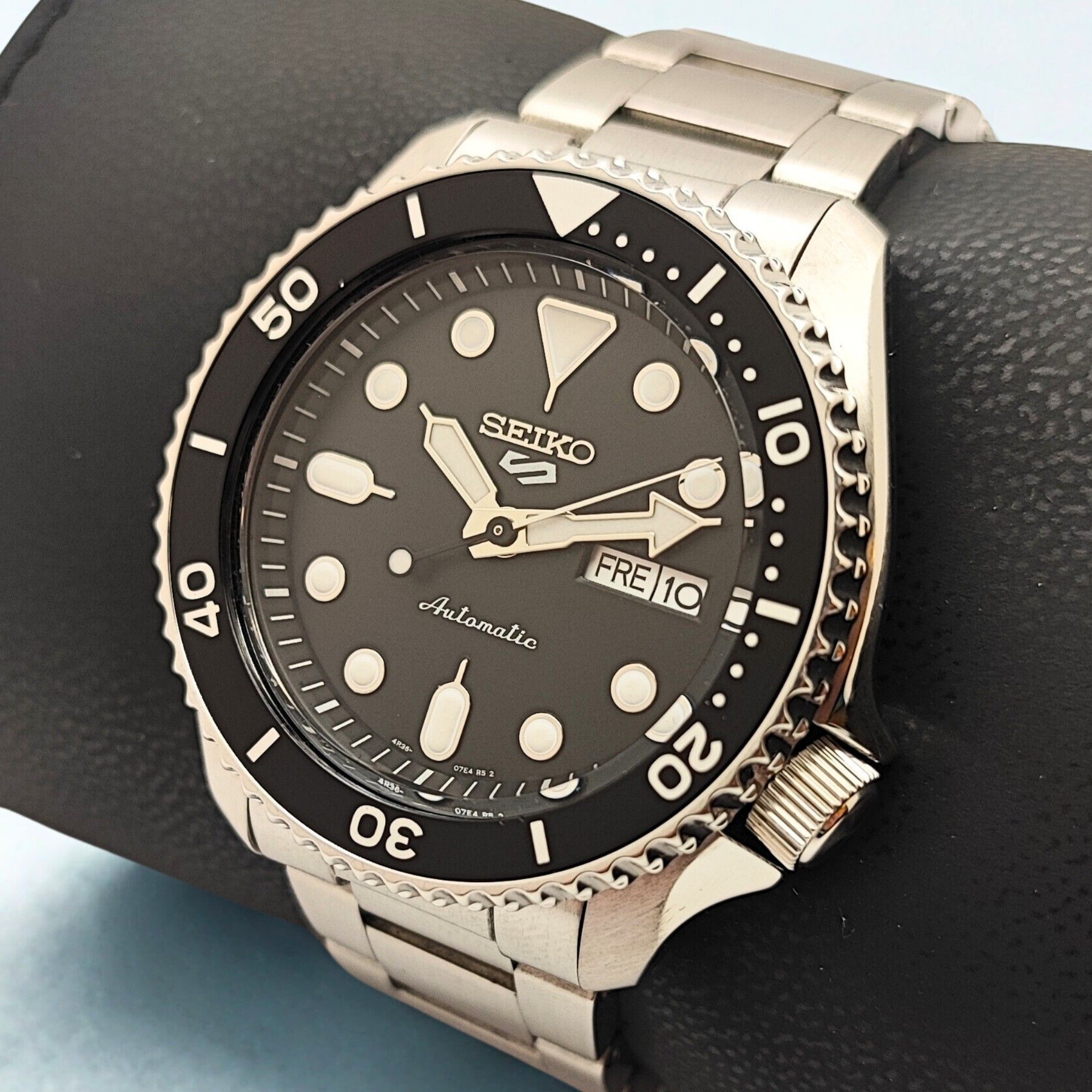 Gläserner Gehäuseboden - 100 Meter Wasserdicht - Die Seiko 5 Sports SRPD55K1 ist ein absolutes Highlight für Uhrenliebhaber. Mit ihrem sportlich-eleganten Design, dem robusten Edelstahlgehäuse und dem klassischen schwarzen Zifferblatt zählt sie zu den beliebtesten Modellen der Seiko 5 Reihe. Im Inne... Mehr